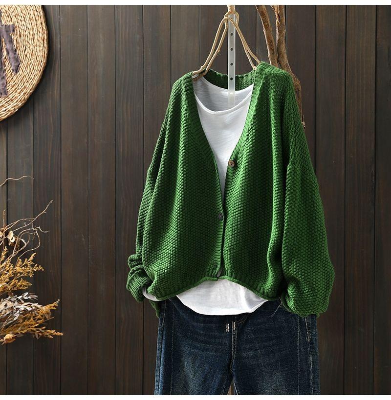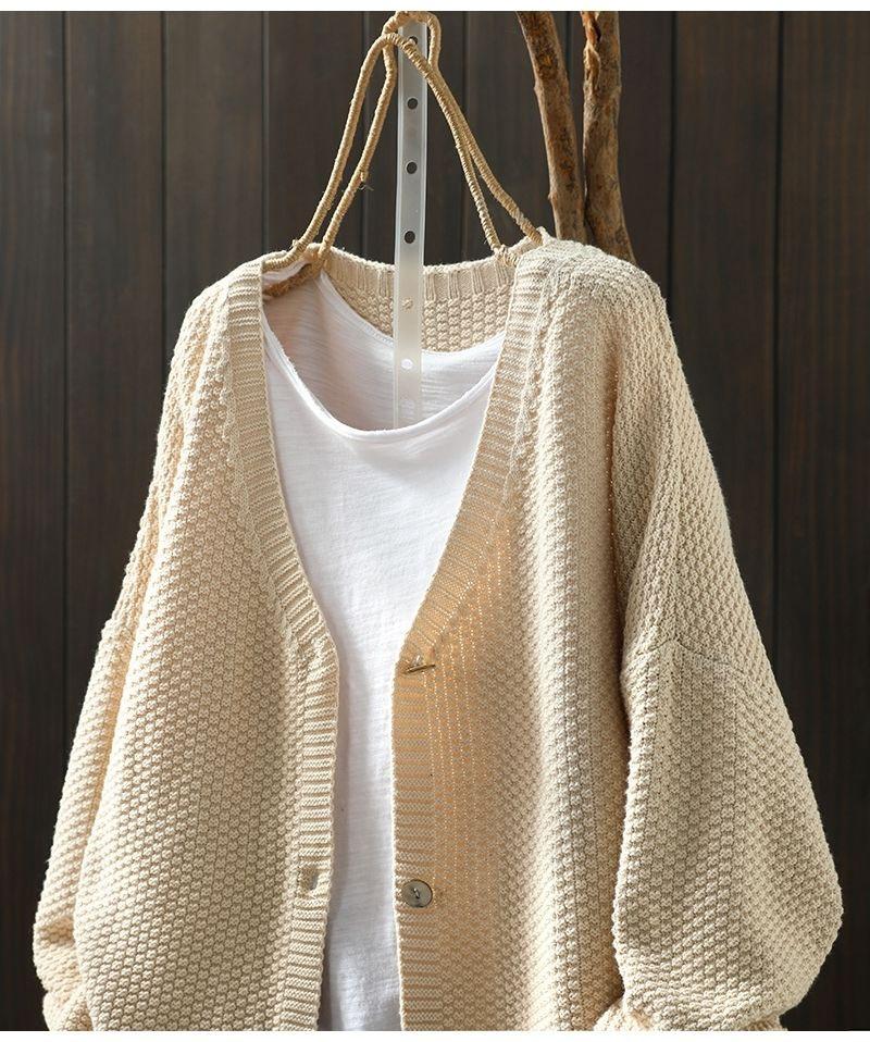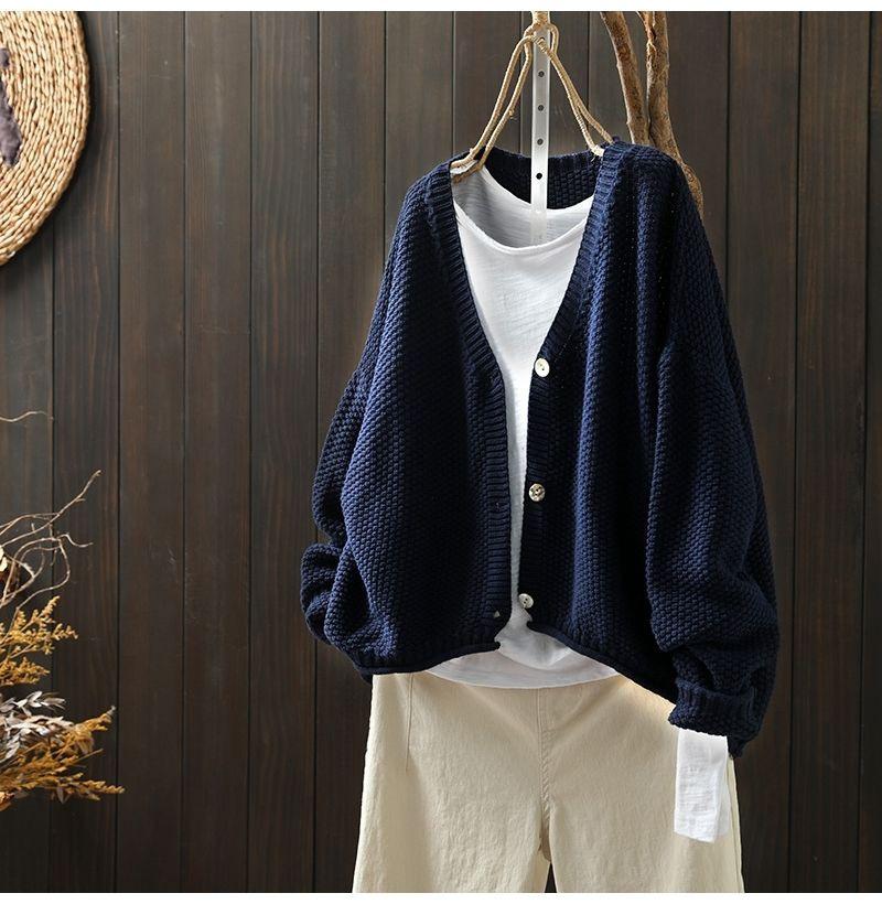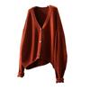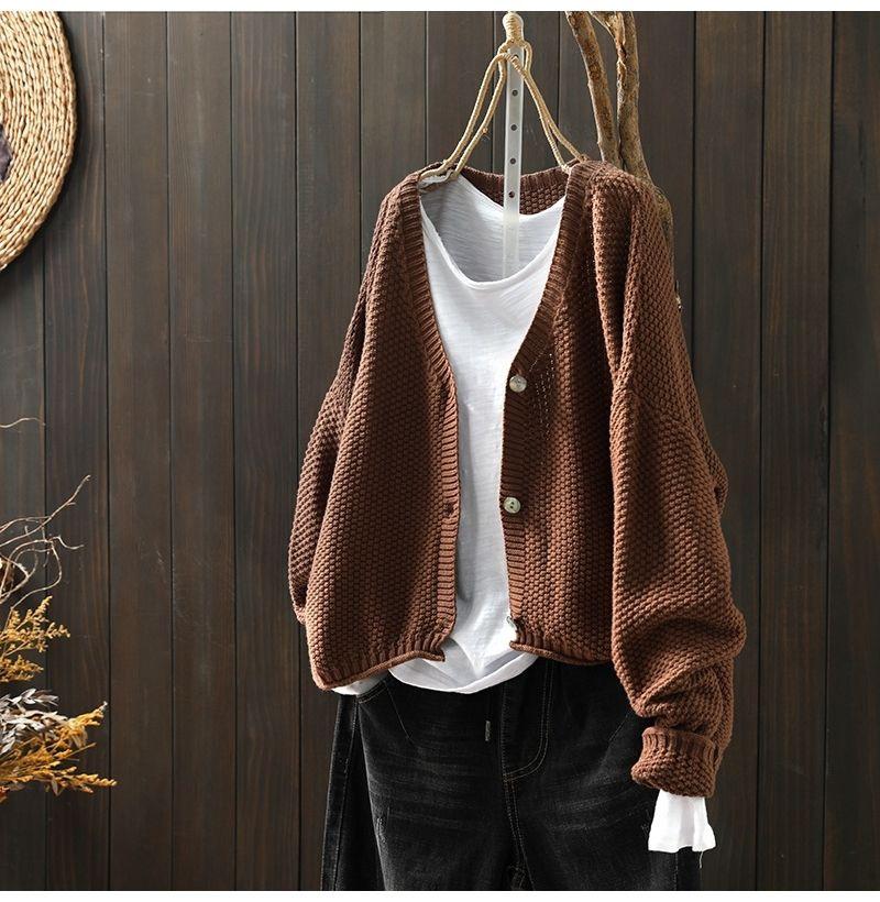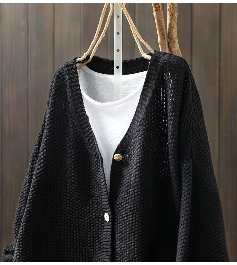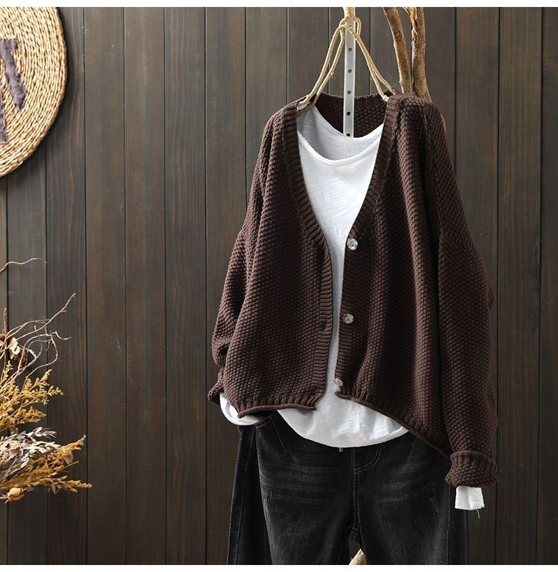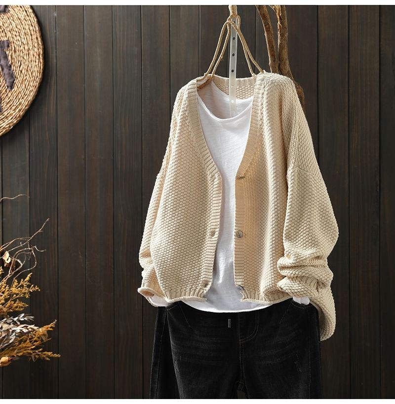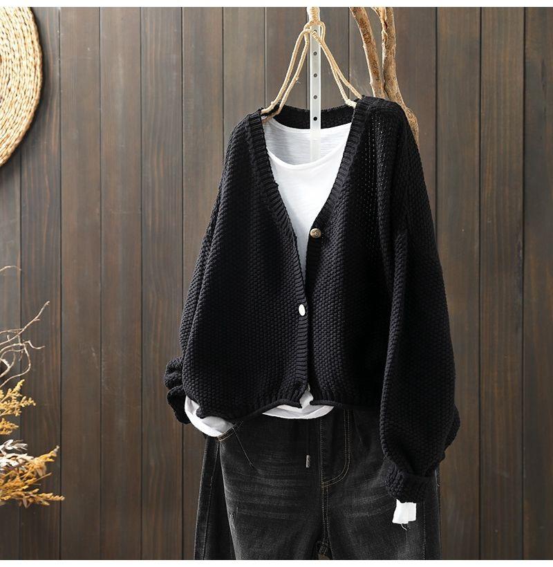 Cárdigan de punto con cuello en V literario para mujer, holgado, perezoso, primavera y otoño 2025, manga larga, corto por delante y largo por detrás, top largo