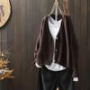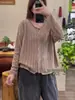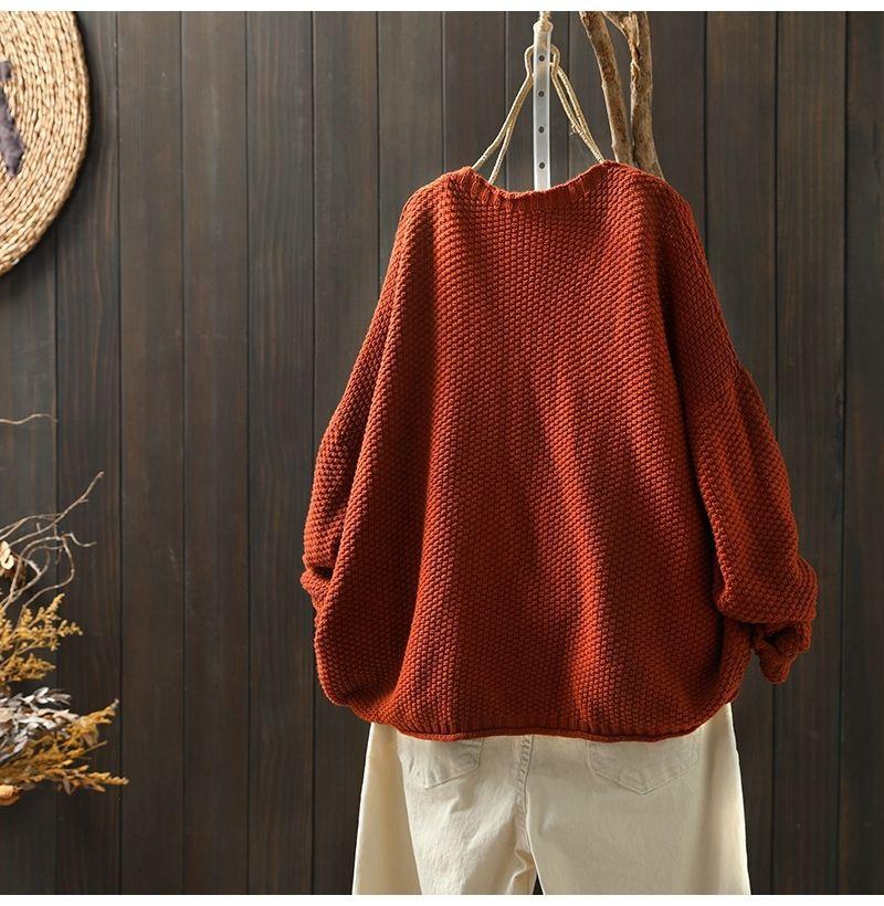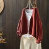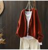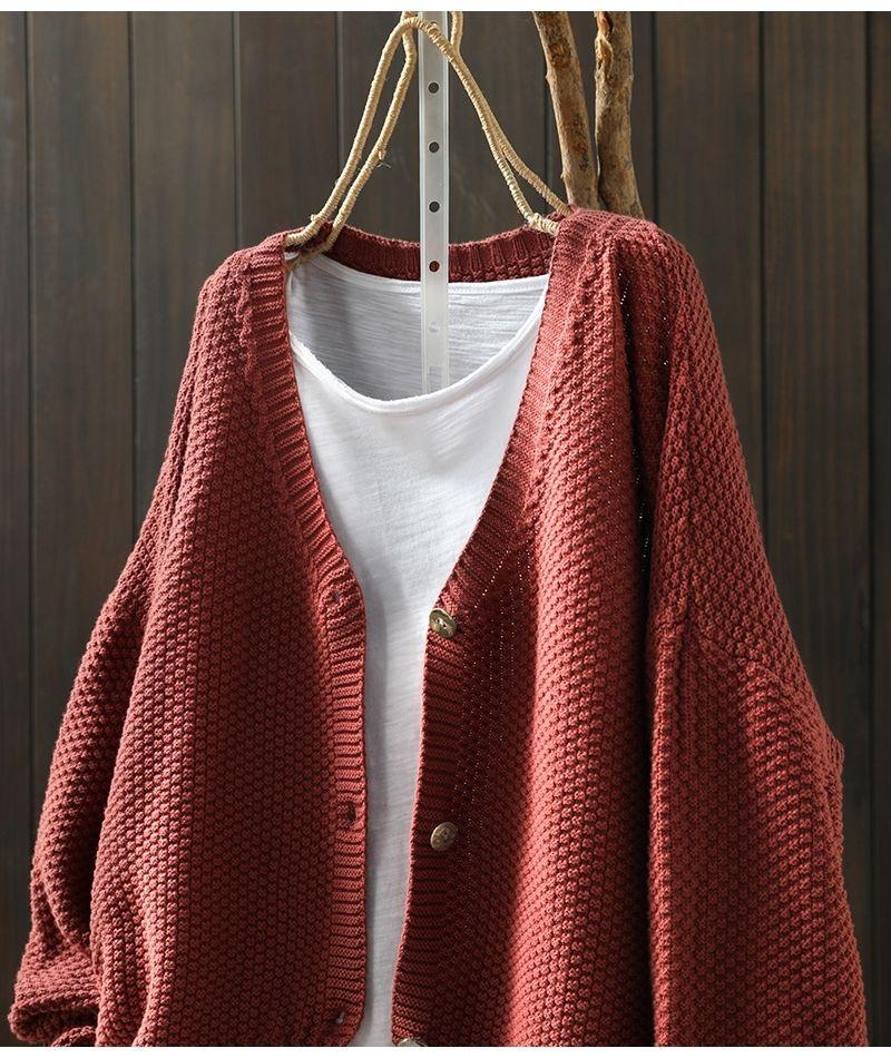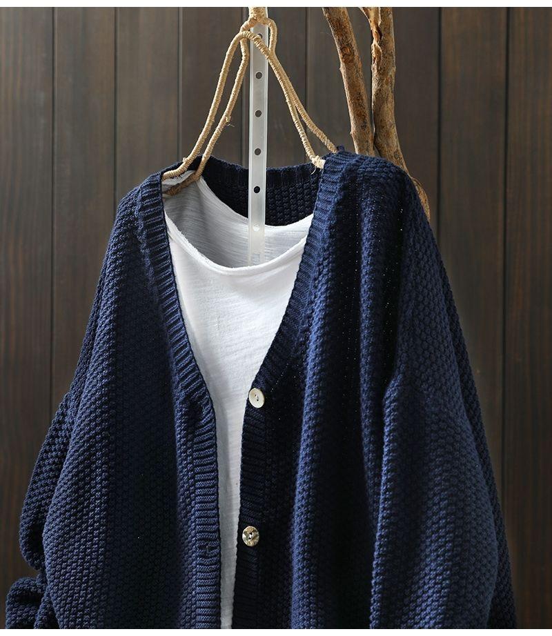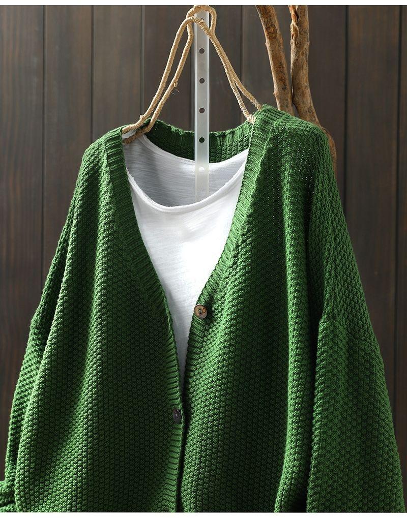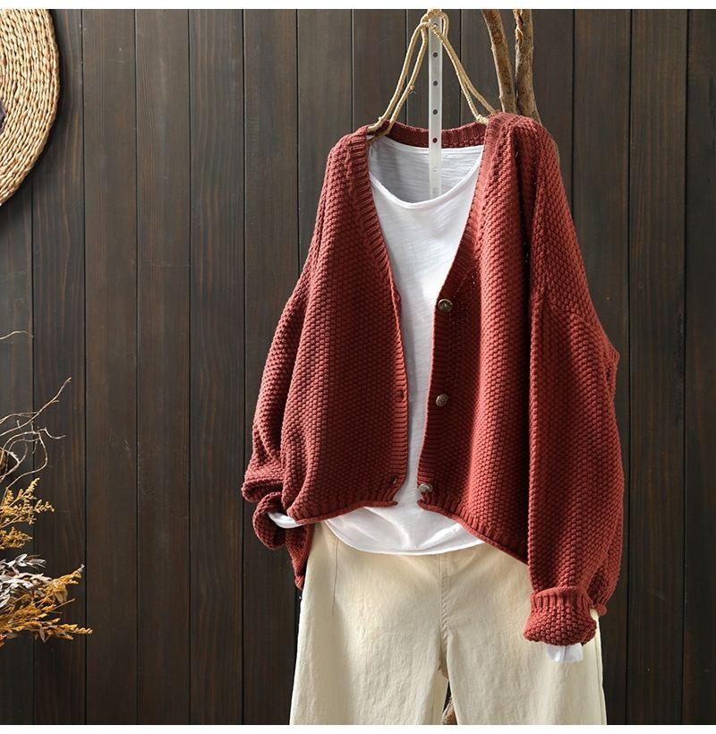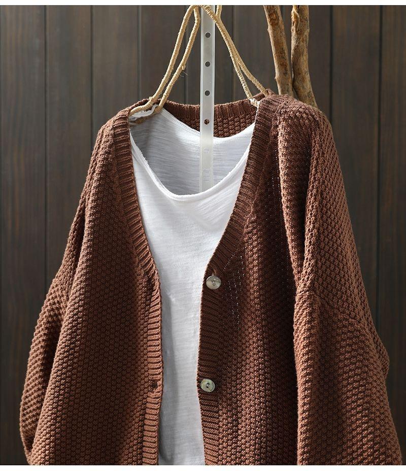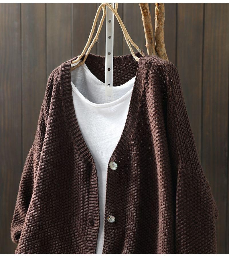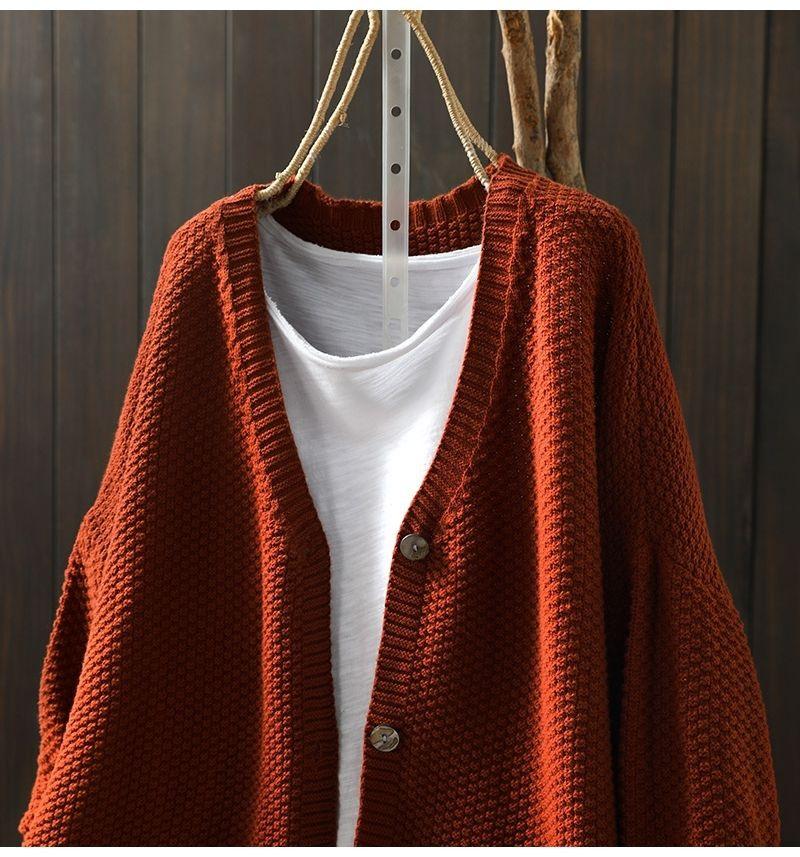 Cárdigan de punto con cuello en V literario para mujer, holgado, perezoso, primavera y otoño 2025, manga larga, corto por delante y largo por detrás, top largo