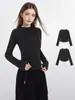 Camiseta de manga larga con hombros descubiertos para mujer, diseño de primavera y otoño, camisa interior ajustada con base corta, top de color liso, nueva moda