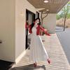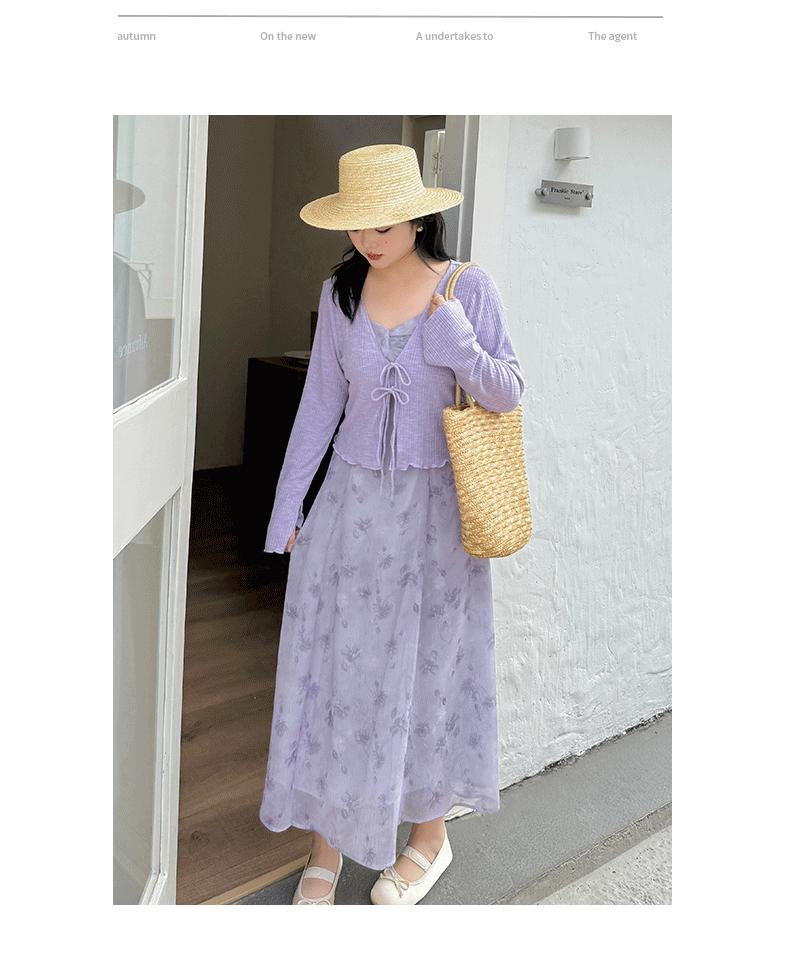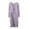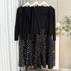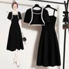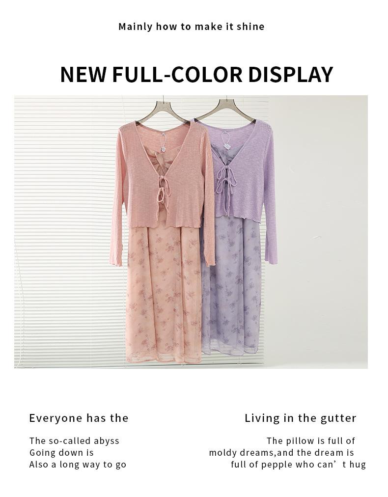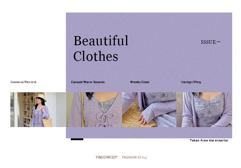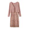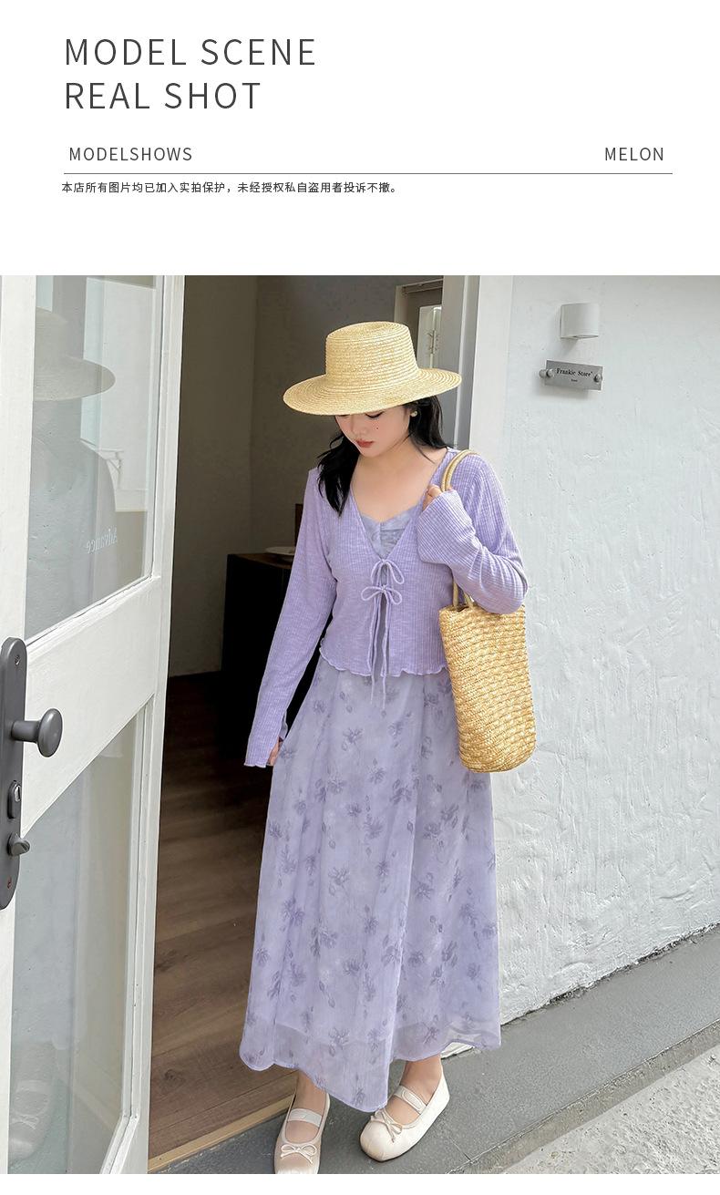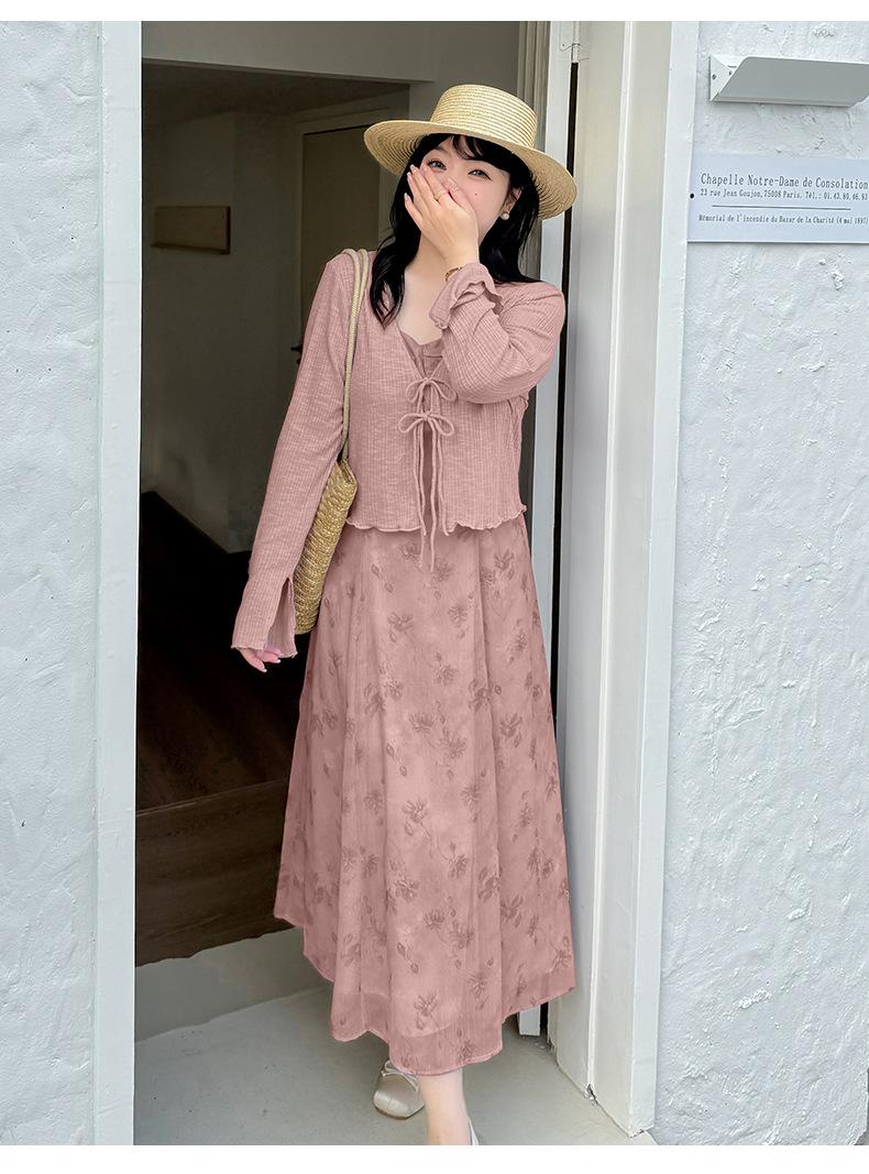 Cárdigan de Manga Acampanada Suave de Talla Grande + Traje de Falda con Tirantes para Mujer 2025 Primavera Nuevo Look Adelgazante Conjunto de Dos Piezas 122035
