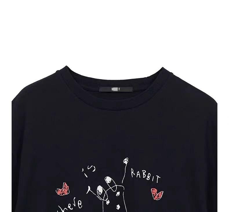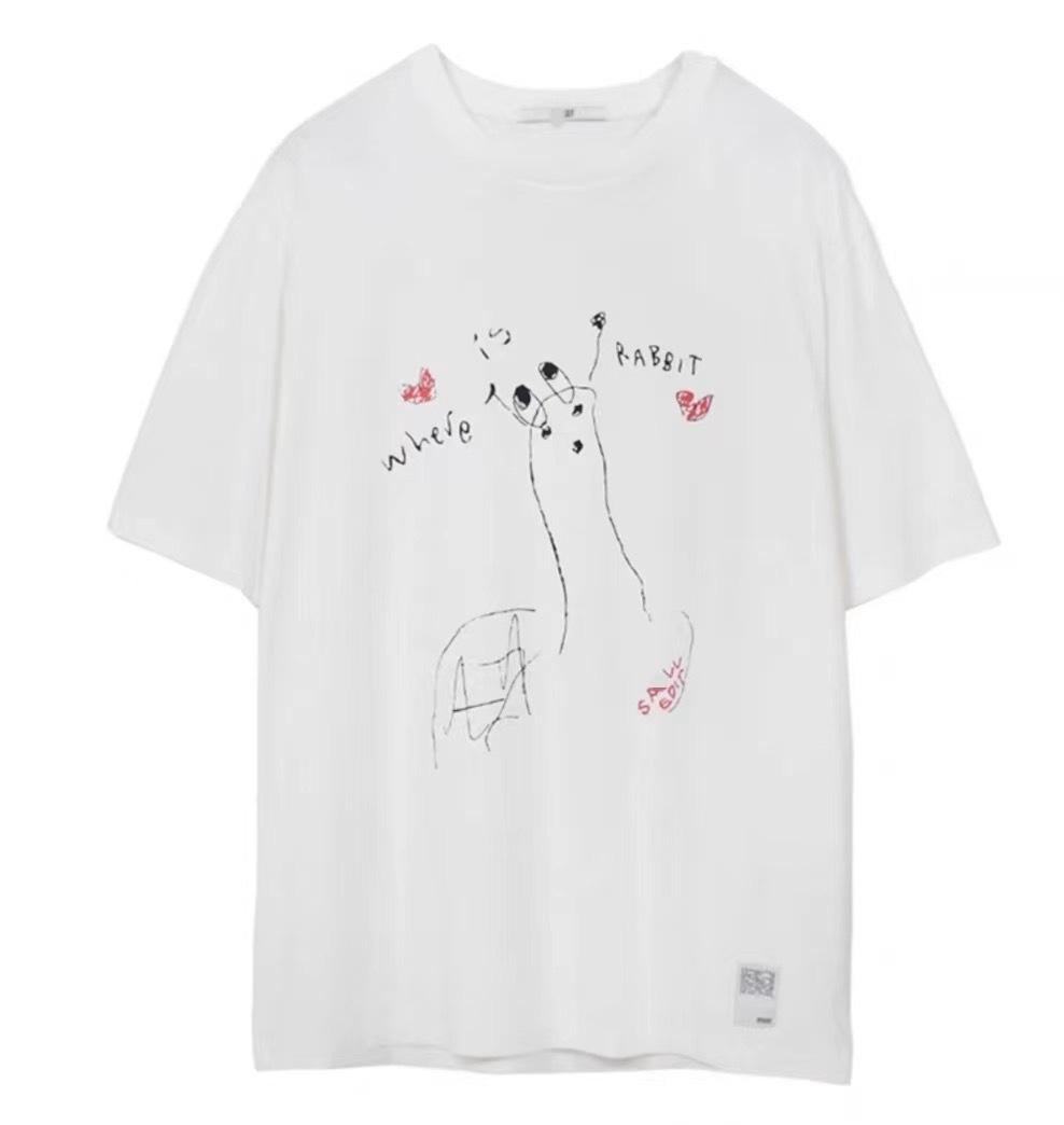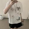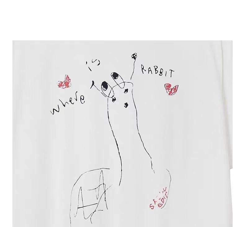 2025 Primavera Nuevo Caracol Camiseta Versión Coreana Mujer Commuter Top Holgado Simple Blanco Talla Única Negro Estilo Pintado Colorido