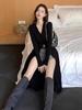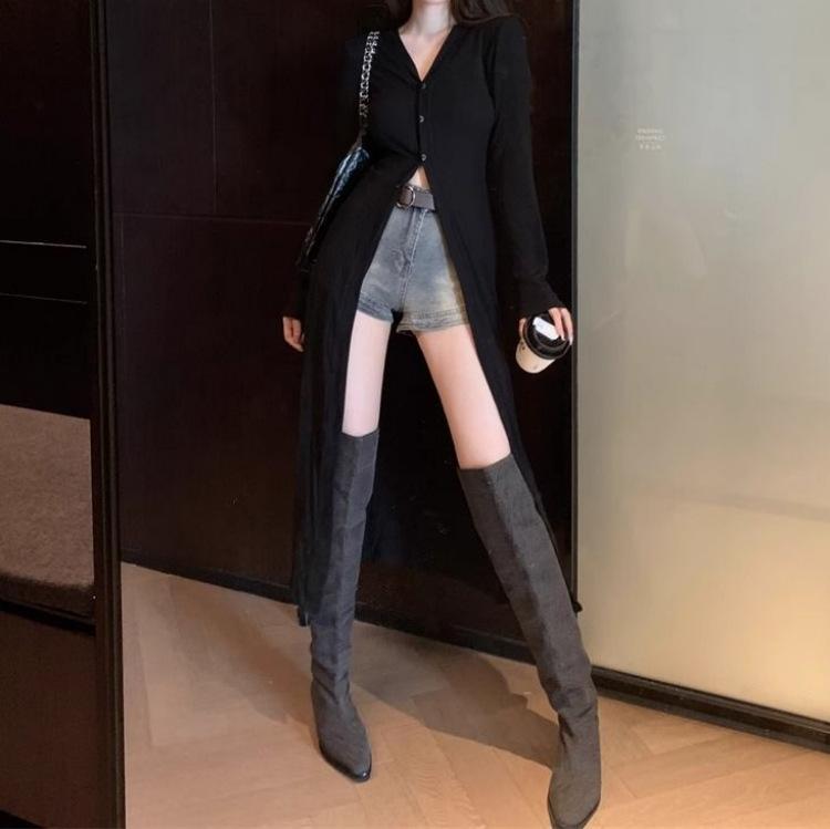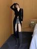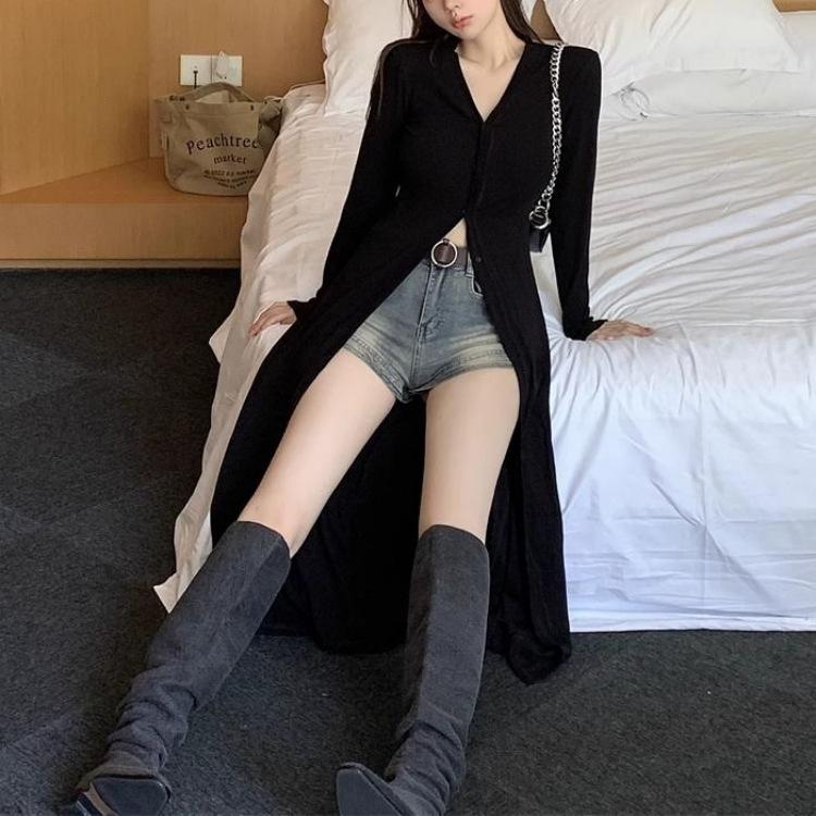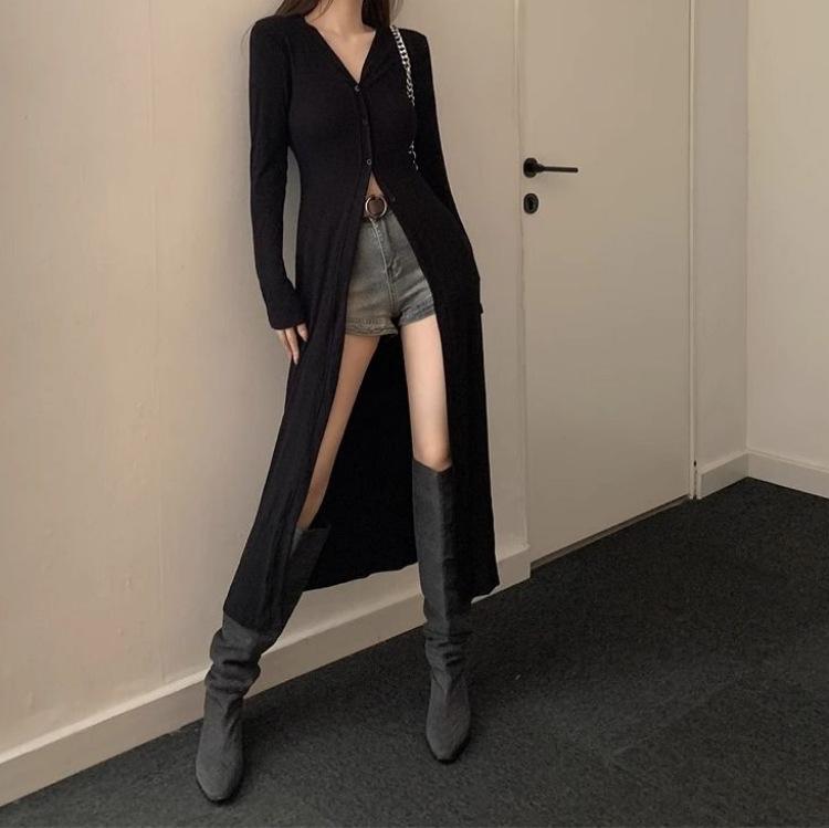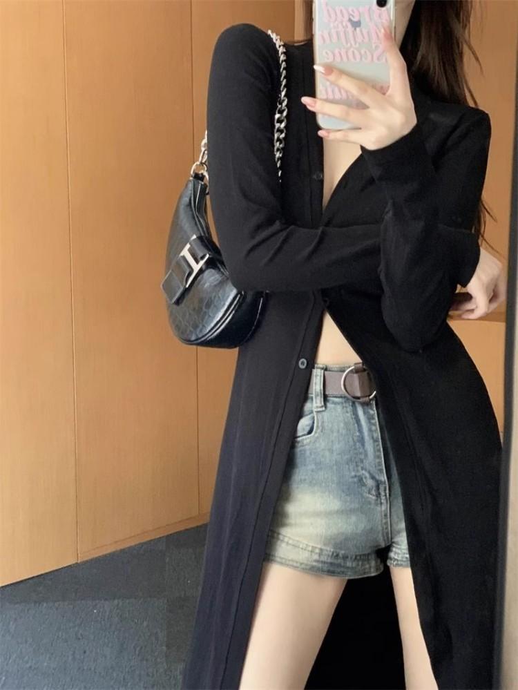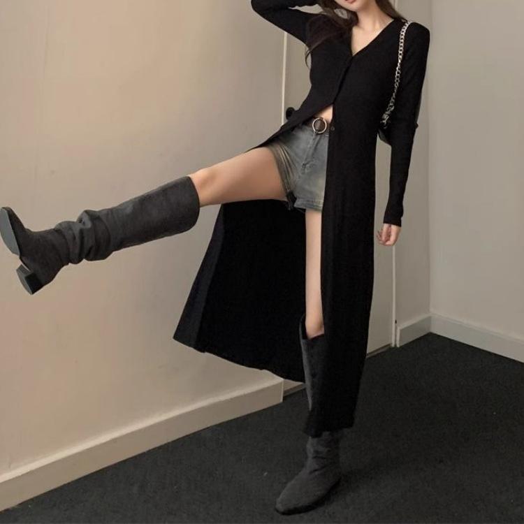 Abrigo tipo cárdigan de manga larga con cuello en V negro elegante y fino con diseño combinable para principios de primavera para mujer