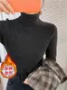Camisa de terciopelo con forro polar, gruesa, cálida, de cuello medio alto, base de terciopelo, para mujer, otoño e invierno, nueva, ajustada, combinable, de manga larga.