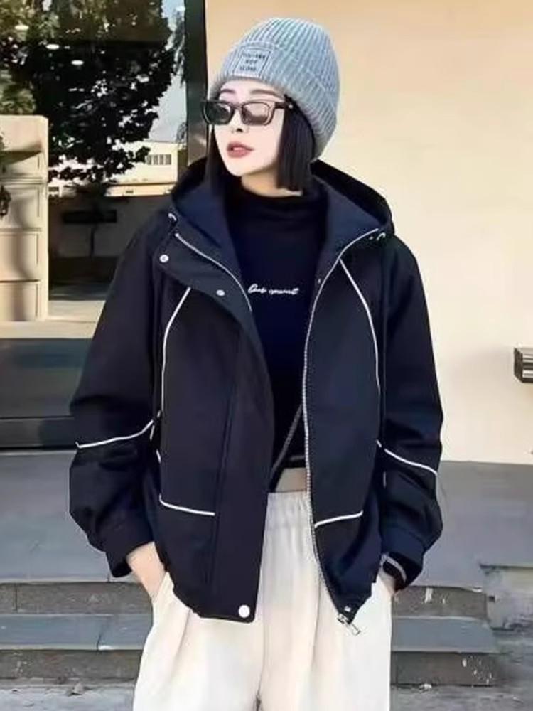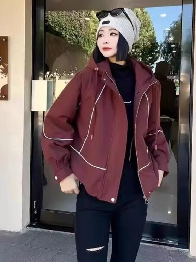 Chaqueta con capucha estilo coreano para mujer 2025 primavera y otoño diseño delgado holgada chaqueta pequeña