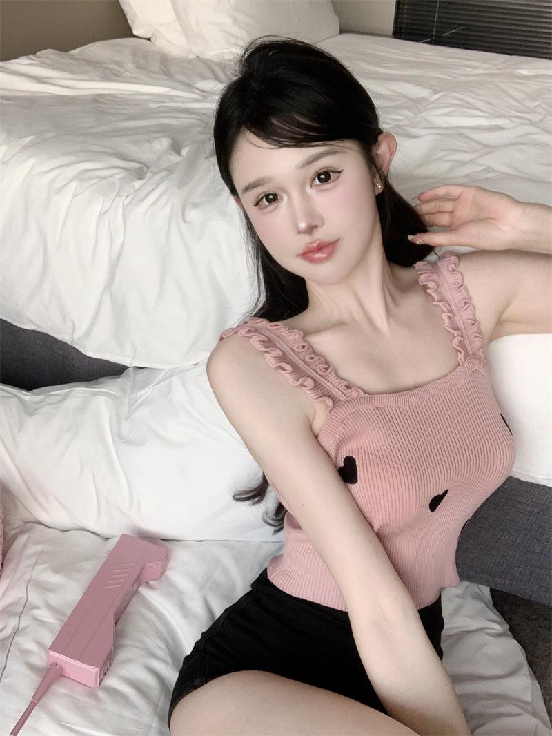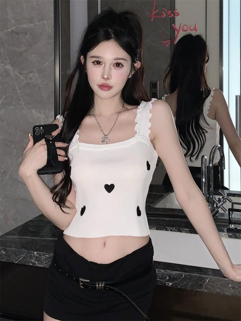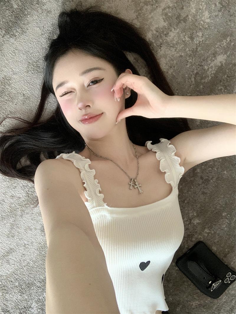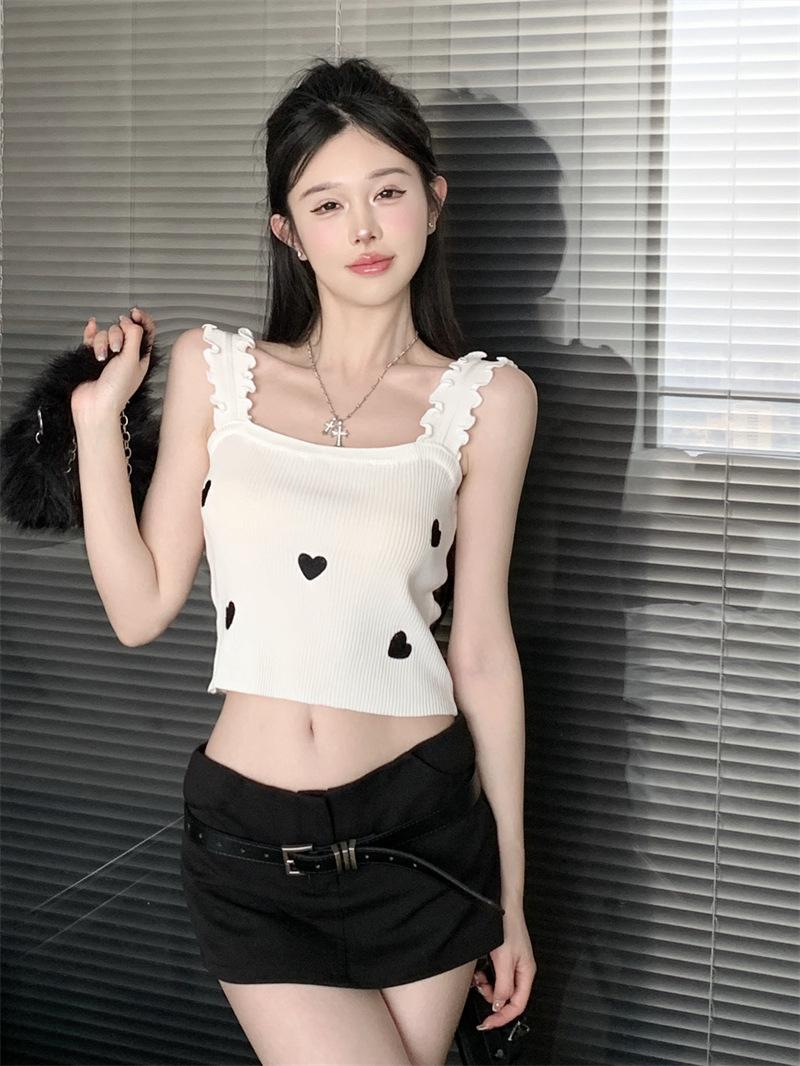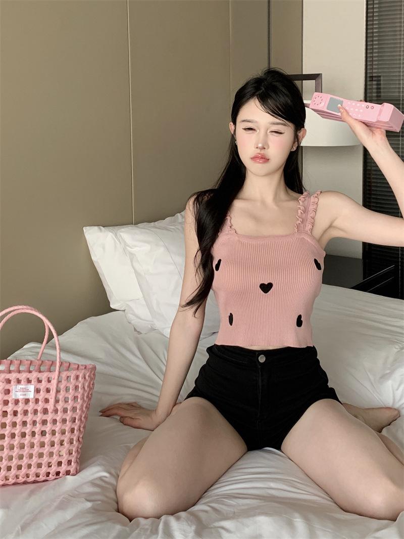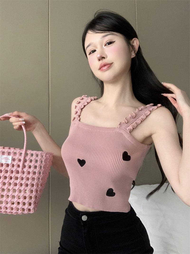 Camisola de punto con ribete en las orejas Sweet Spice Girl Pure Wish, prenda interior de verano para mujer, sin mangas, diseño nicho.