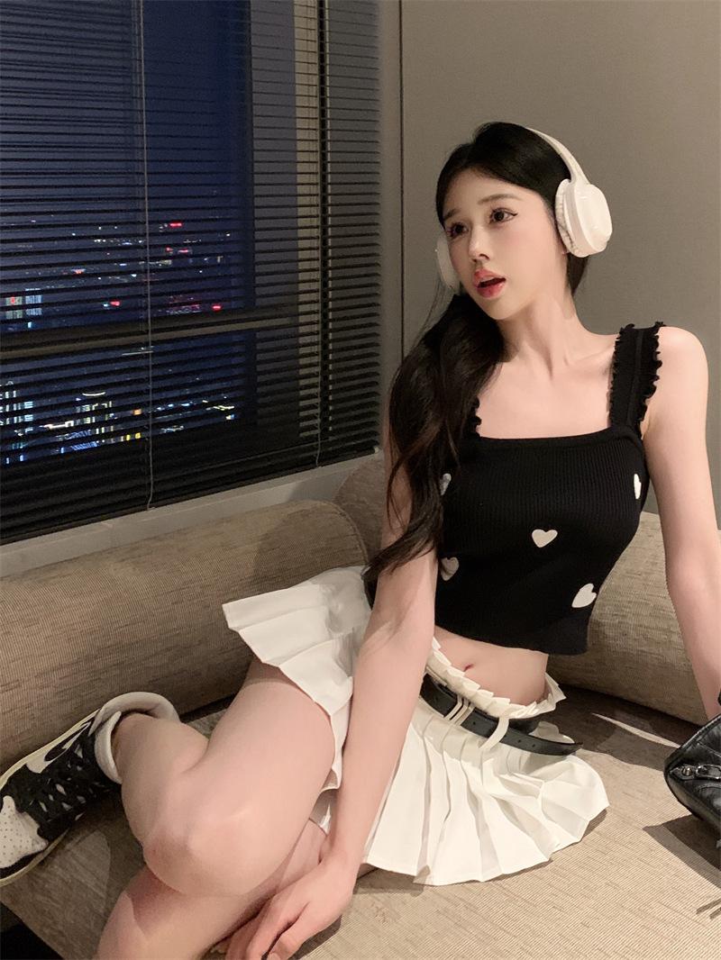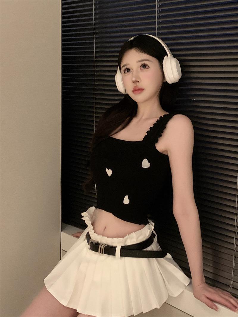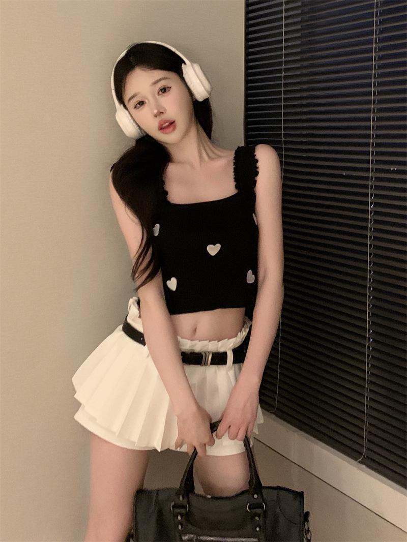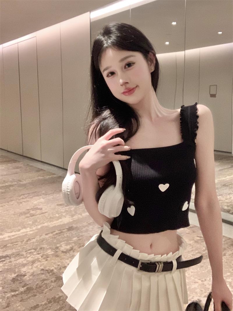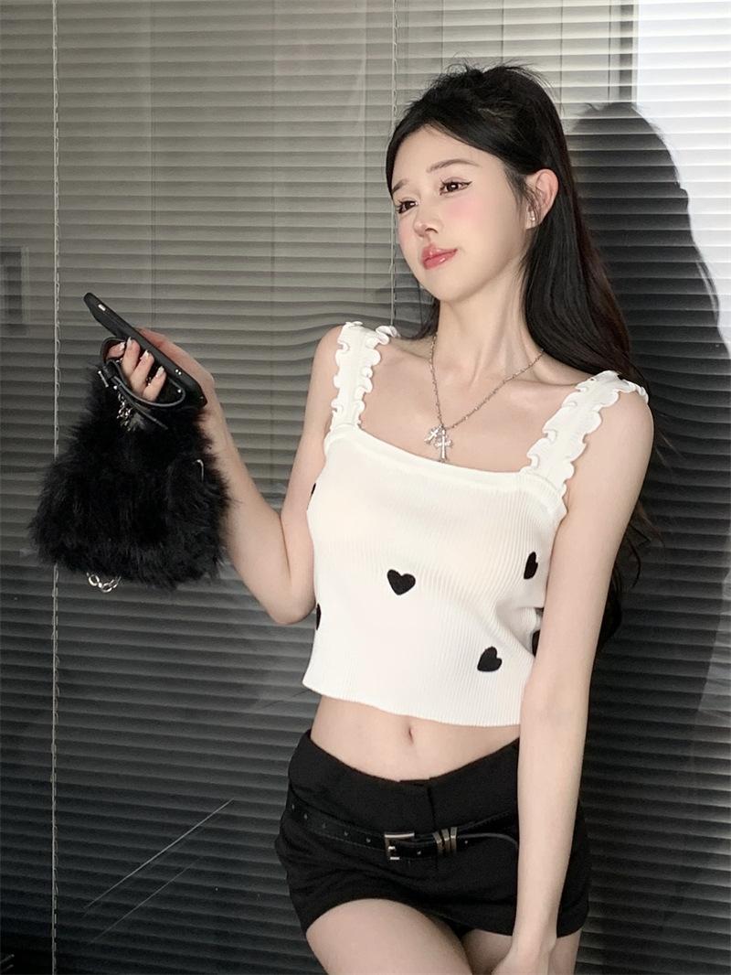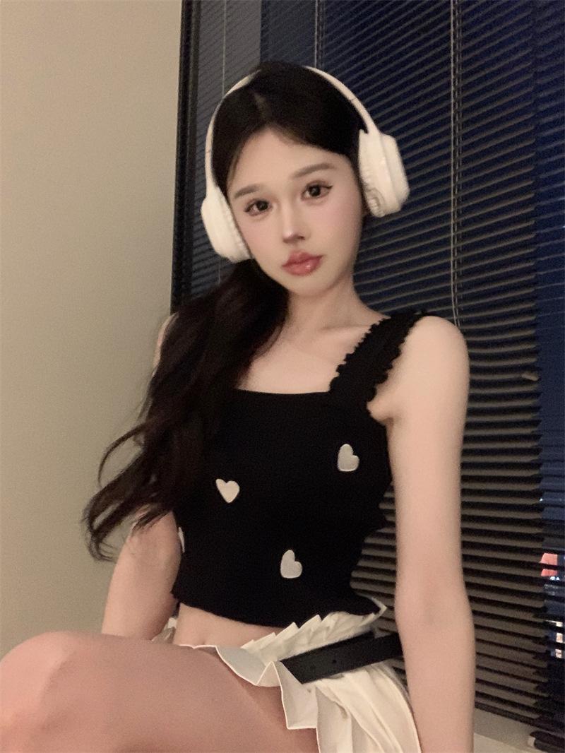 Camisola de punto con ribete en las orejas Sweet Spice Girl Pure Wish, prenda interior de verano para mujer, sin mangas, diseño nicho.