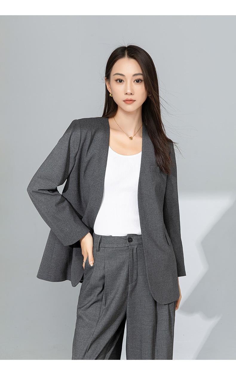 Xinge Chaqueta de Traje Casual para Mujer 2025 Primavera Nuevo Simple Cuello en V Lana TR Alto y Sensible y Temperamento Traje