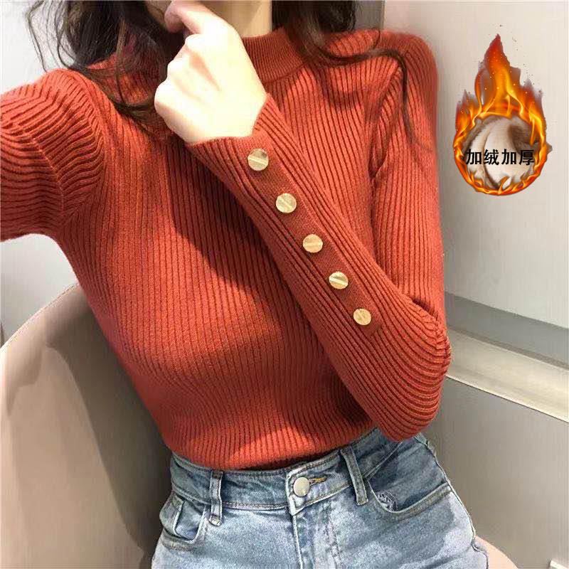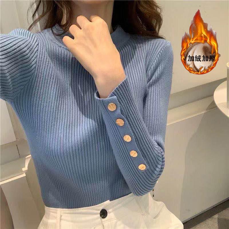 Suéter de cuello alto estilo coreano de otoño, nuevo, ajustado, adelgazante, con forro polar, parte superior ajustada y elástica.