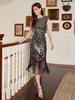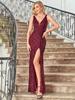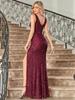 Vestido de noche nuevo transfronterizo europeo y americano para mujer, elegante, ajustado, diario, con escote en V y lentejuelas, vestido dividido de Amazon.