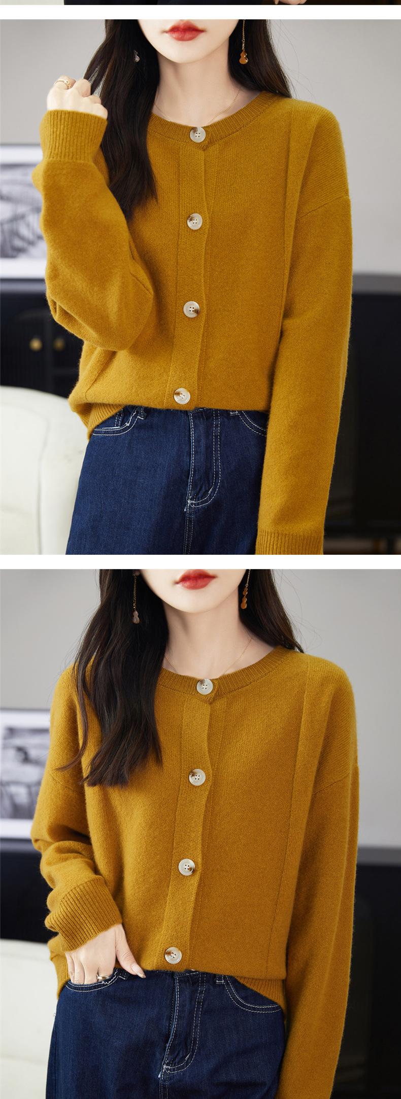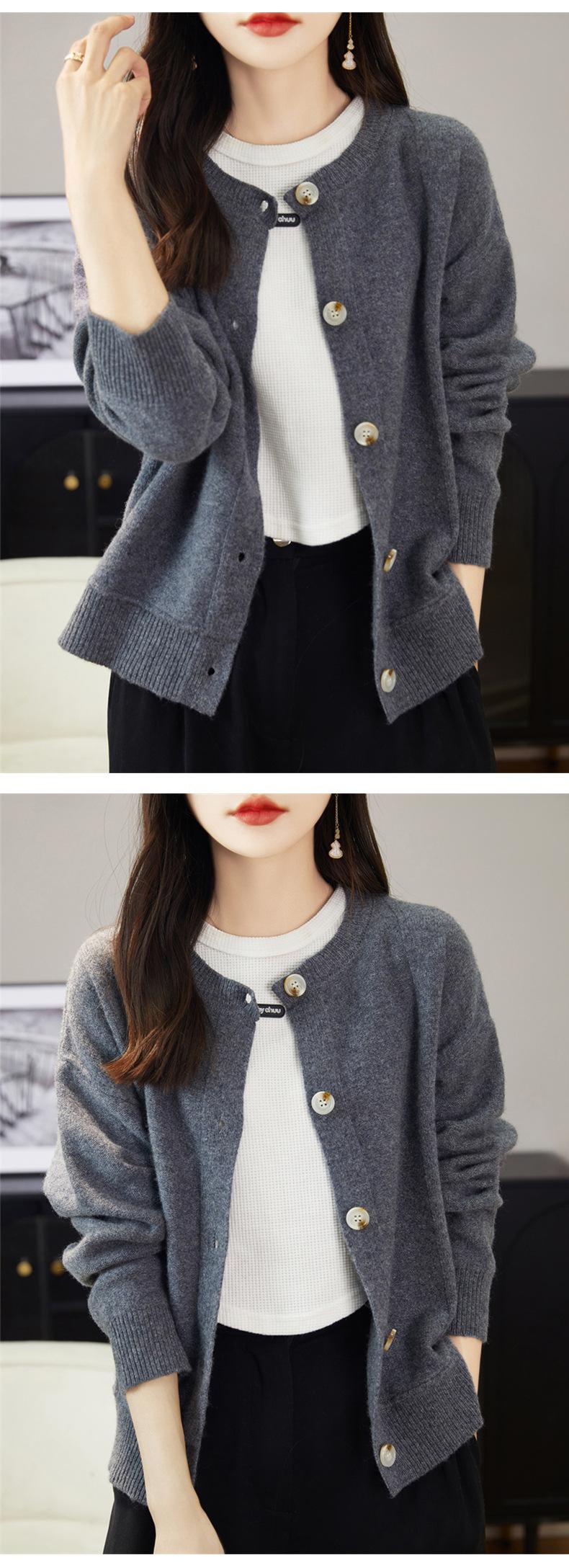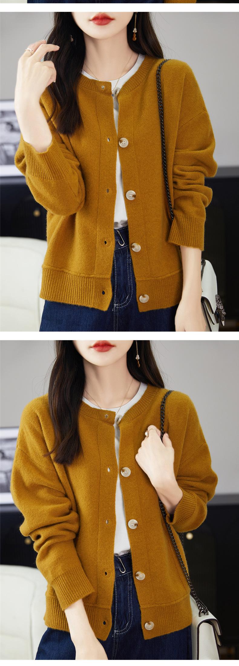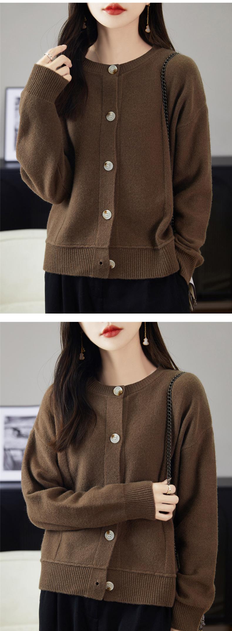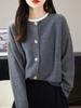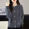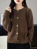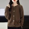 Cárdigan de Punto de Lana Pura de Cuello Redondo Nuevo para Mujer Color Sólido Suelto Elegante Casual Simple Suave Ceroso Chaqueta de Un Solo Botón