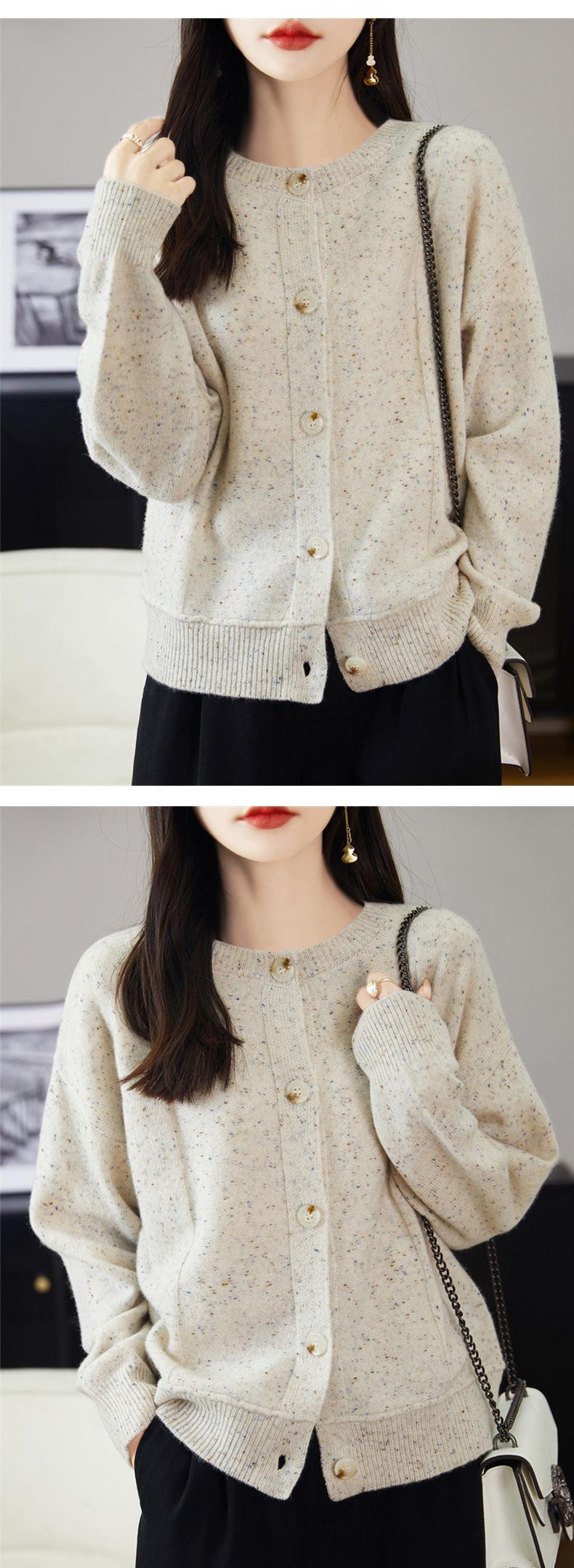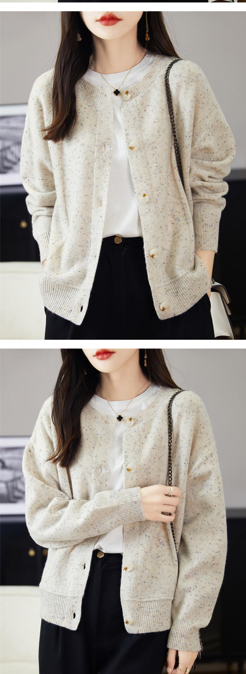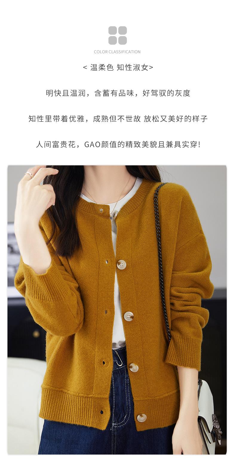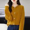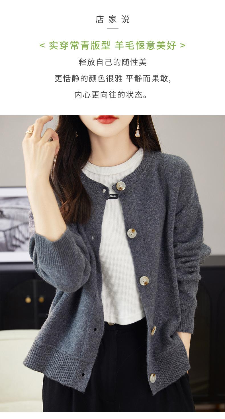 Cárdigan de Punto de Lana Pura de Cuello Redondo Nuevo para Mujer Color Sólido Suelto Elegante Casual Simple Suave Ceroso Chaqueta de Un Solo Botón