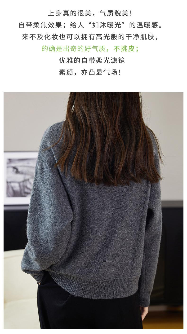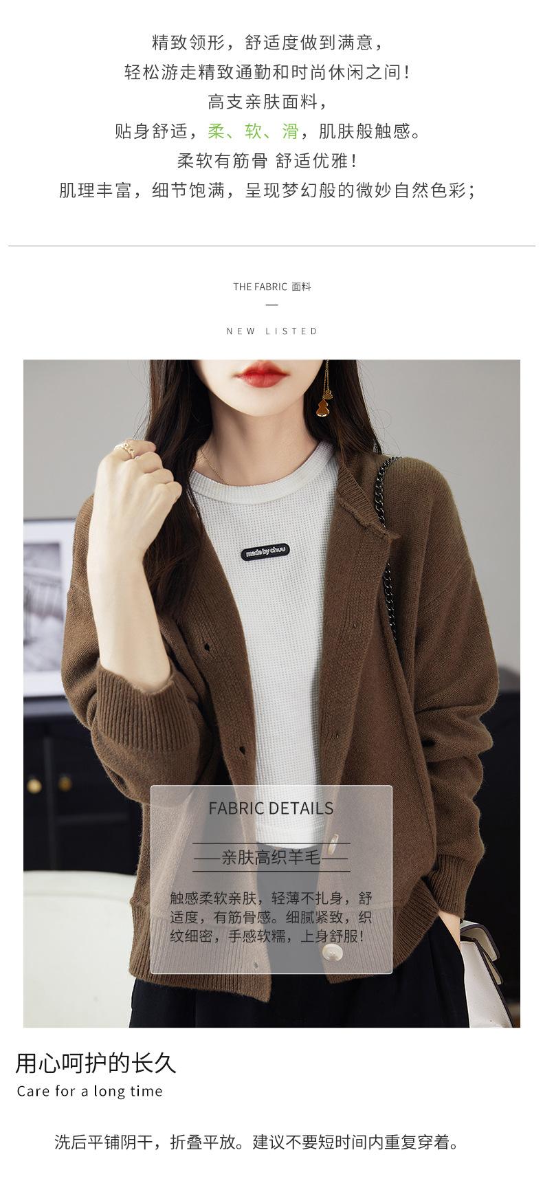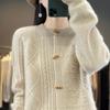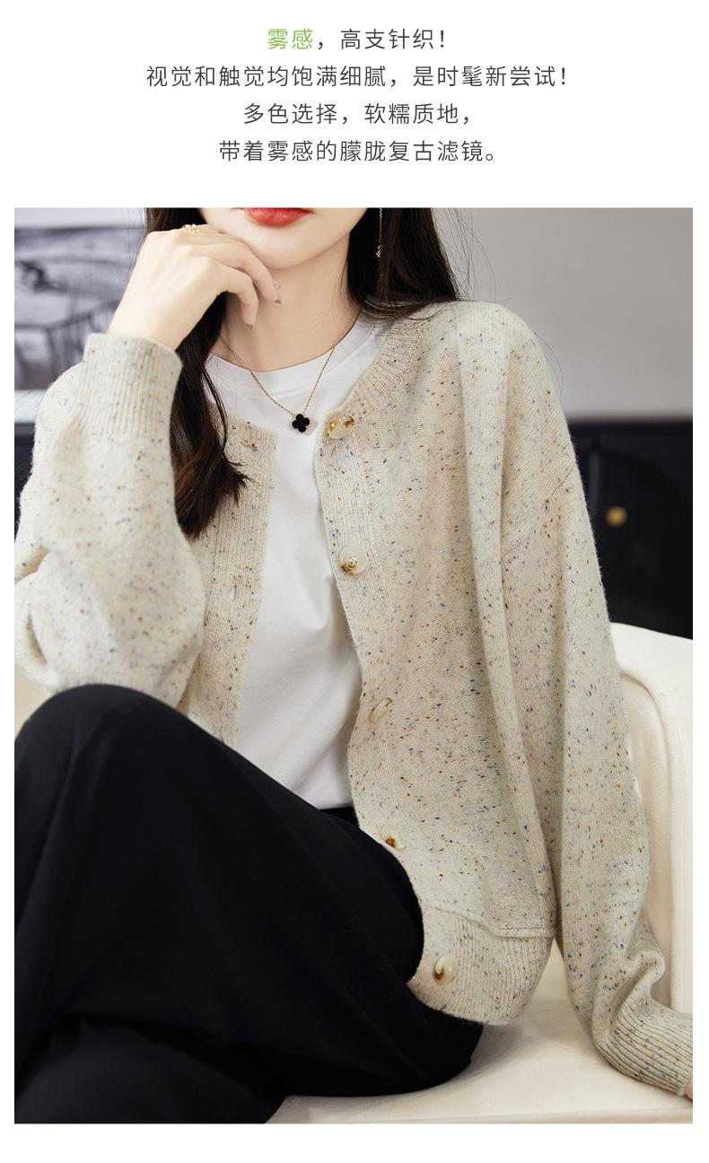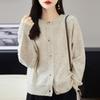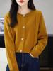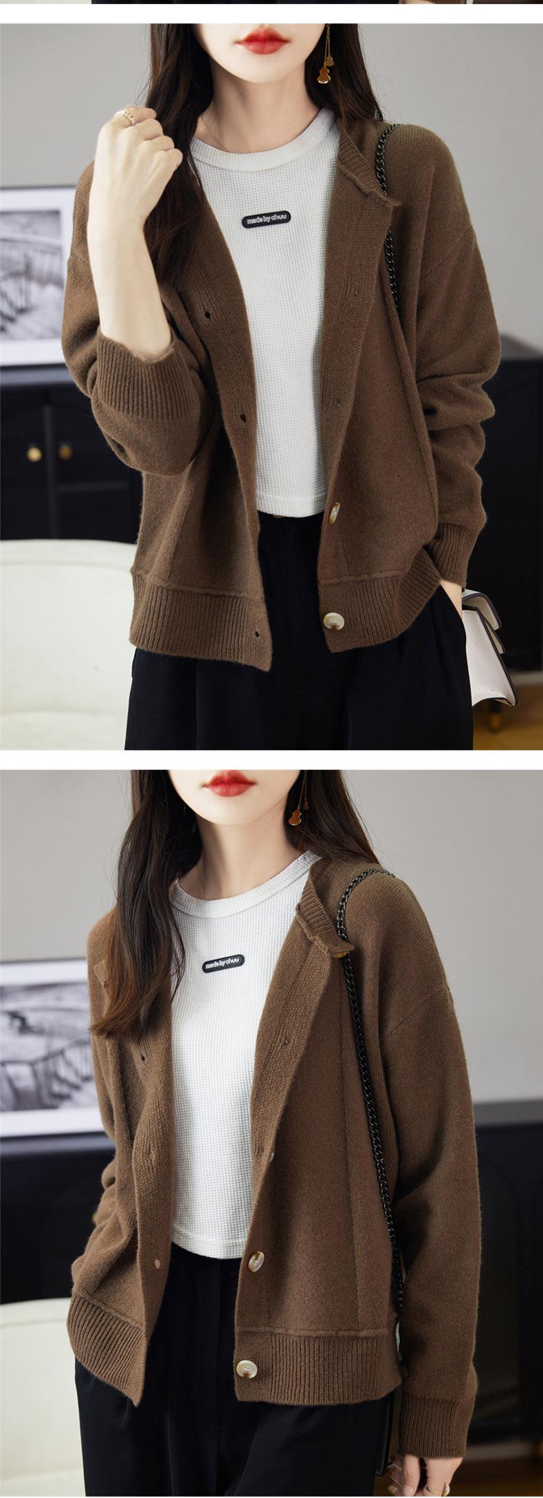 Cárdigan de Punto de Lana Pura de Cuello Redondo Nuevo para Mujer Color Sólido Suelto Elegante Casual Simple Suave Ceroso Chaqueta de Un Solo Botón