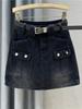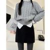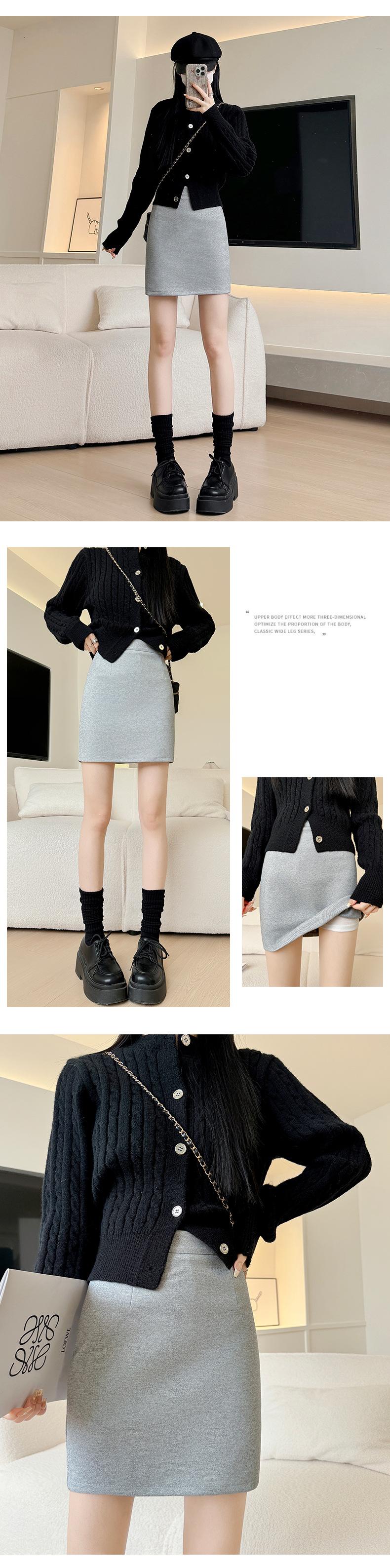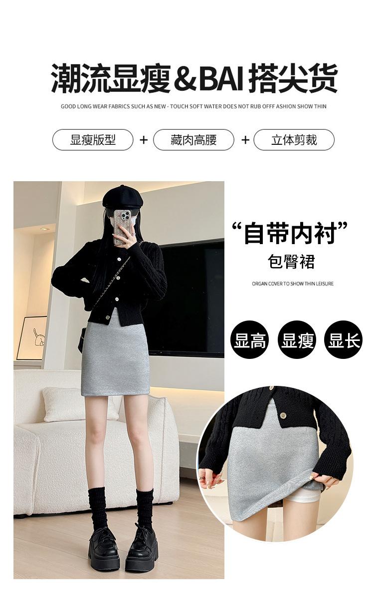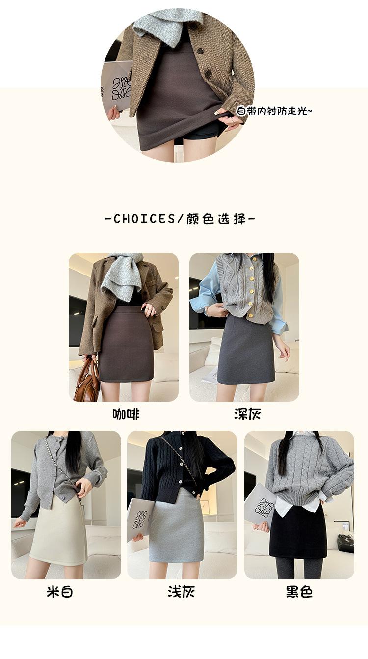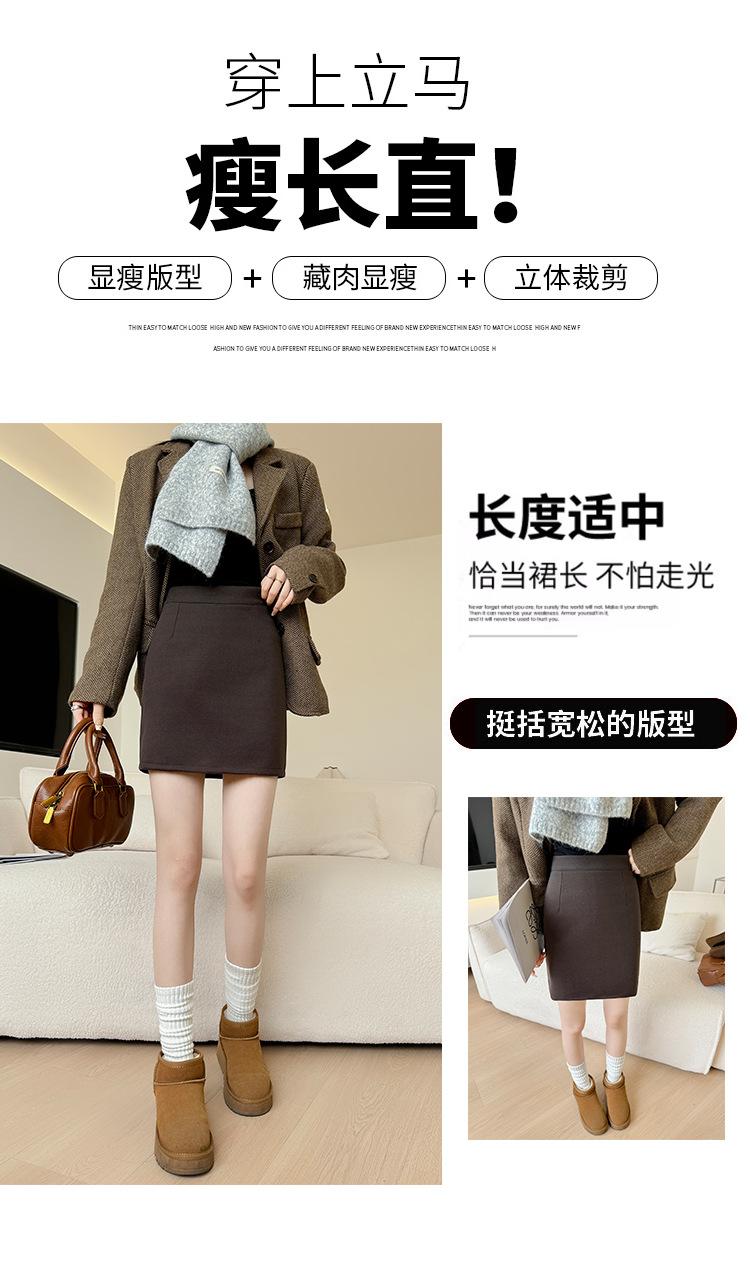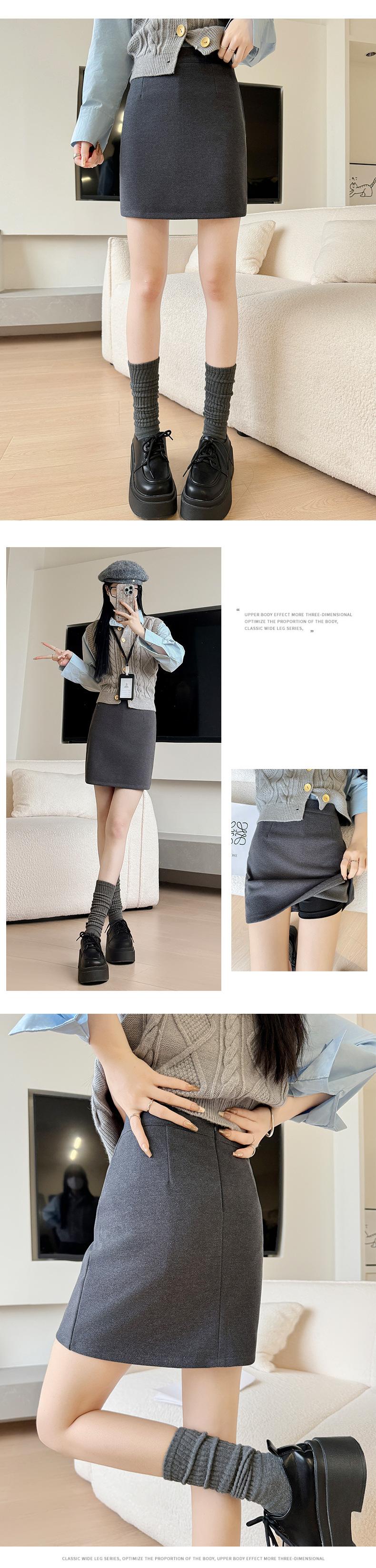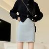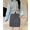 Falda de Lana Gris para Mujer Primavera y Otoño Nueva Falda Corta A-Line de Sarga de Cintura Alta Falda Pequeña Ajustada a la Cadera para Chica Hot