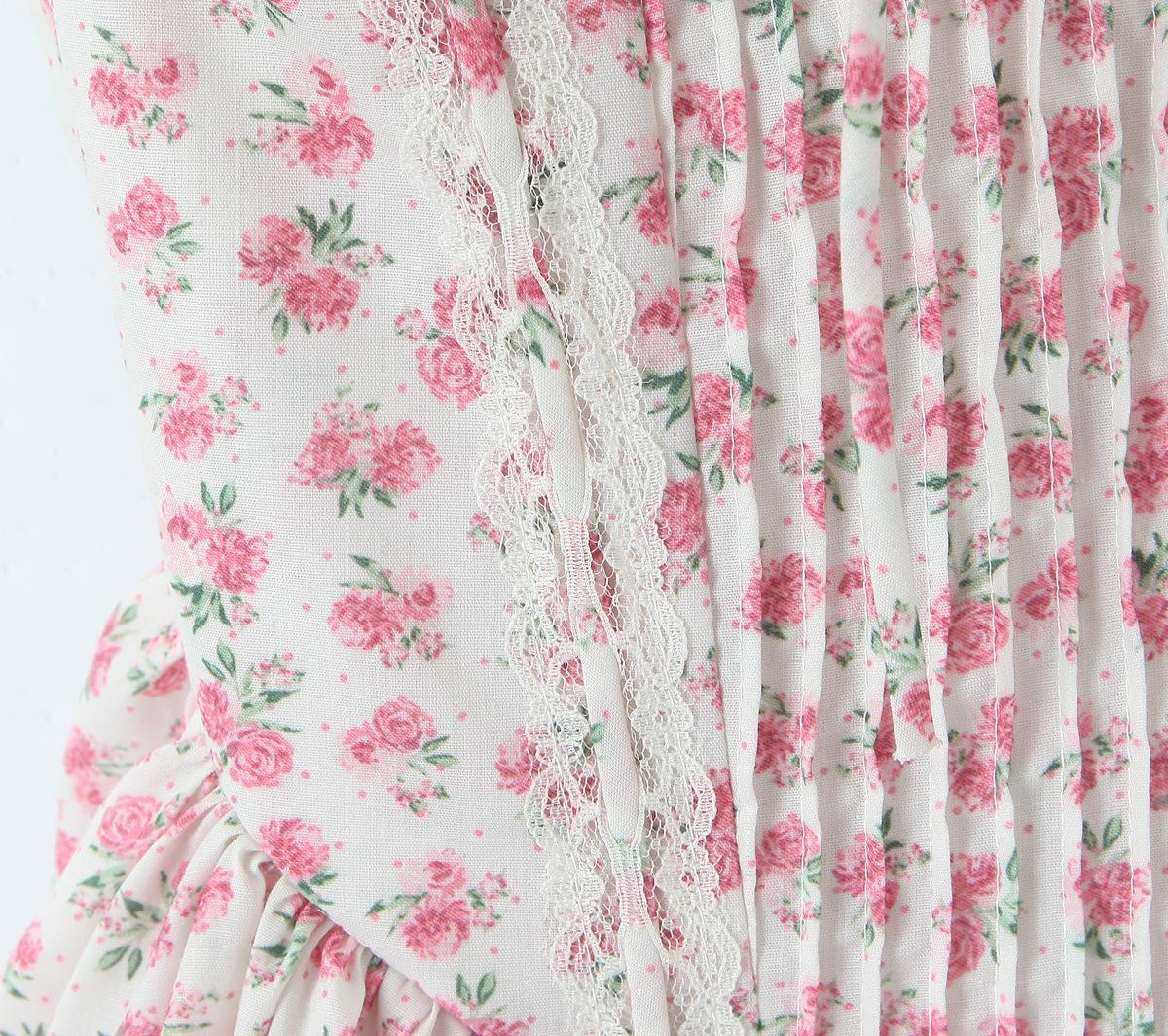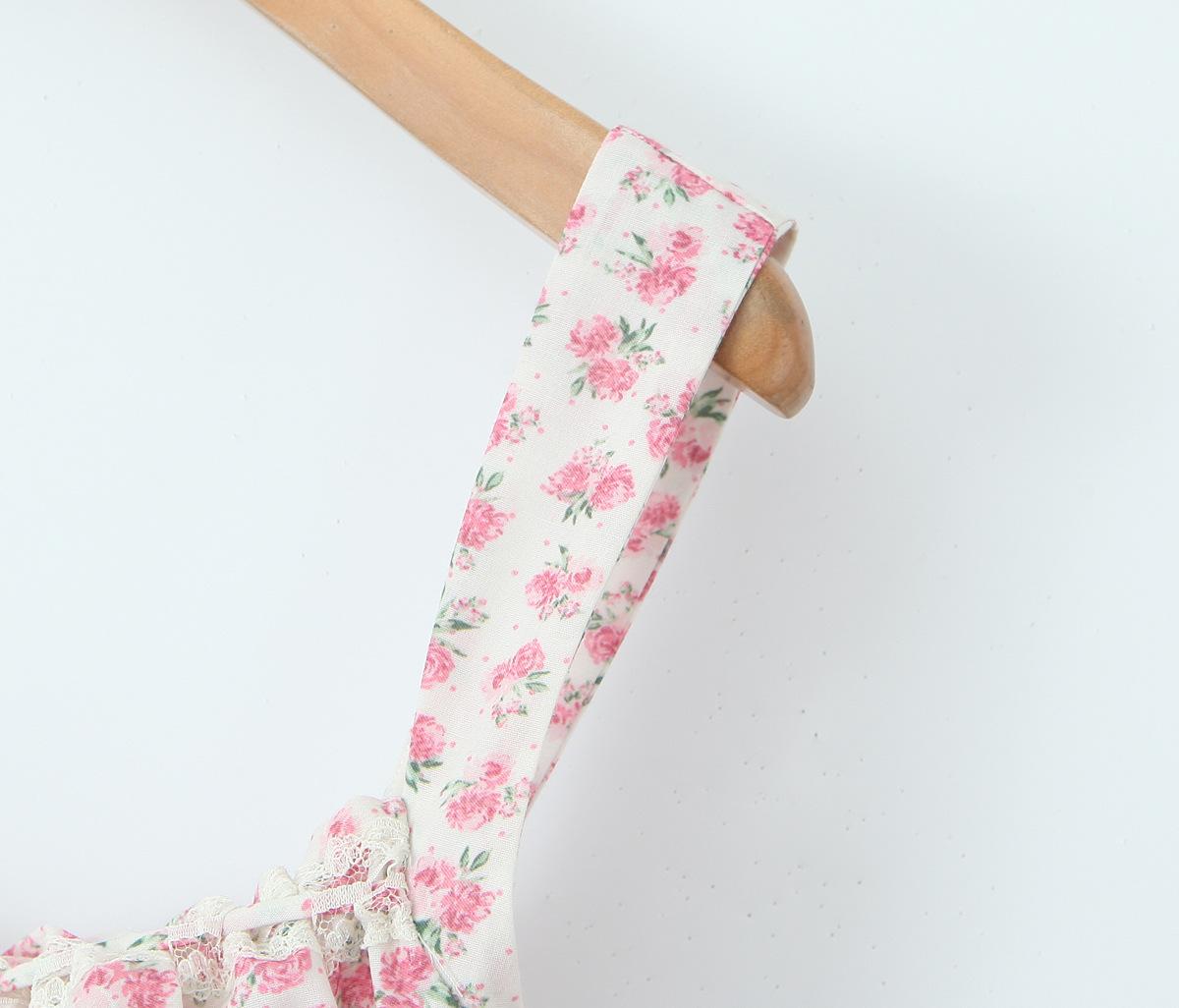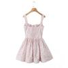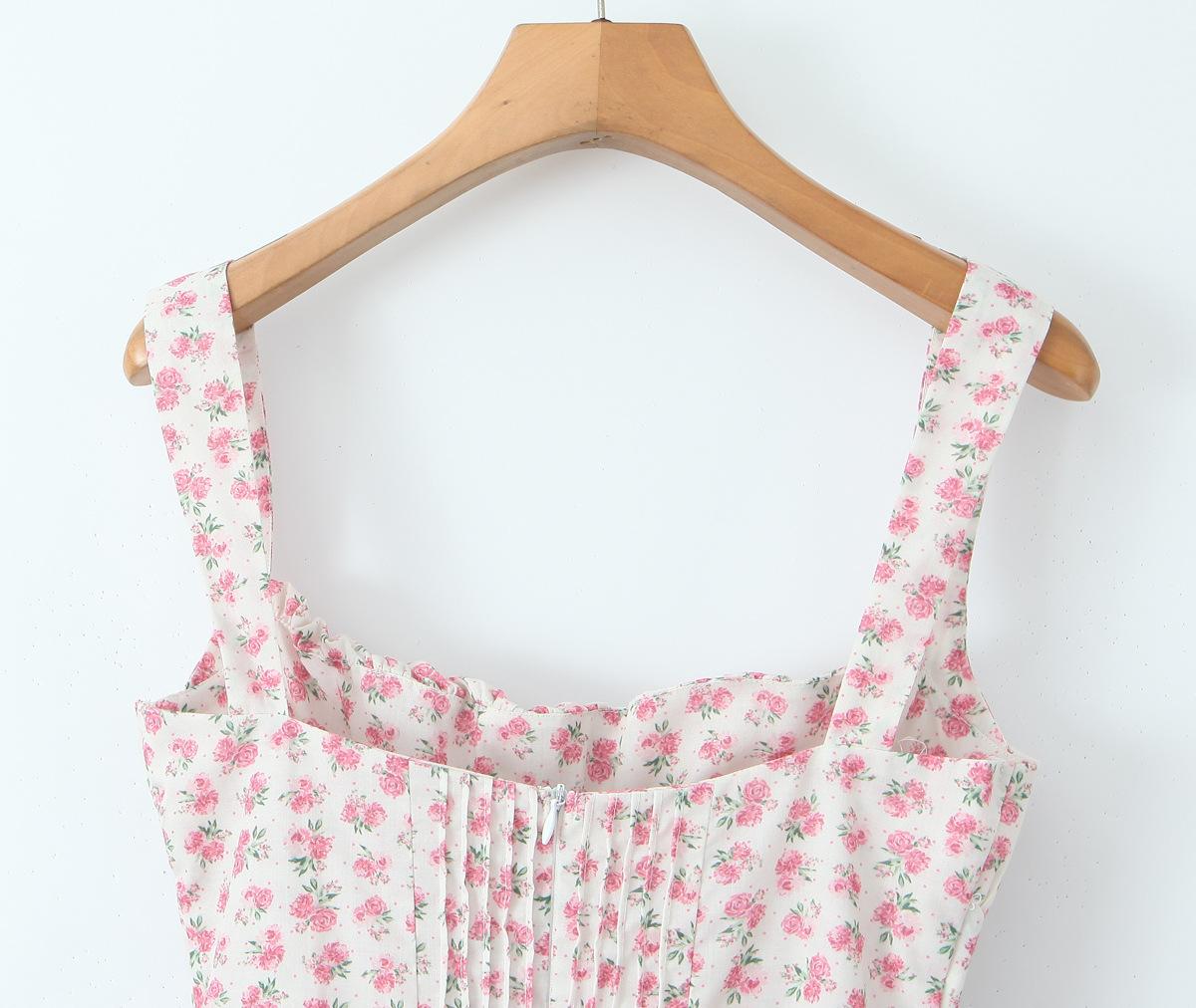 6503-25 Versión coreana de verano de vestido de tirantes con estampado de flores dulces, cuello cuadrado francés, espalda descubierta sexy, abanicos delgados