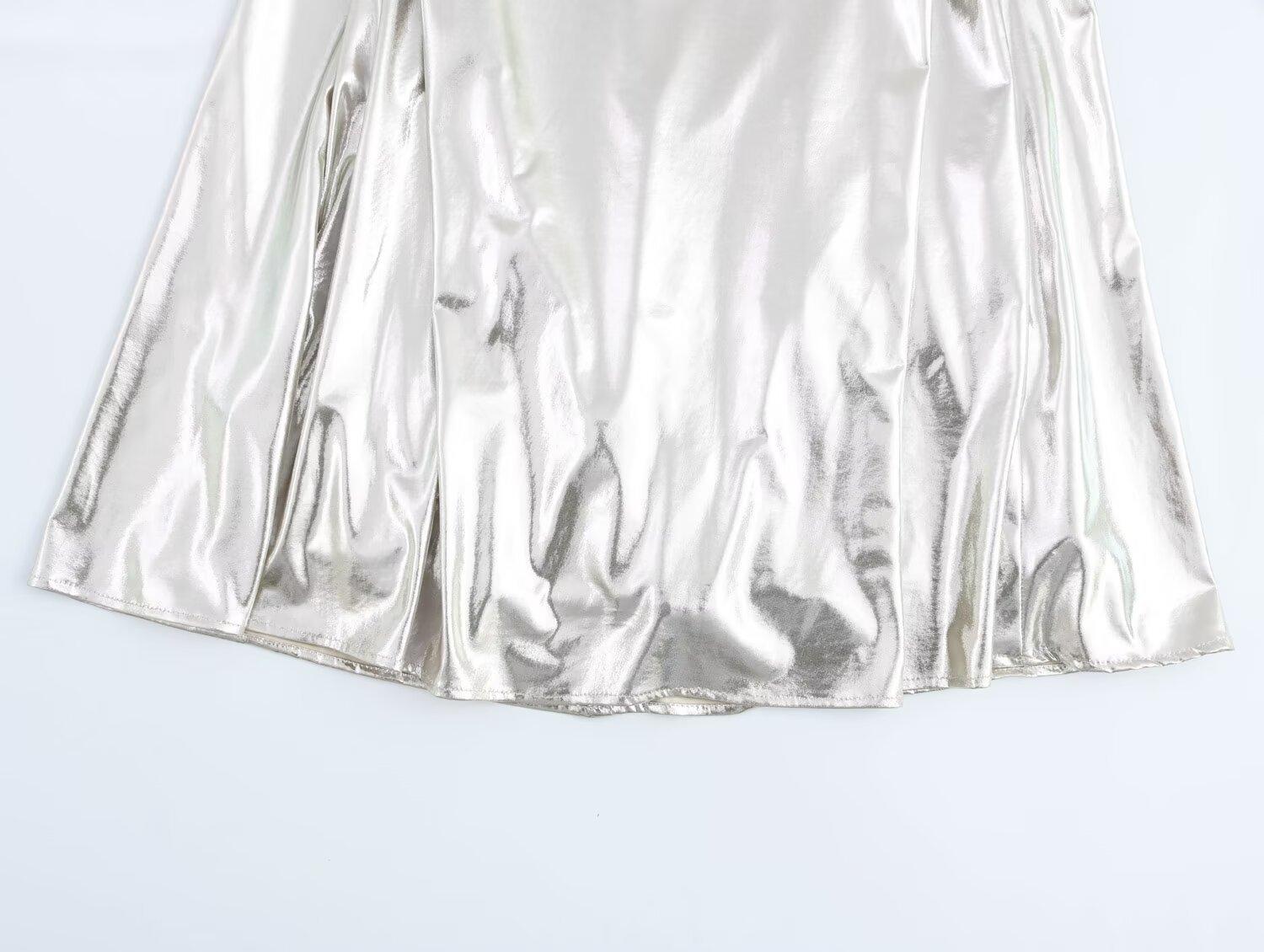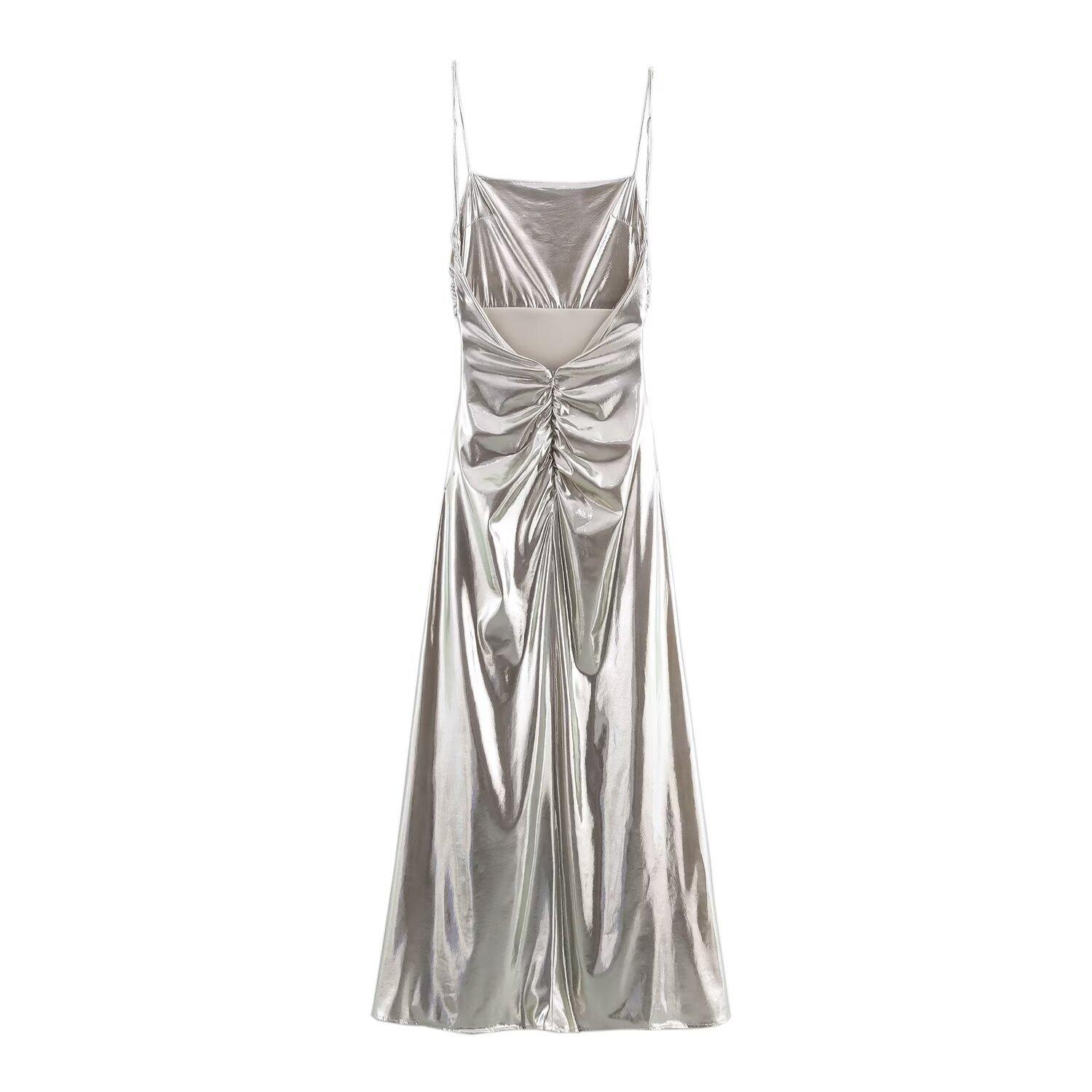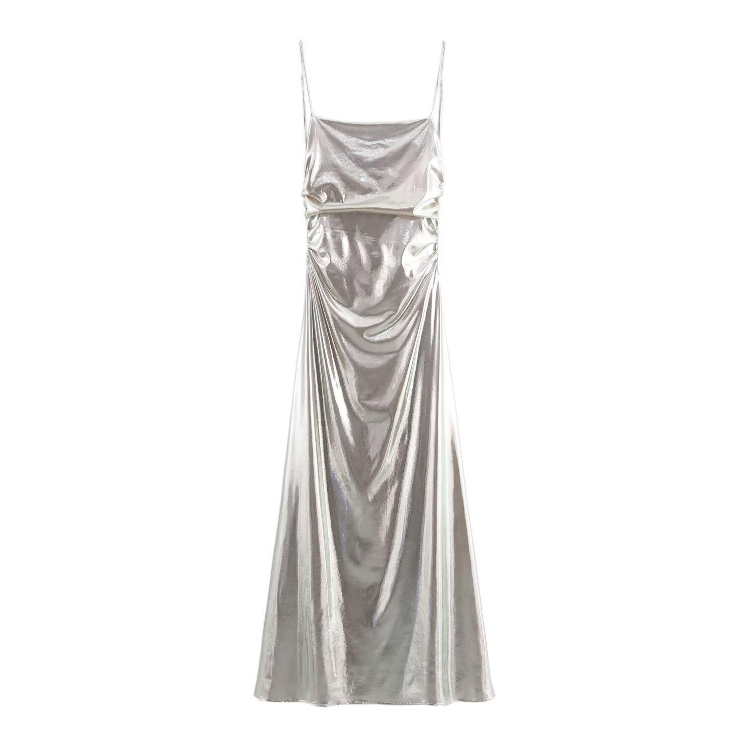 Vestido plisado con lámina metálica de moda de nuevo temperamento primavera 2025 para mujer, ropa de mujer de Europa y Estados Unidos, comercio exterior transfronterizo de Amazon