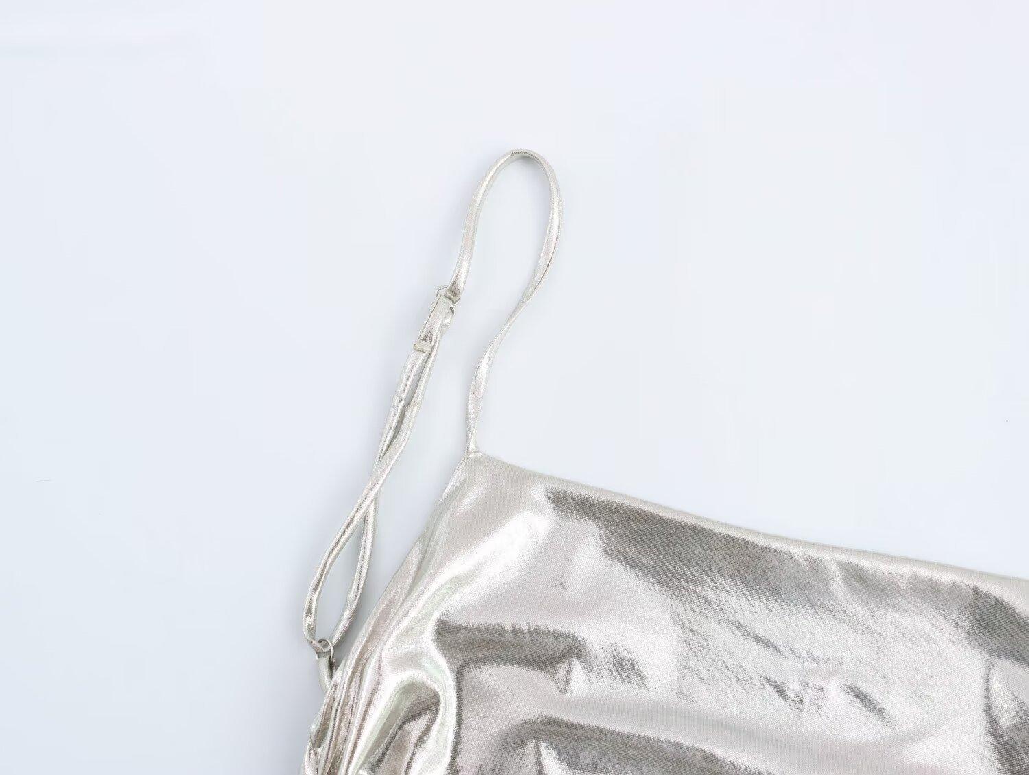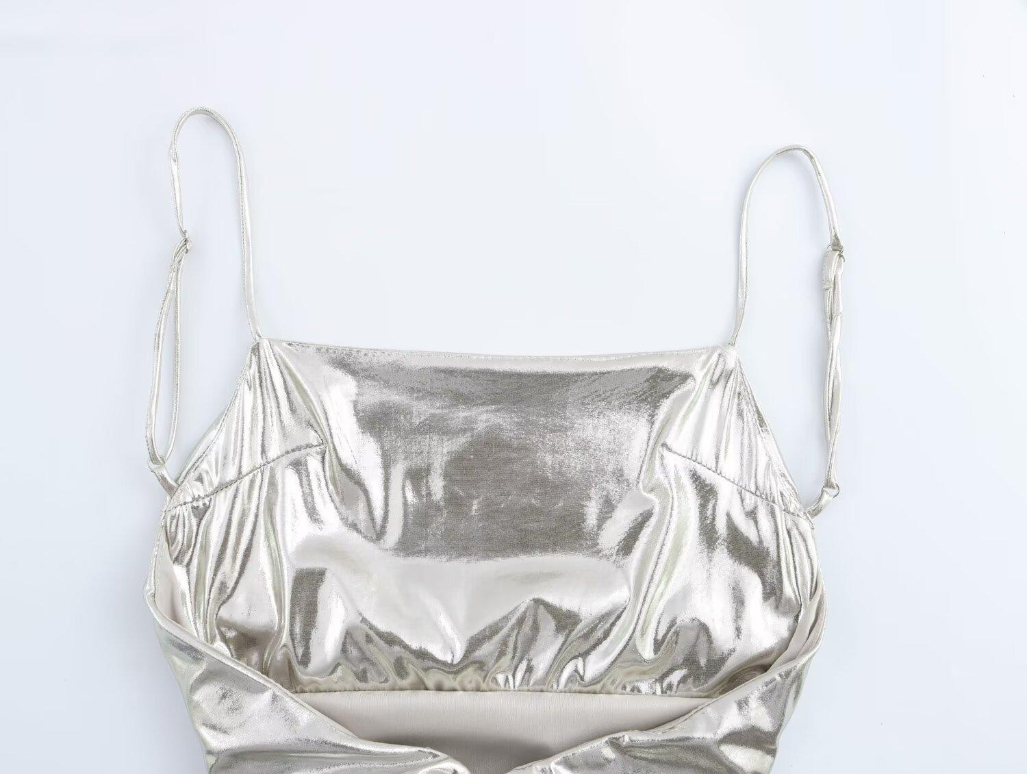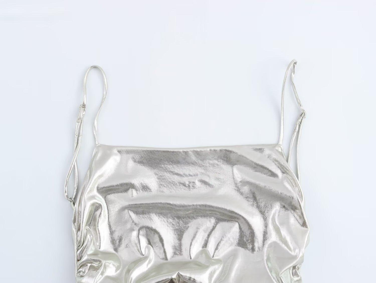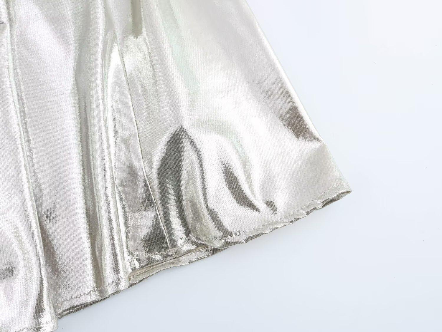 Vestido plisado con lámina metálica de moda de nuevo temperamento primavera 2025 para mujer, ropa de mujer de Europa y Estados Unidos, comercio exterior transfronterizo de Amazon