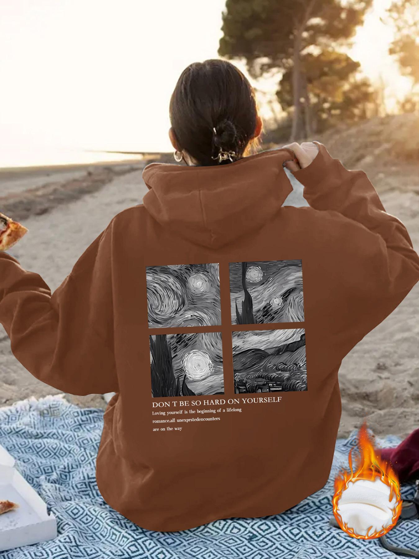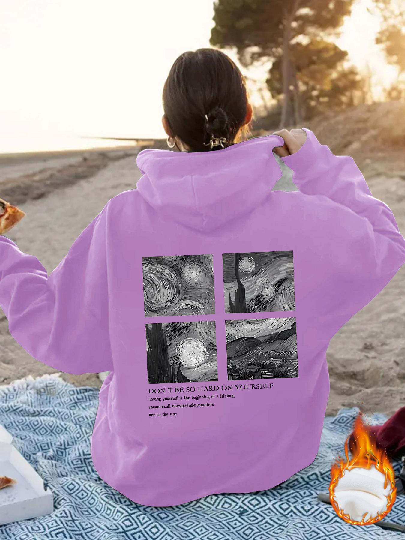 Suéter holgado informal de manga larga con capucha y estampado de pintura al óleo, cómodo y con borde cruzado, disponible en Amazon eBay, venta al por mayor.