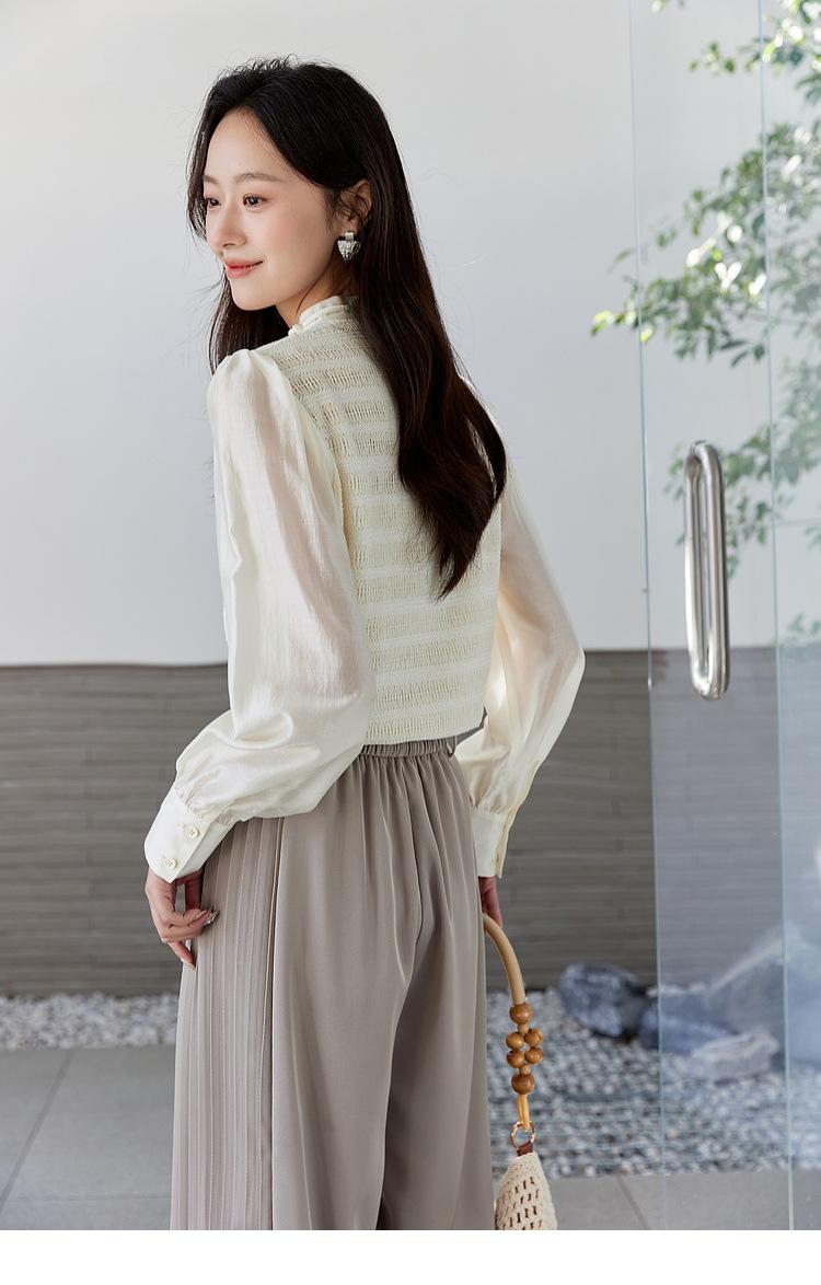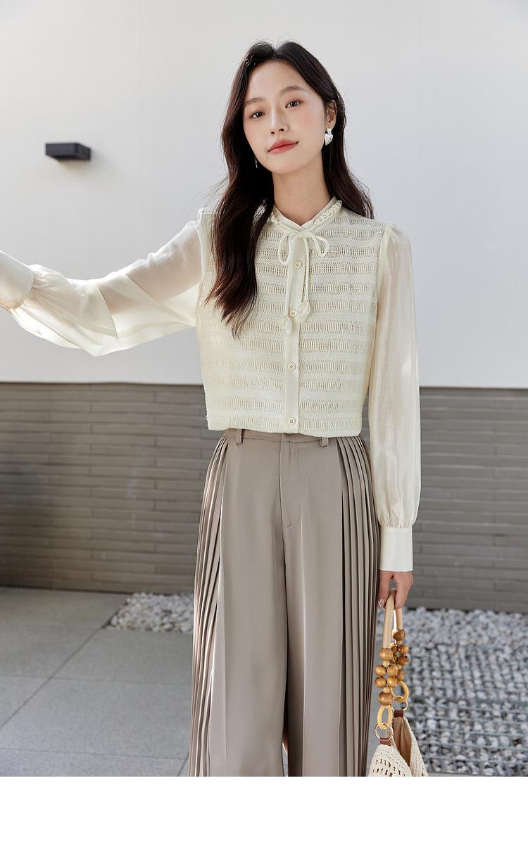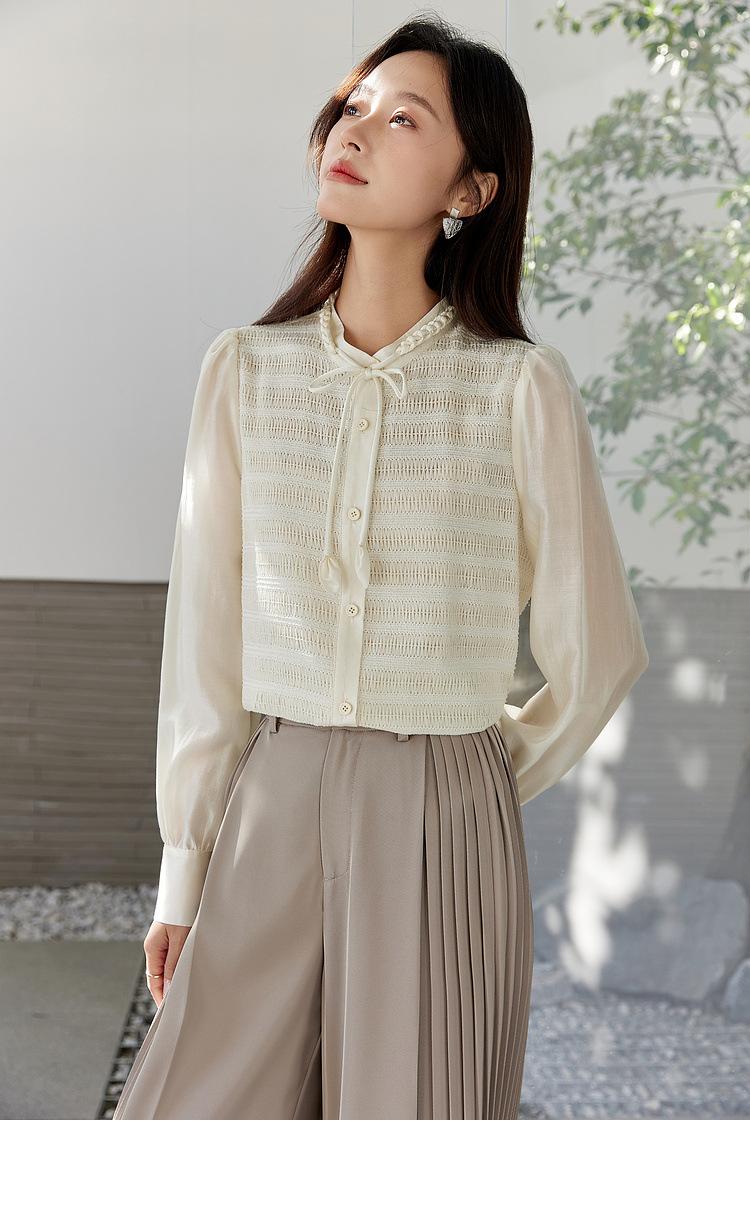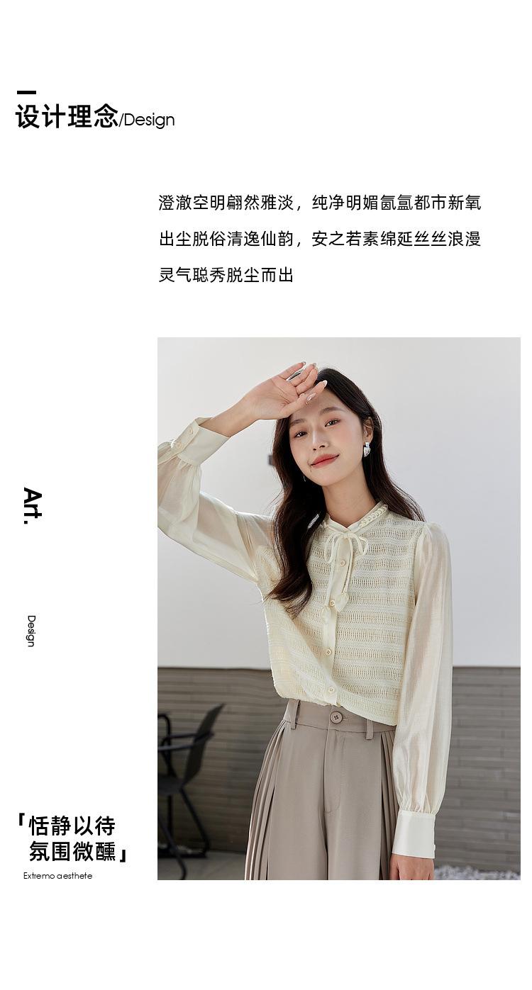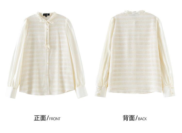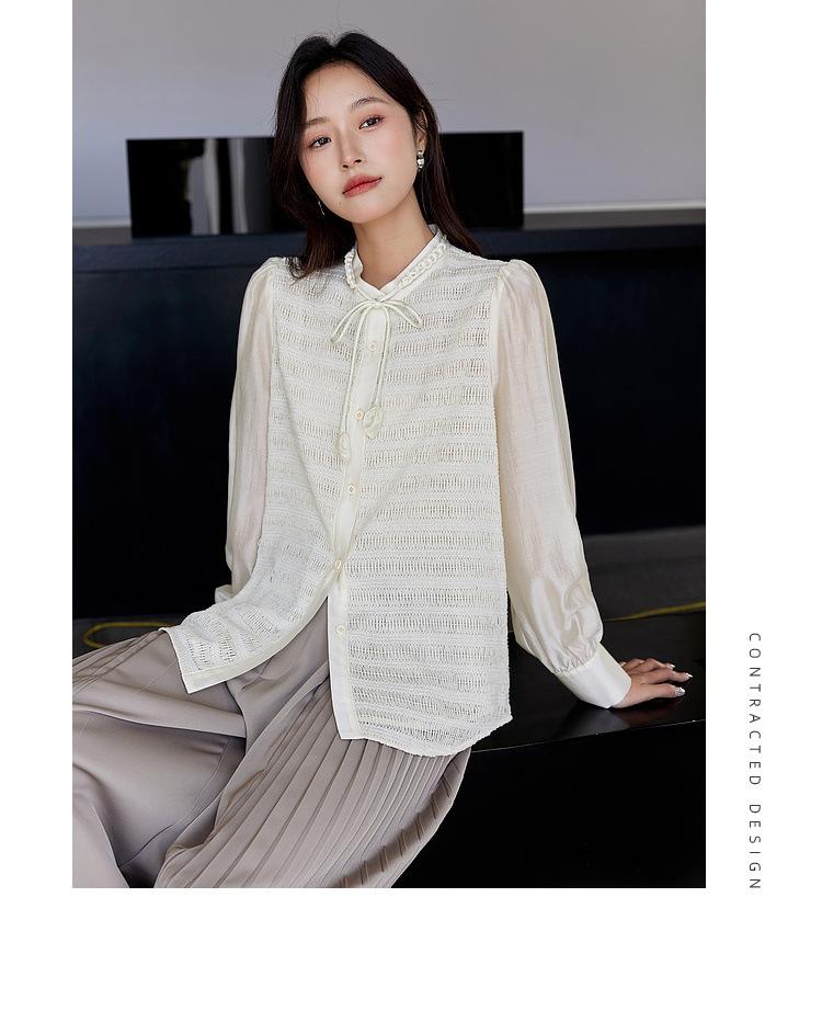 Zhen Xi - Camisa de manga larga con cuello alto y encaje calado para mujer, estilo informal, SQ592