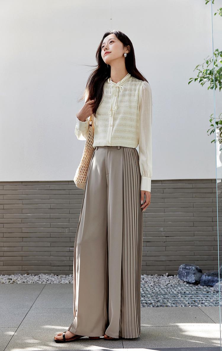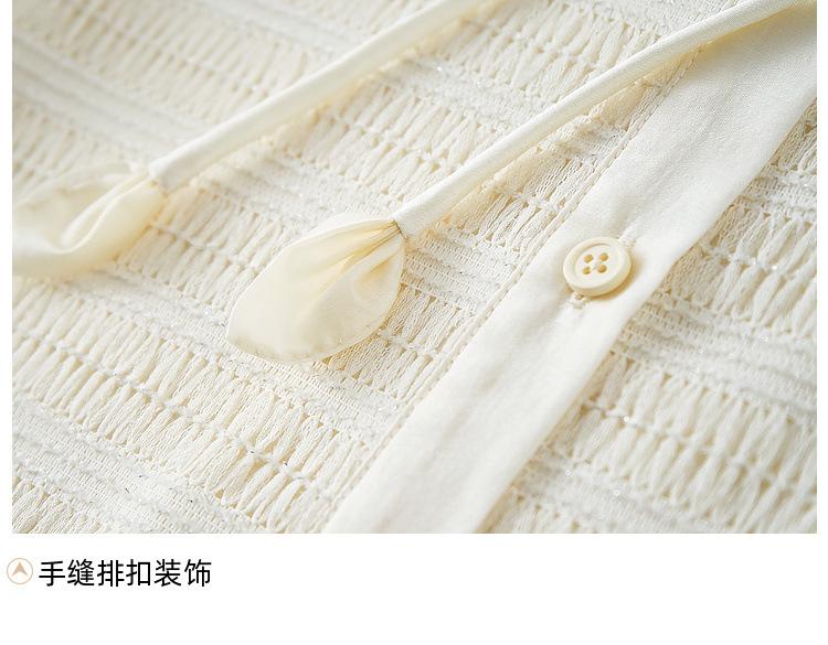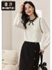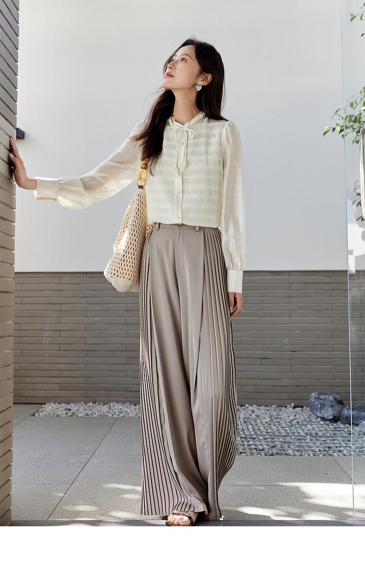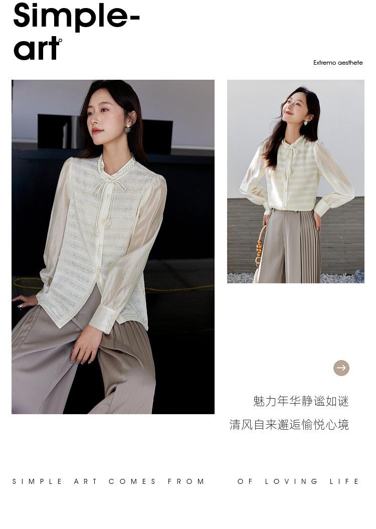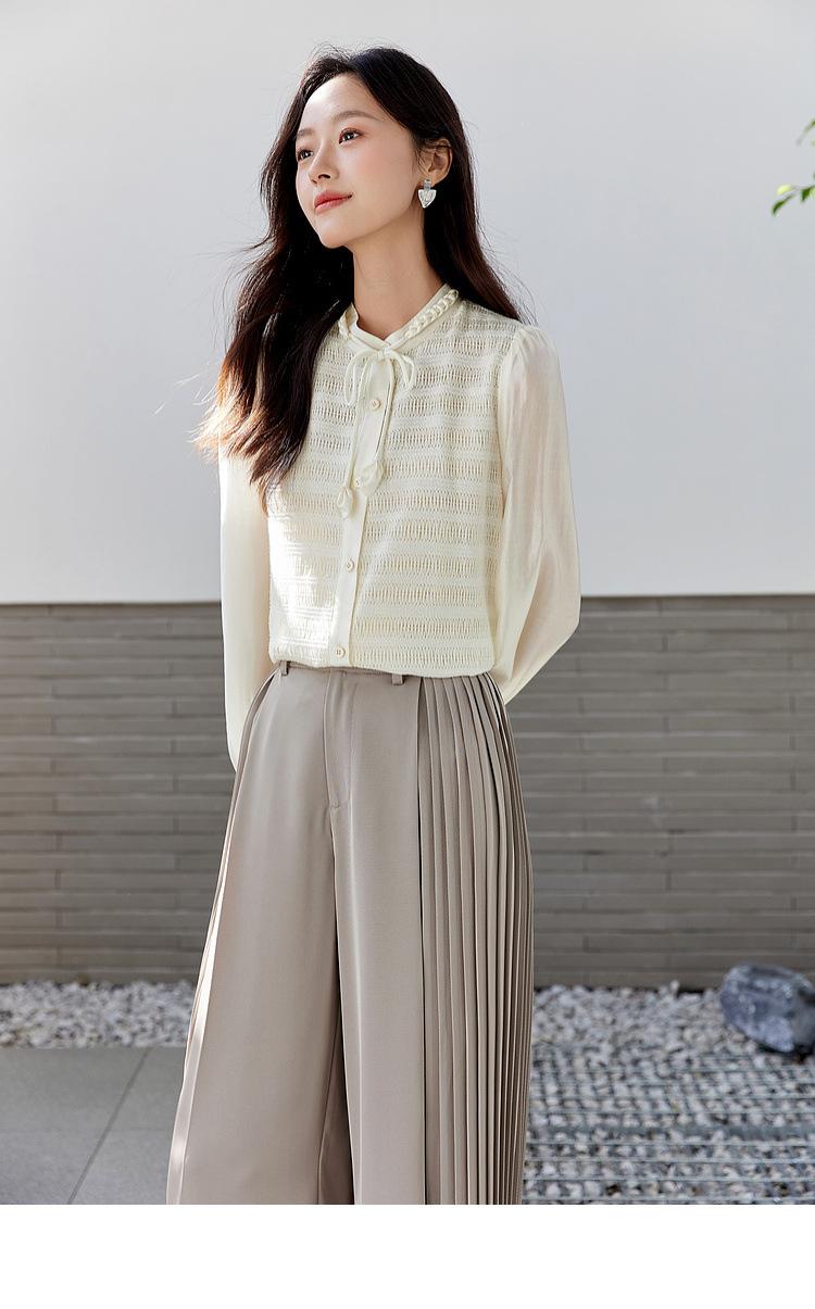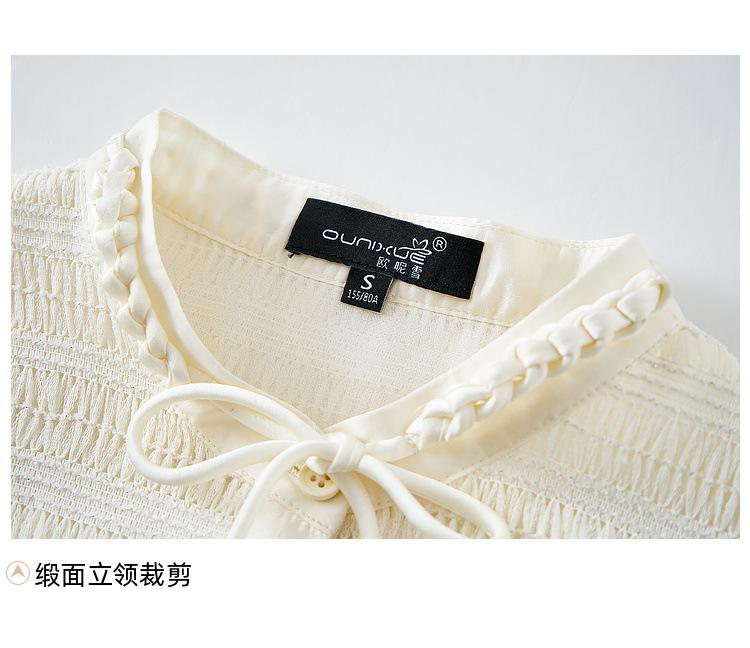 Zhen Xi - Camisa de manga larga con cuello alto y encaje calado para mujer, estilo informal, SQ592