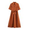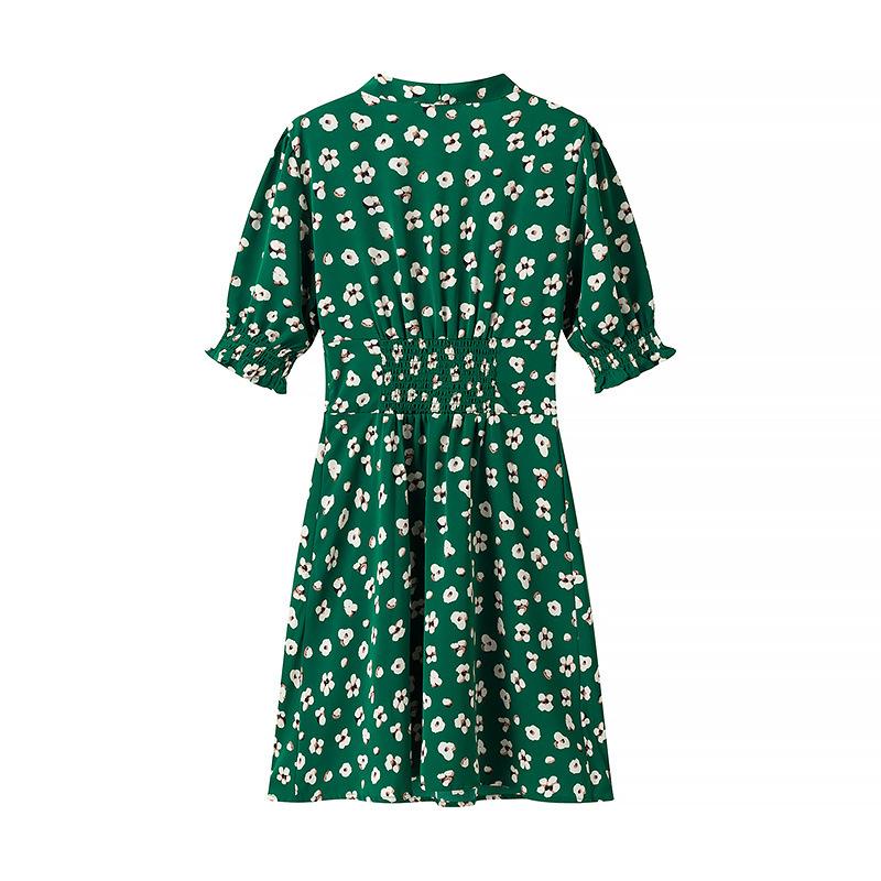 Moda Europea y Americana Transfronteriza Vestido Estampado de Manga Corta Ajustado Combinable para Todo 2025 Primavera Nuevo C92363