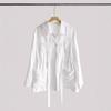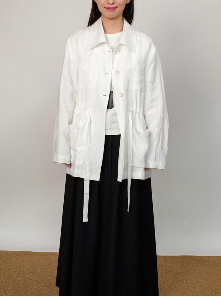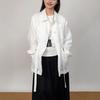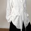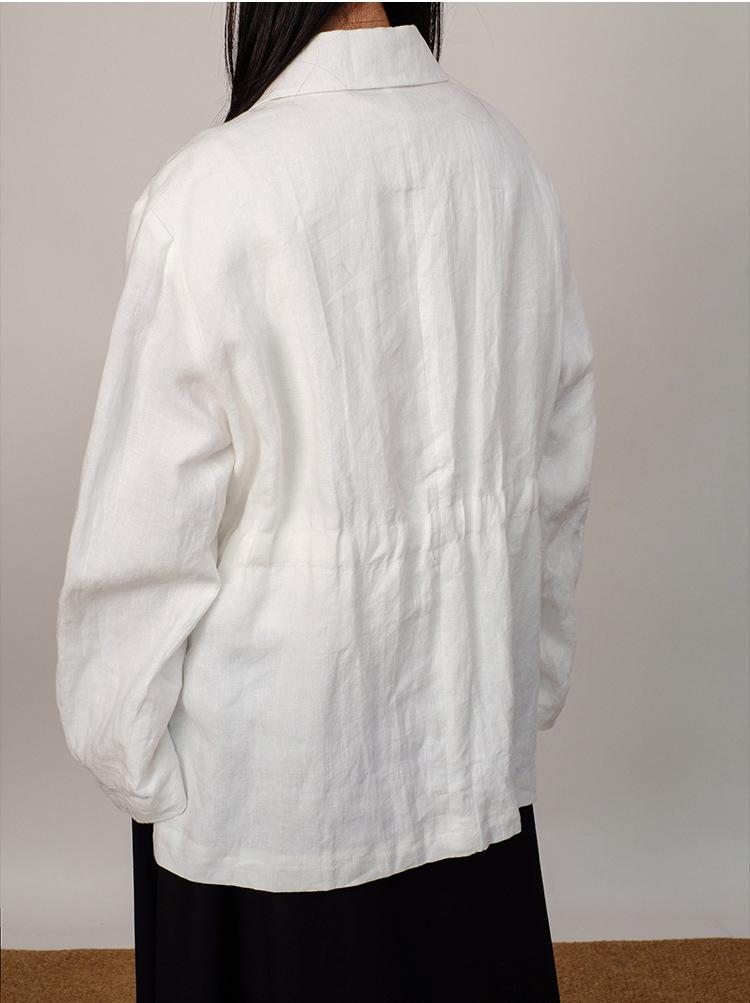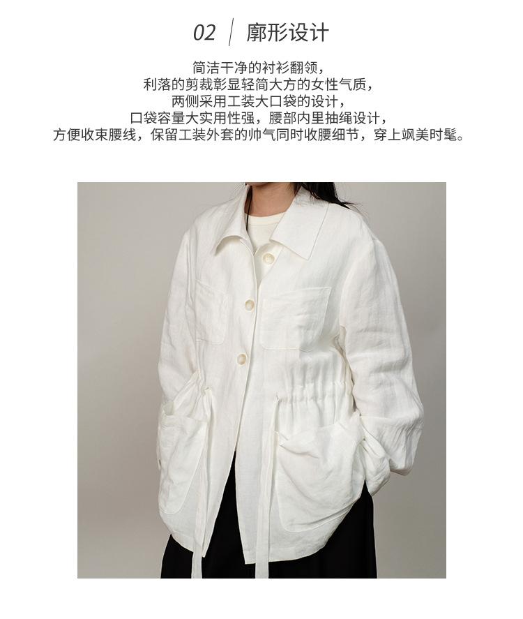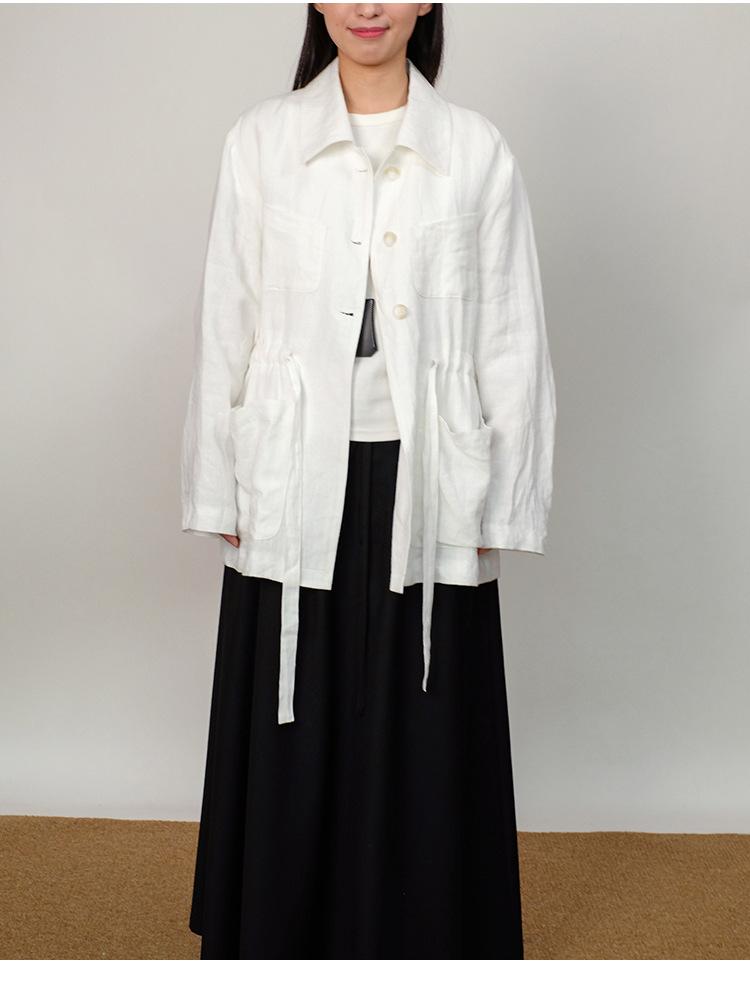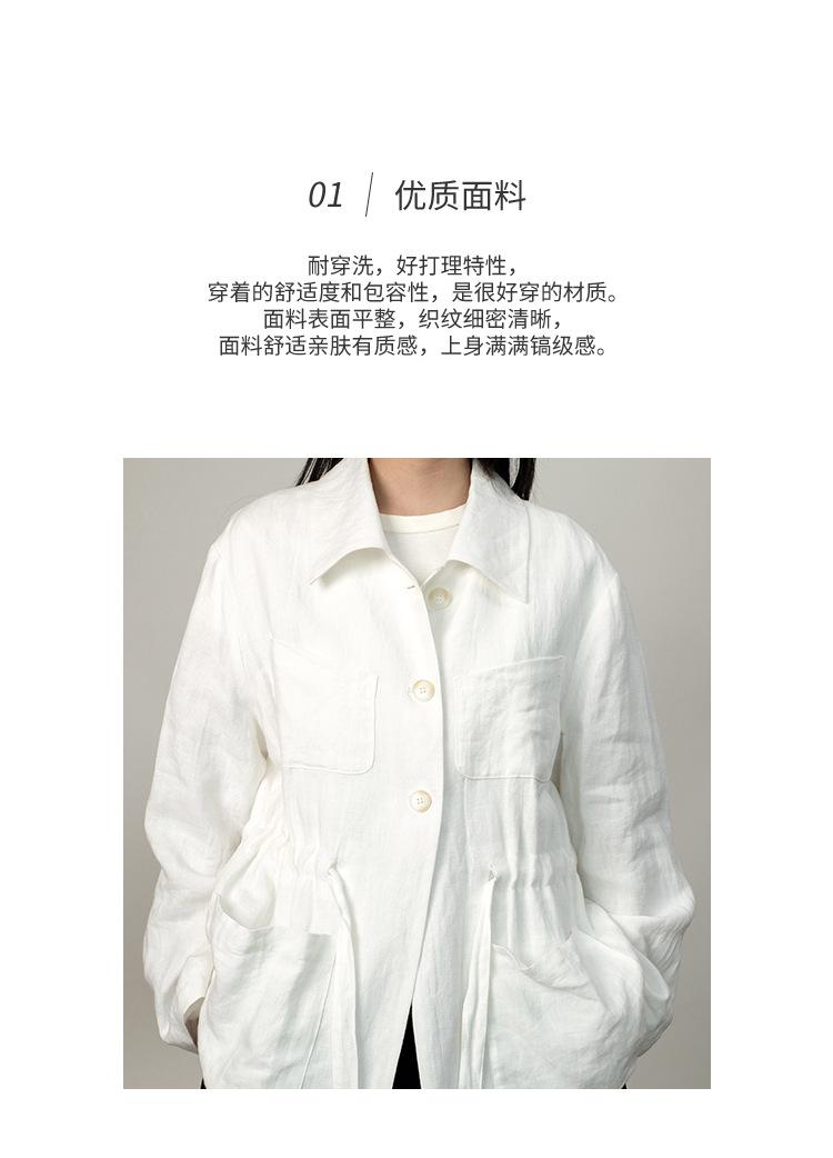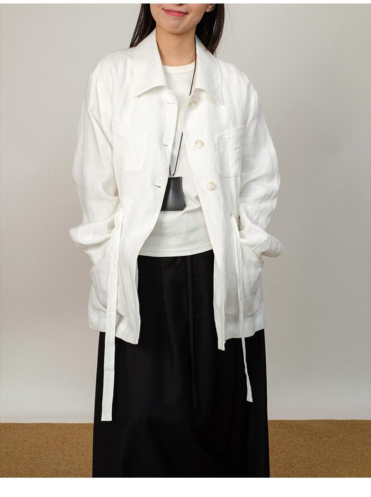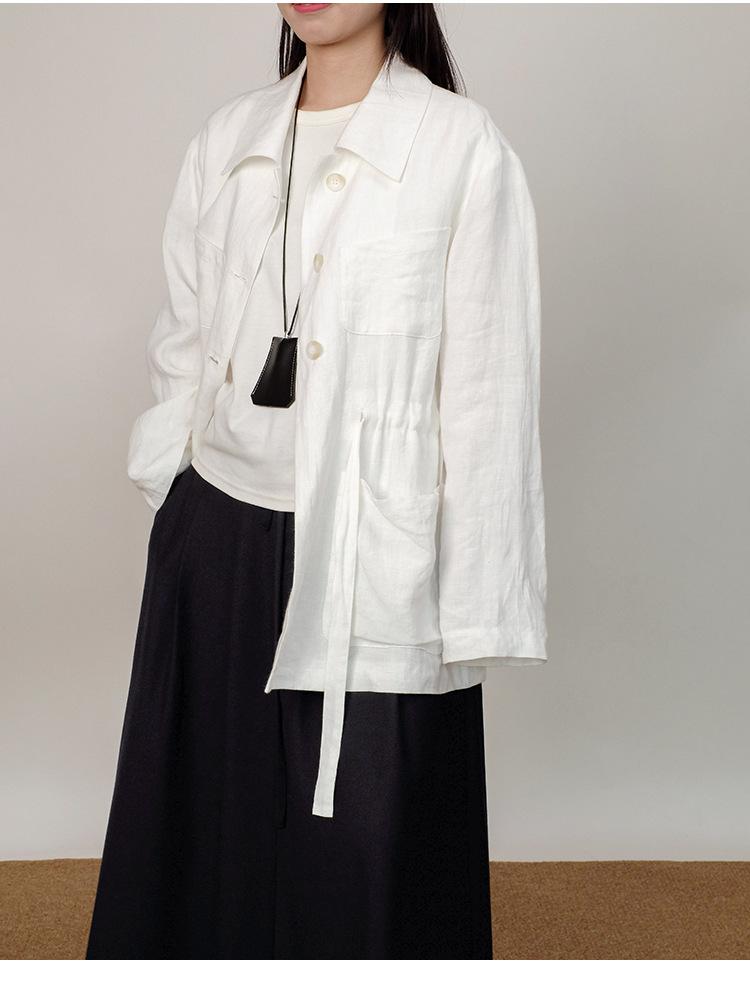 25 Nuevo Estilo Coreano Casual de Primavera y Verano Chaqueta de Mujer de Largo Medio Estilo Ropa de Trabajo de Lino Blanco con Cintura Ajustable con Cordón y Mangas Largas