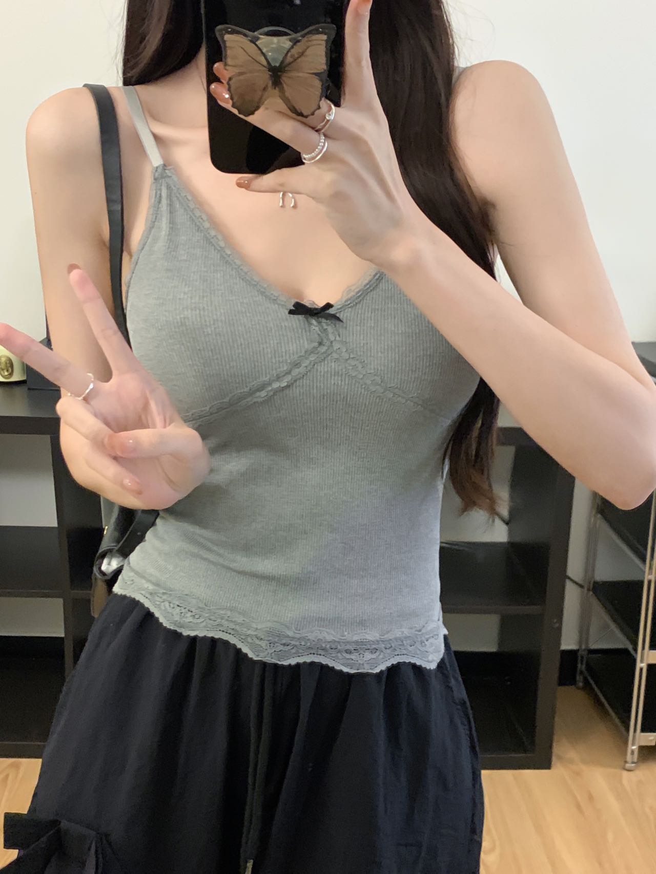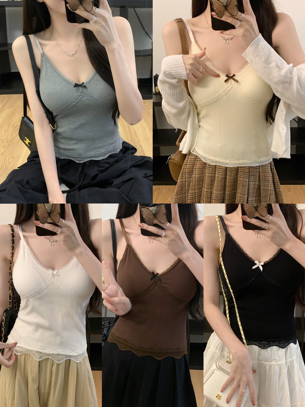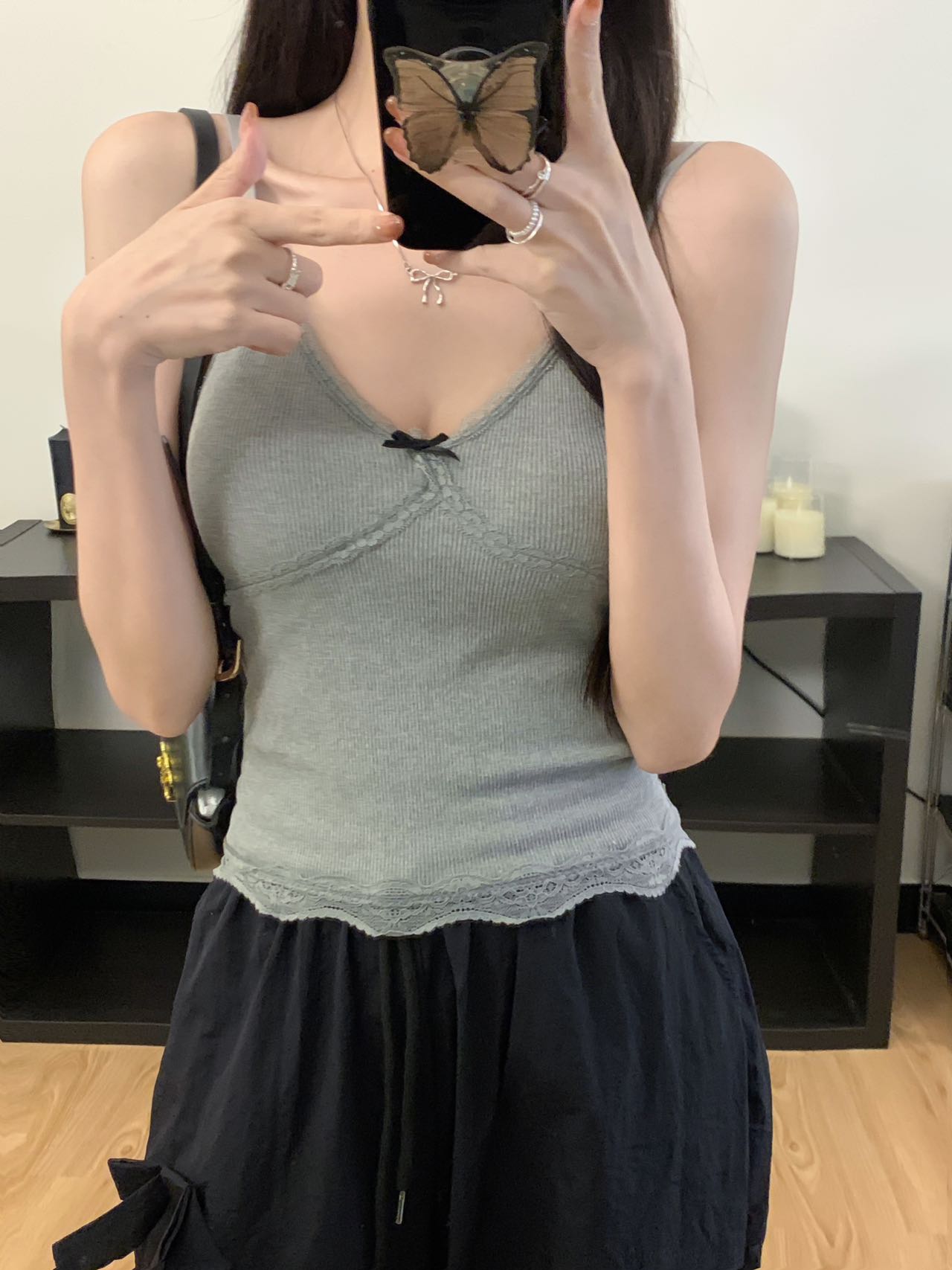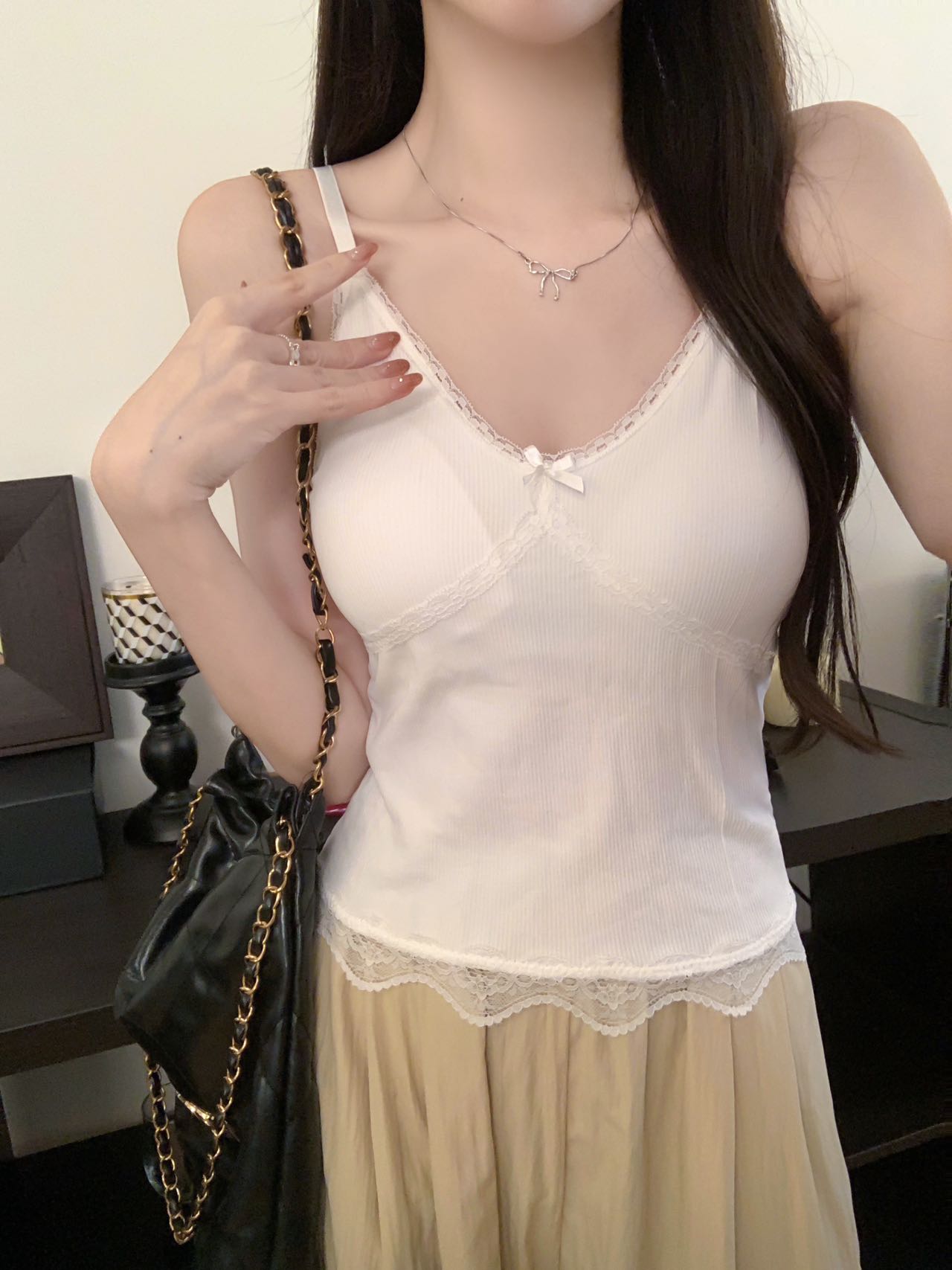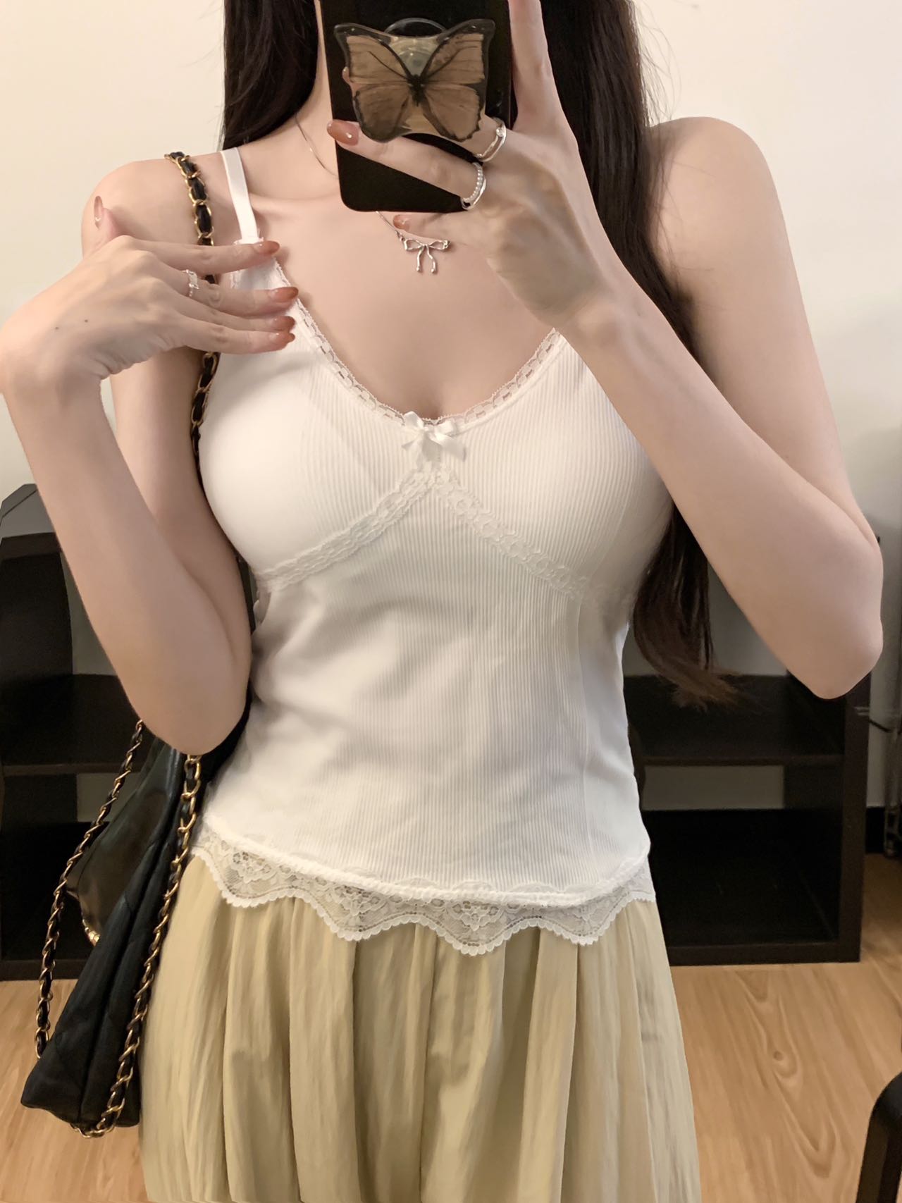 Camisola con costuras de encaje y lazo Pure Desire para mujer, cinturón con almohadilla en el pecho, interior ajustado, base adelgazante, top que combina con todo, a la moda