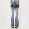 Pantalones vaqueros ajustados de cintura alta estilo europeo y americano, lavados, retro, micro acampanados, elásticos, para mujer, para primavera