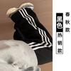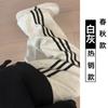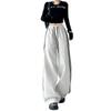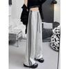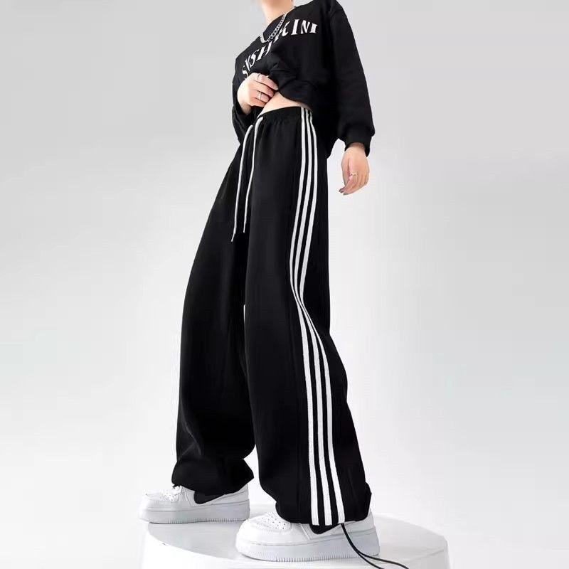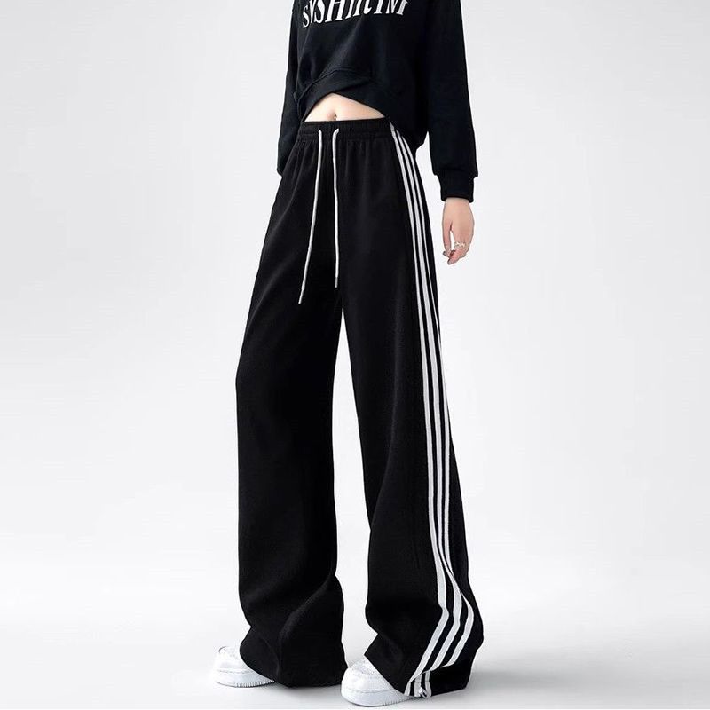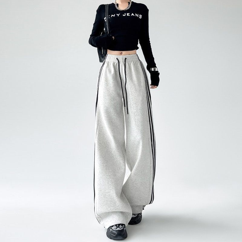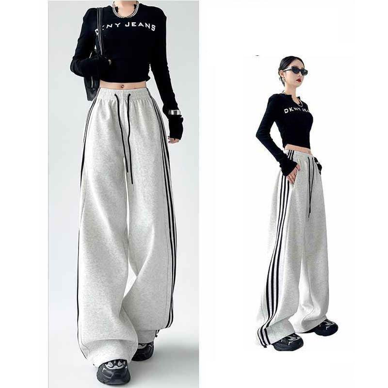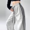 Pantalones deportivos grises de tres barras para mujer, primavera 2025, nuevos pantalones de chándal de cintura alta, adelgazantes, de pierna ancha, informales, con cordón ajustable.