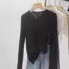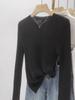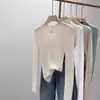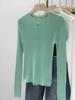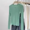 Compra Camiseta básica de punto fino para mujer, Top tipo jersey de cuello redondo, Primavera y otoño, Ajustado, Dulce y picante chic, Ligeramente transparente, Suéter de manga larga para ir al trabajo al por mayor en Joom.pro