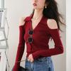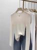 Camiseta básica de punto fino para mujer, Top tipo jersey de cuello redondo, Primavera y otoño, Ajustado, Dulce y picante chic, Ligeramente transparente, Suéter de manga larga para ir al trabajo