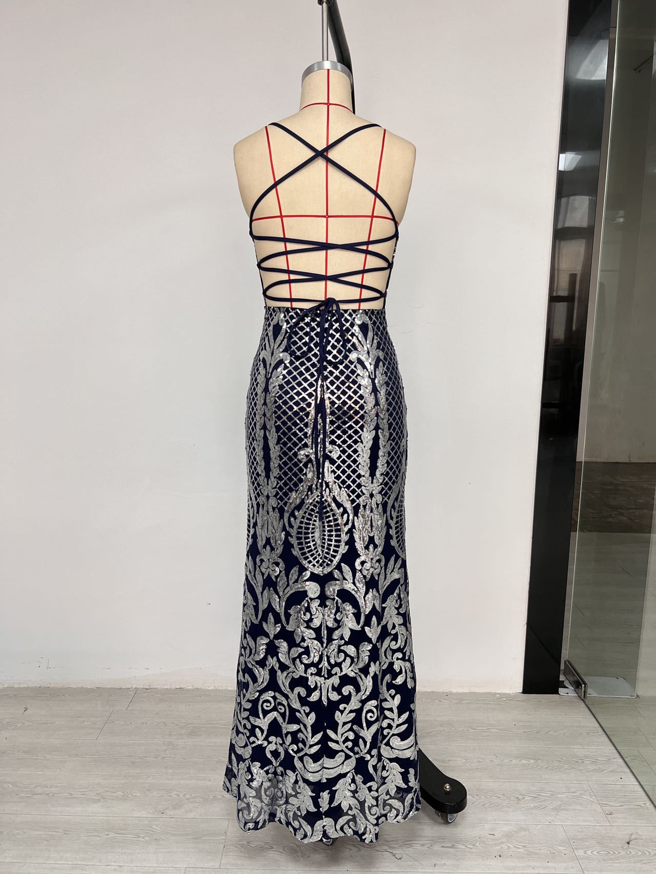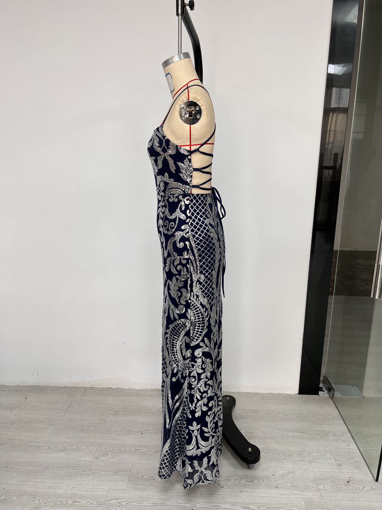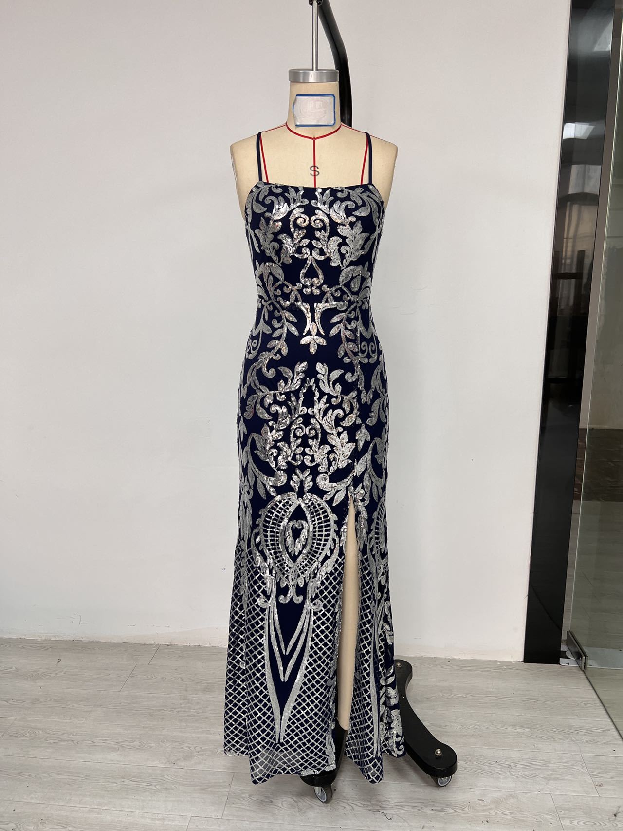 Vestido de celebridad de lentejuelas, sexy, con tirantes, espalda descubierta y abertura alta, de estilo europeo y americano, superventas.