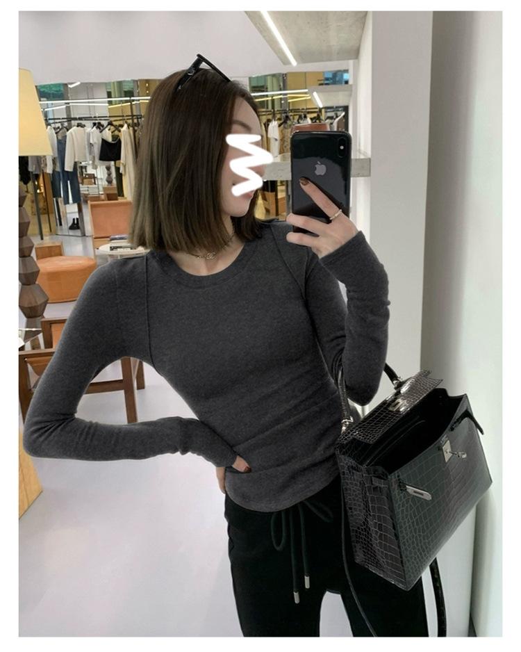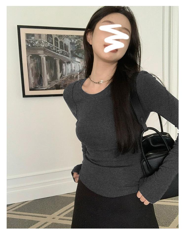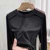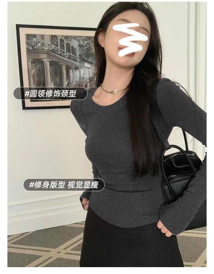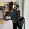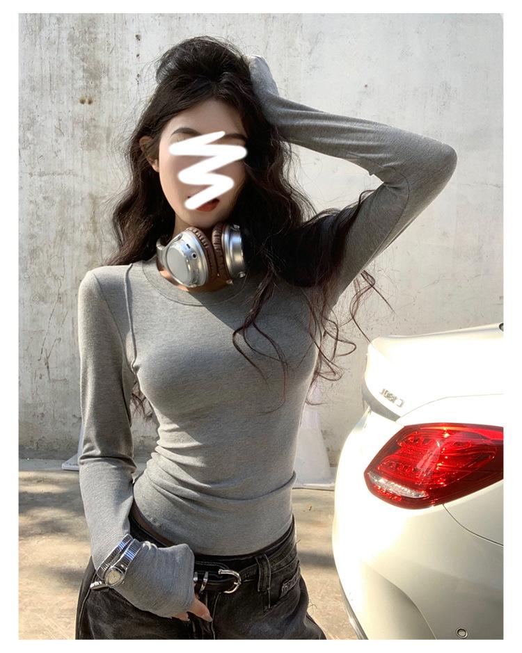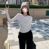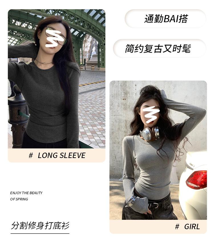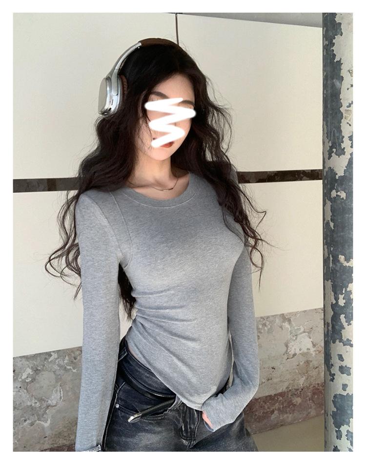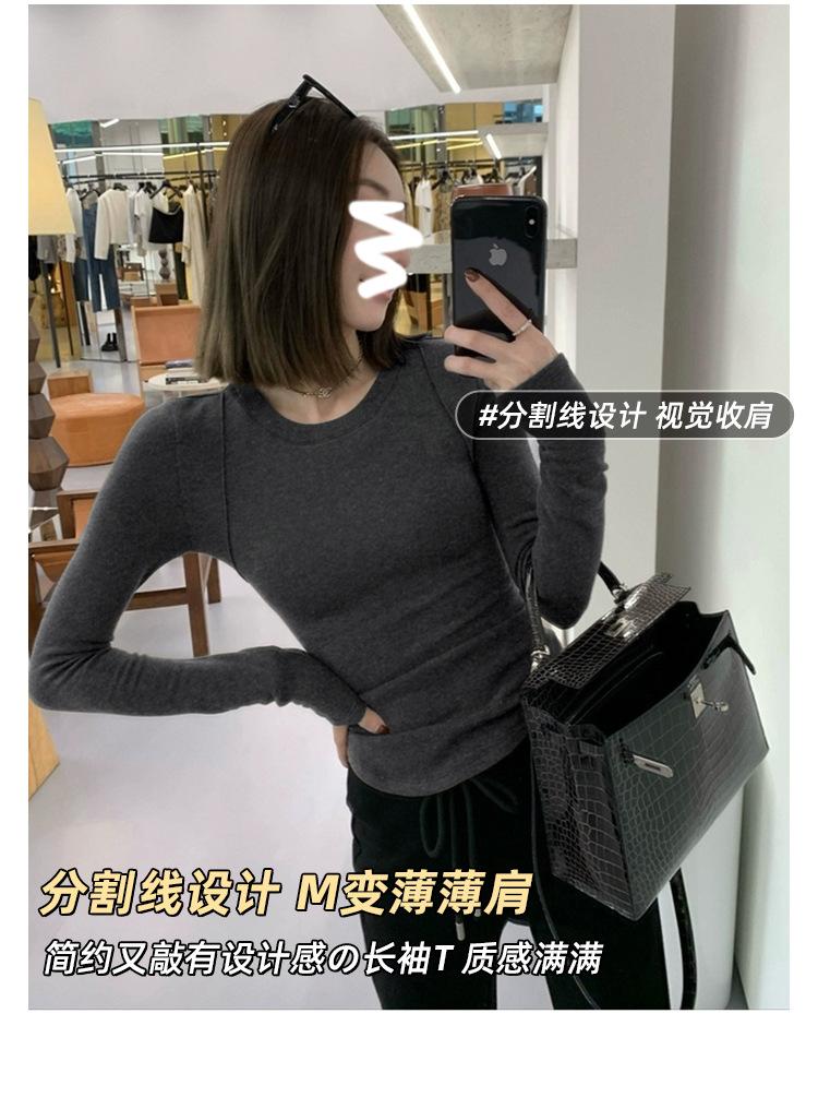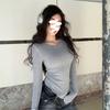 Camiseta de manga larga con cuello redondo y hombros descubiertos para mujer, primavera y otoño 2025, nuevo diseño, color liso, sencilla, sexy, ajustada.