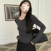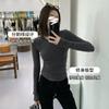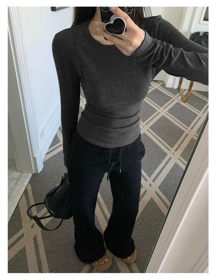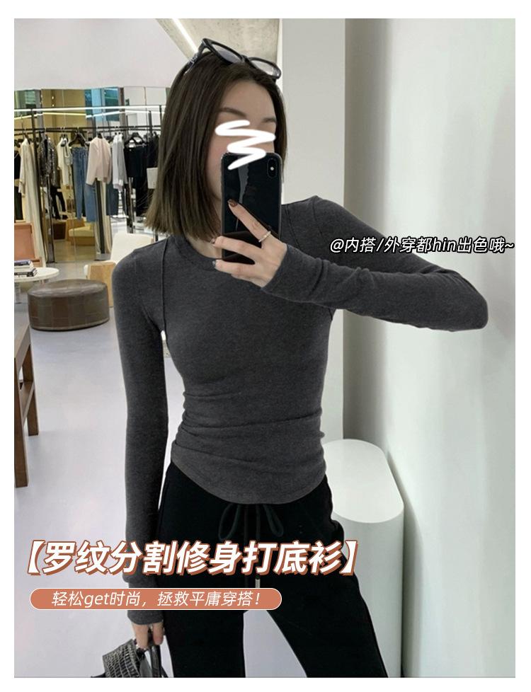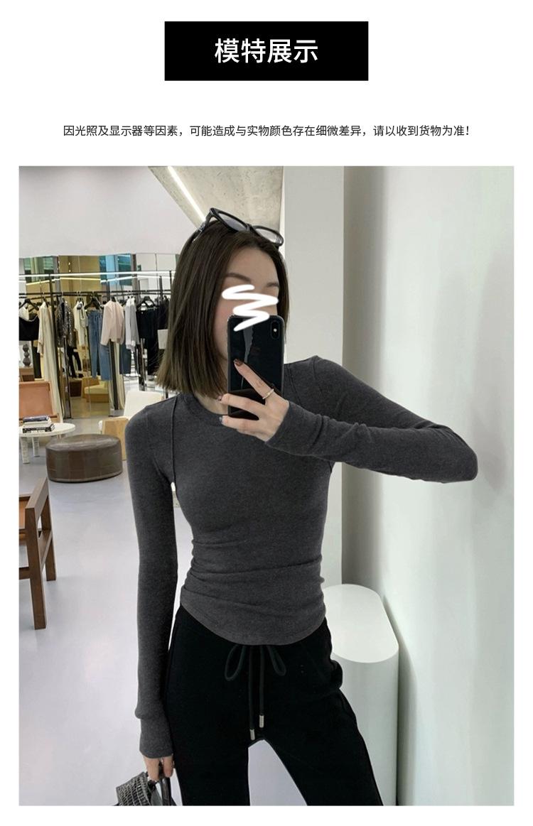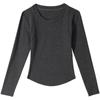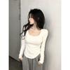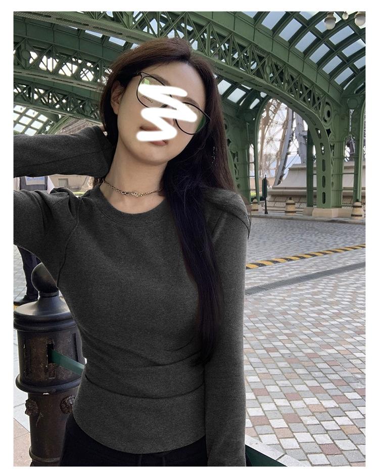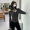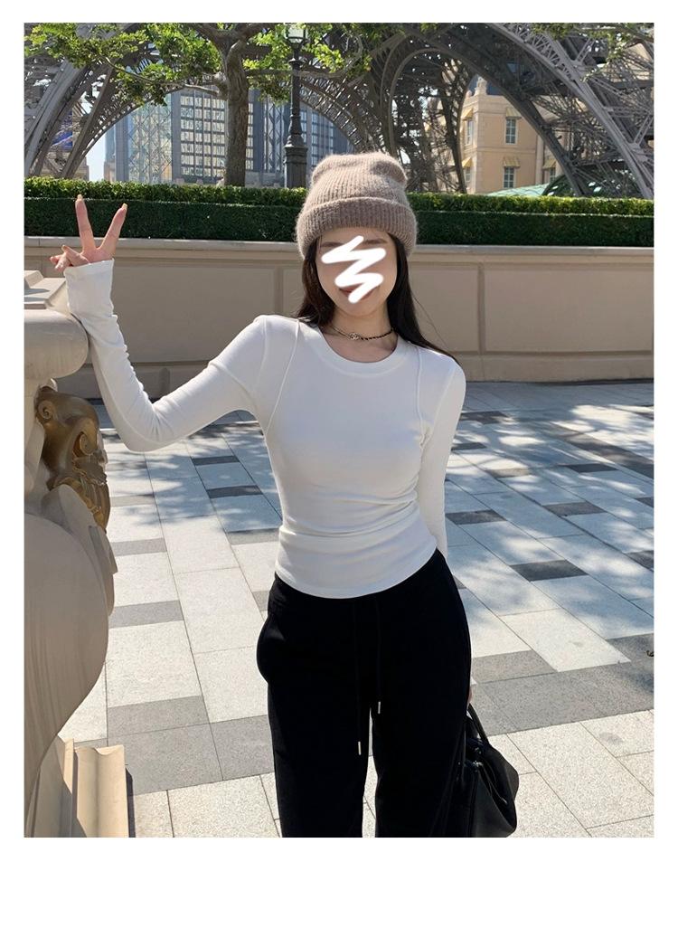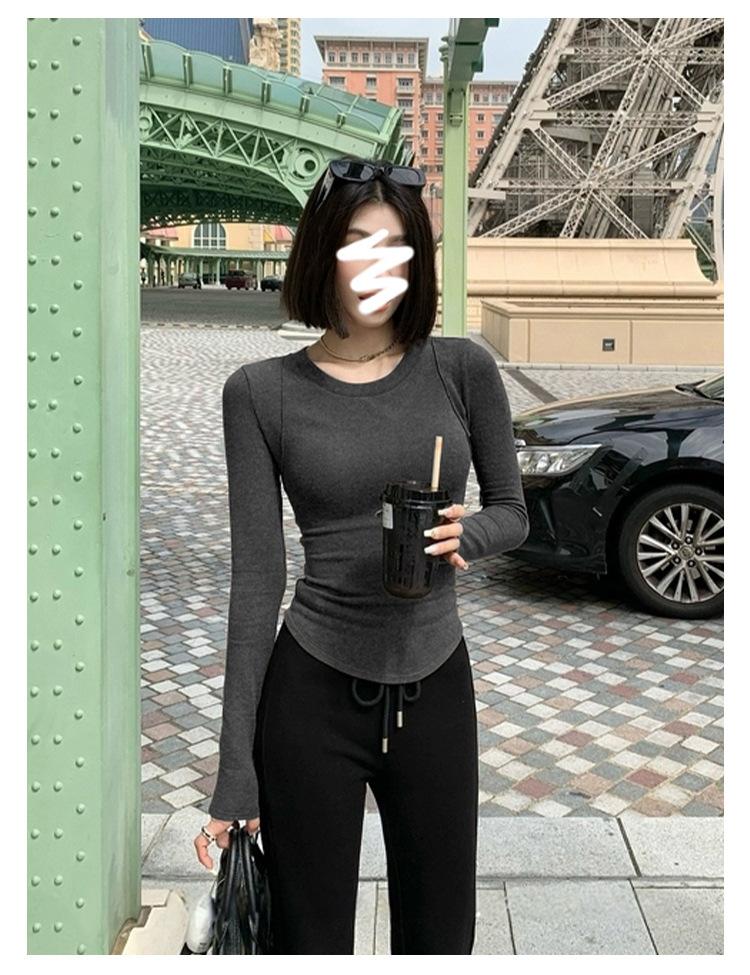 Camiseta de manga larga con cuello redondo y hombros descubiertos para mujer, primavera y otoño 2025, nuevo diseño, color liso, sencilla, sexy, ajustada.