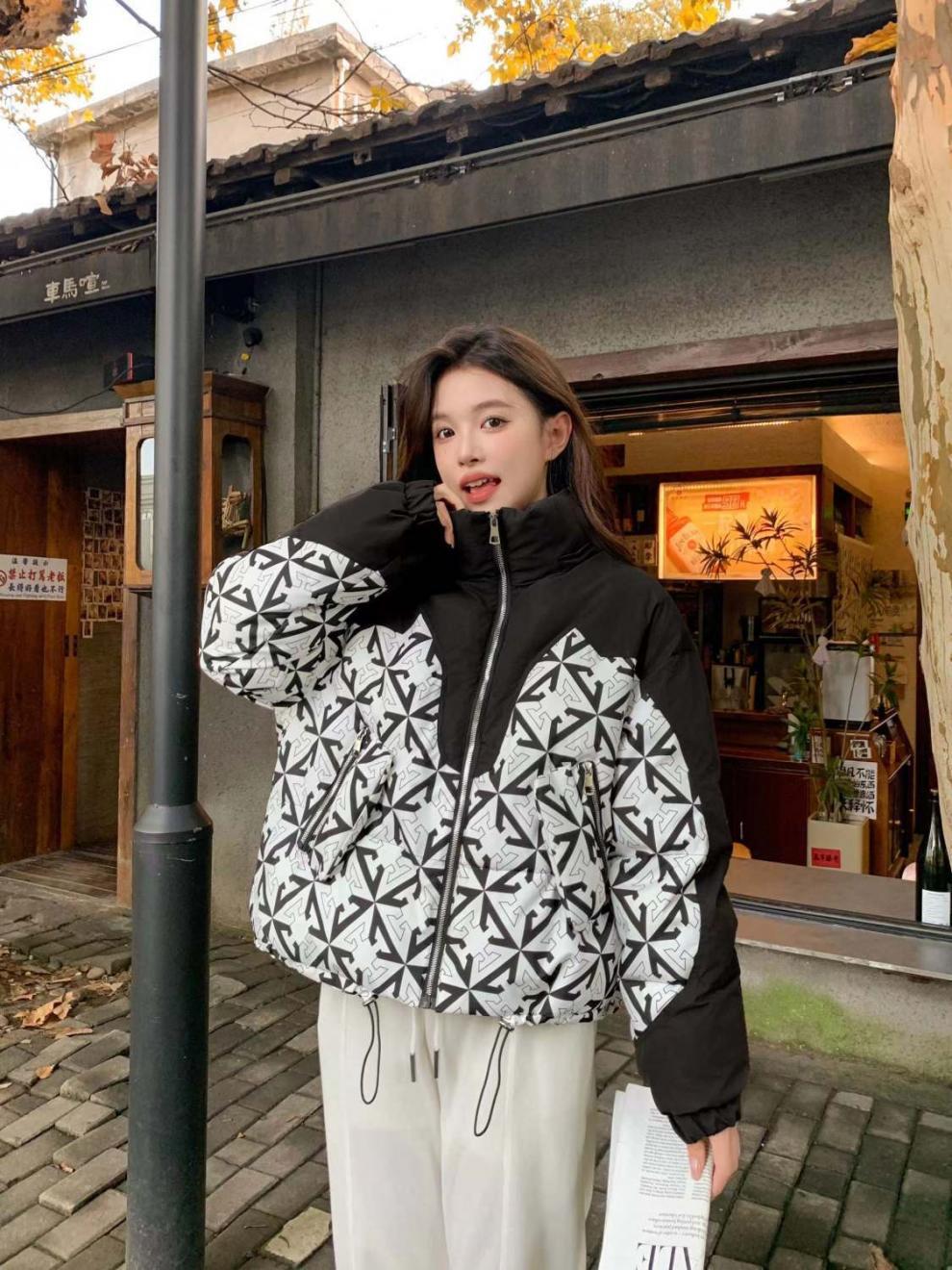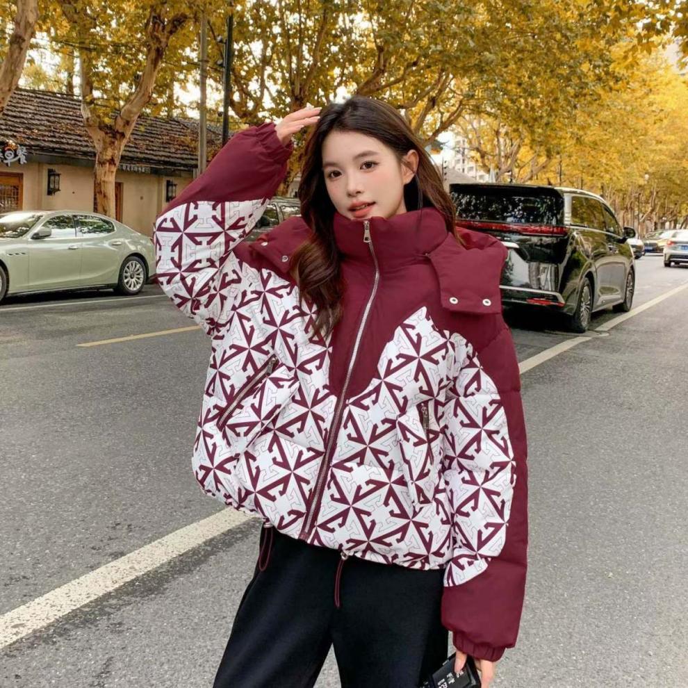 Chaqueta acolchada de algodón de moda Shanli Dadi, nueva chaqueta de invierno con capucha estampada pequeña, gruesa y cálida.