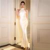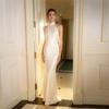 Primavera 2025, nuevo vestido de noche francés elegante, sexy, ajustado, con cuello en V, tirantes finos y espalda descubierta, color liso, para mujer.