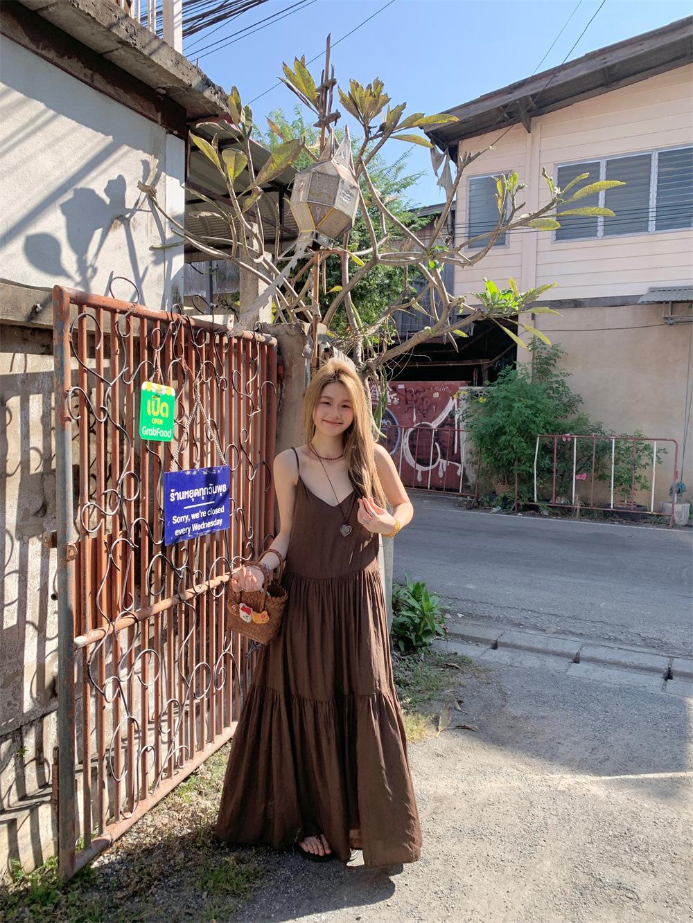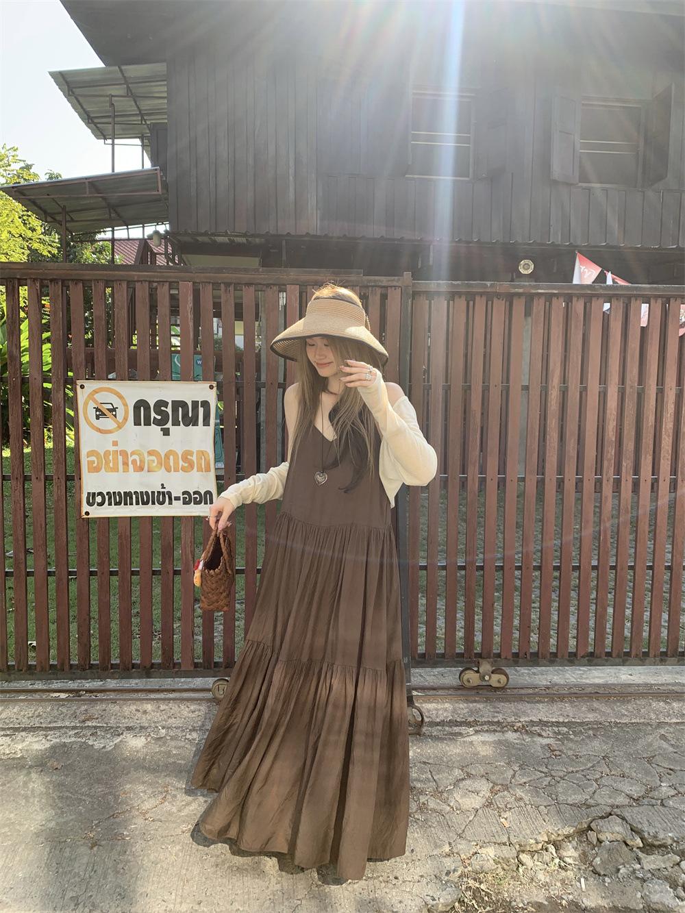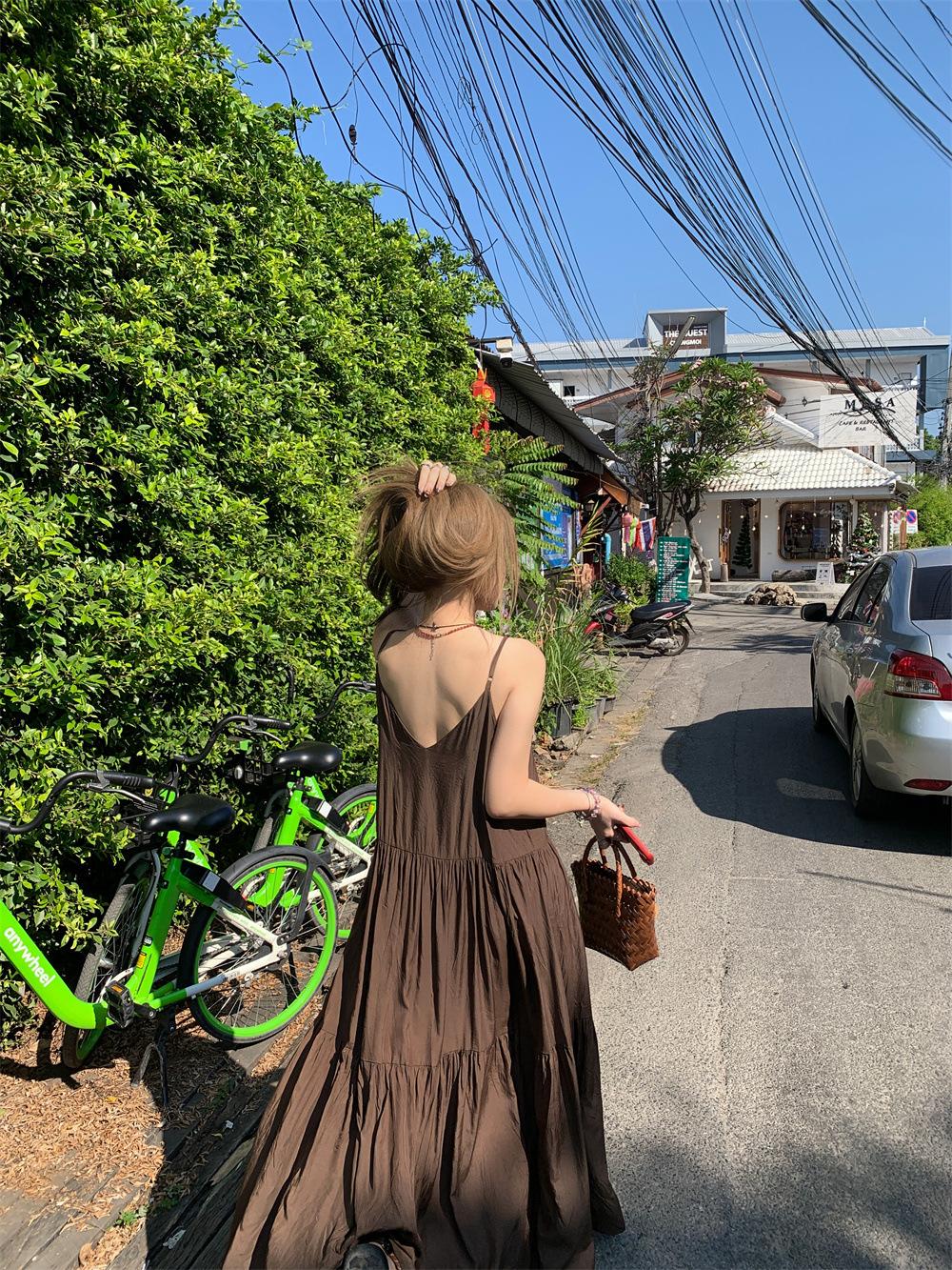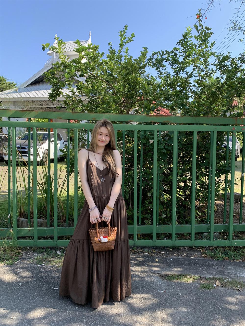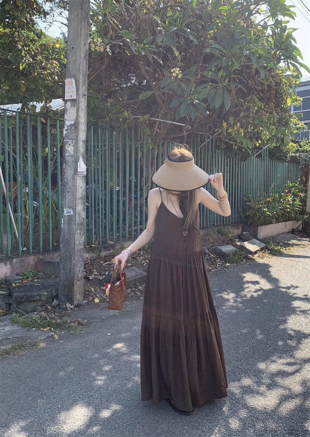 Vestido de verano de talla grande estilo coreano, sin mangas, con tirantes y diseño de nicho, de color liso, adelgazante, para vacaciones y playa.