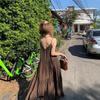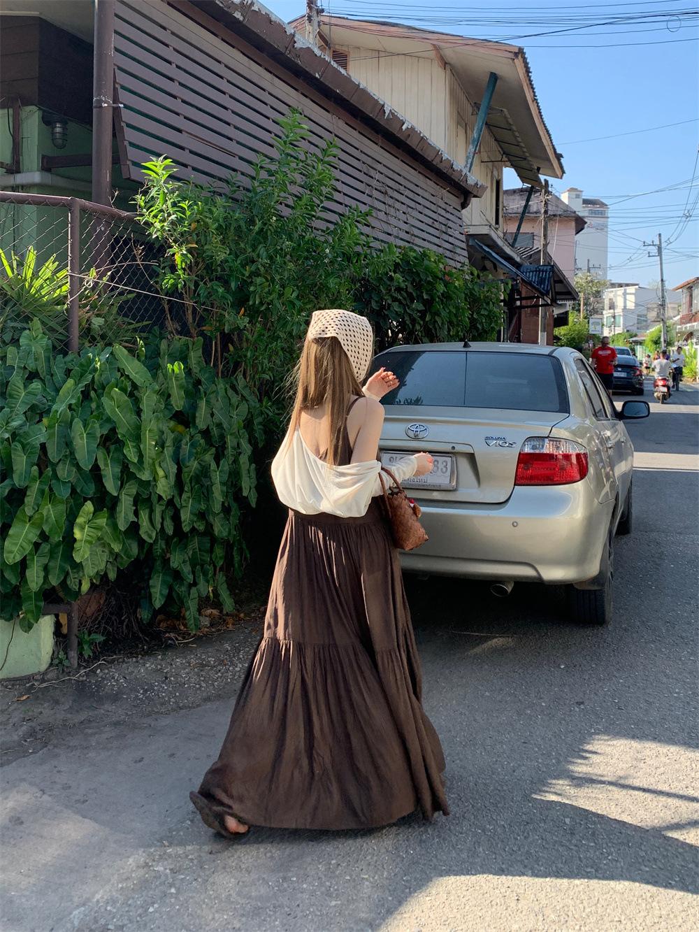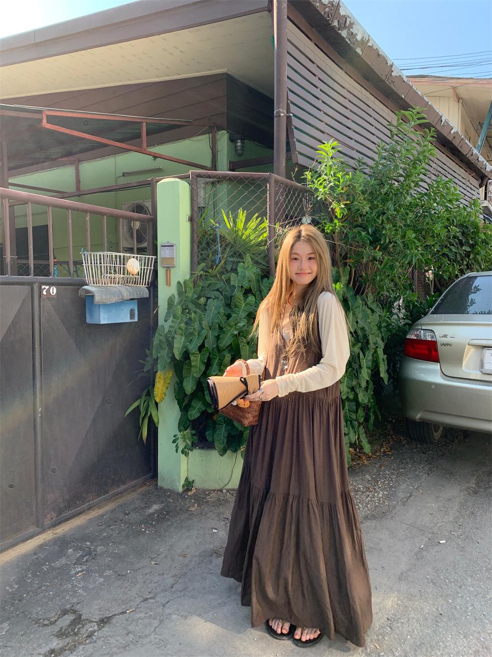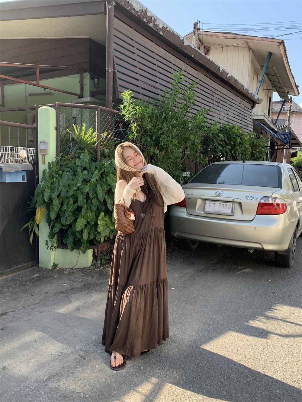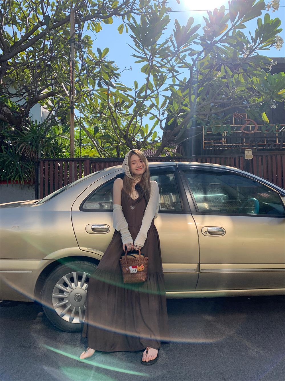 Vestido de verano de talla grande estilo coreano, sin mangas, con tirantes y diseño de nicho, de color liso, adelgazante, para vacaciones y playa.
