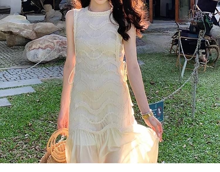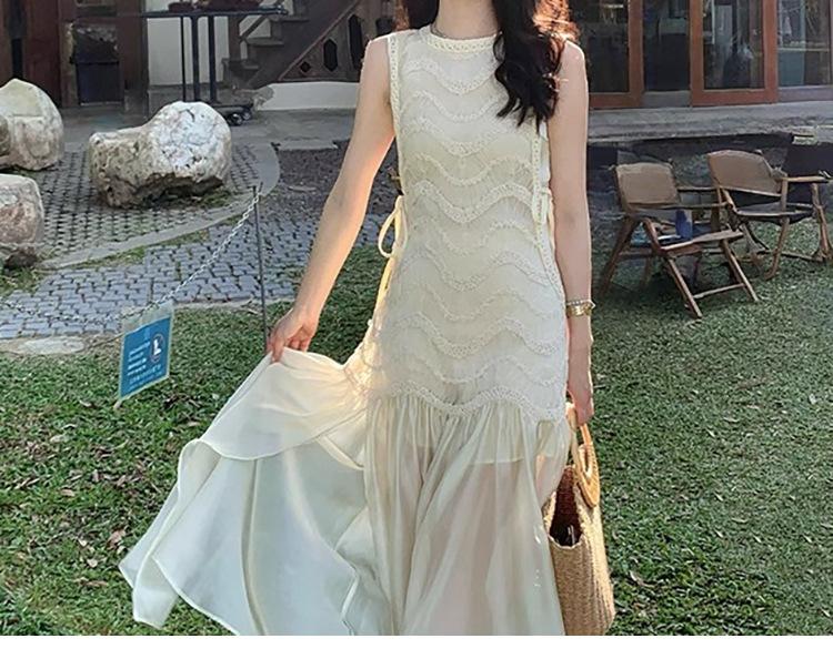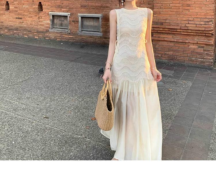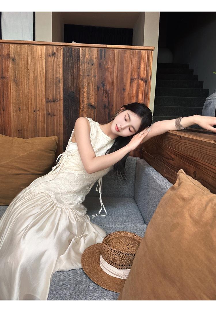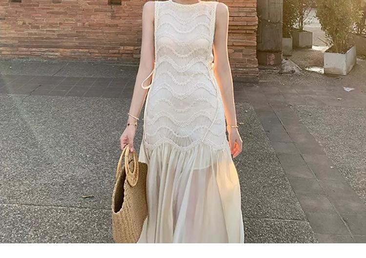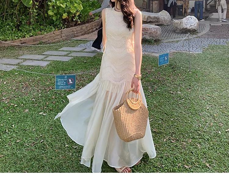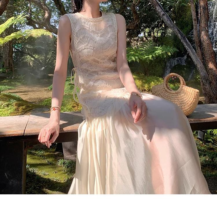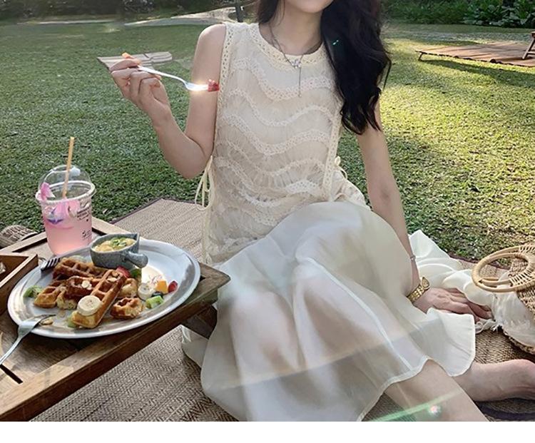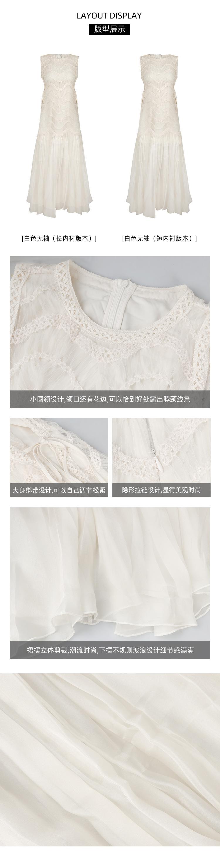 Vestido blanco, sin mangas, dos versiones, encaje, informal, ajustado, de alta gama, para vacaciones, elegante falda para mujer