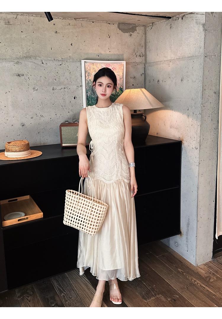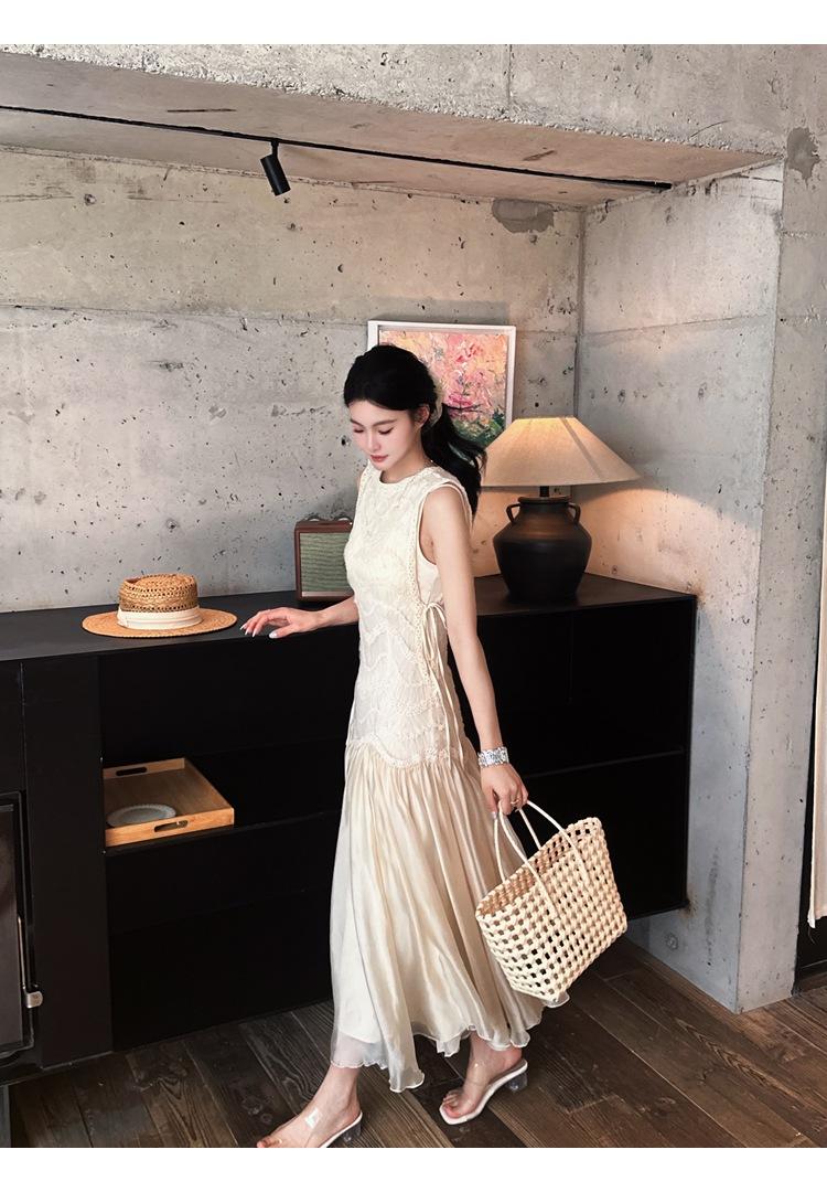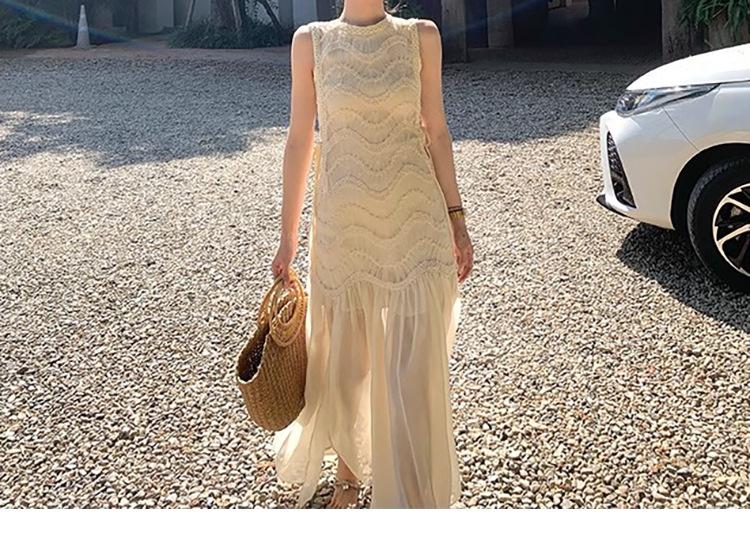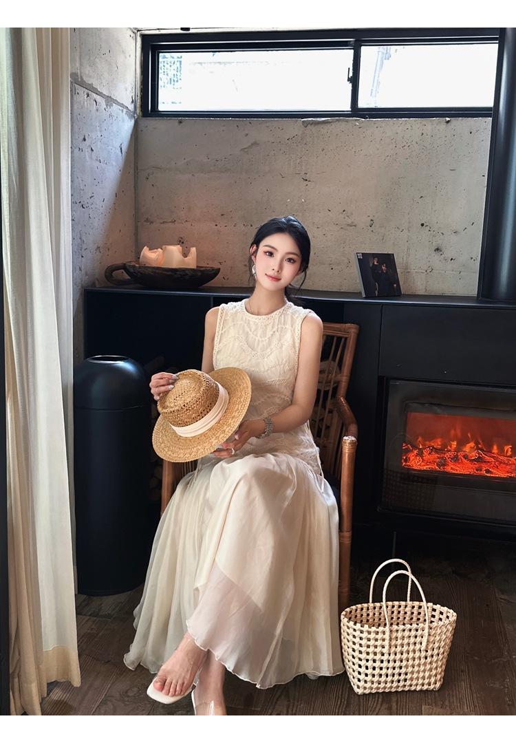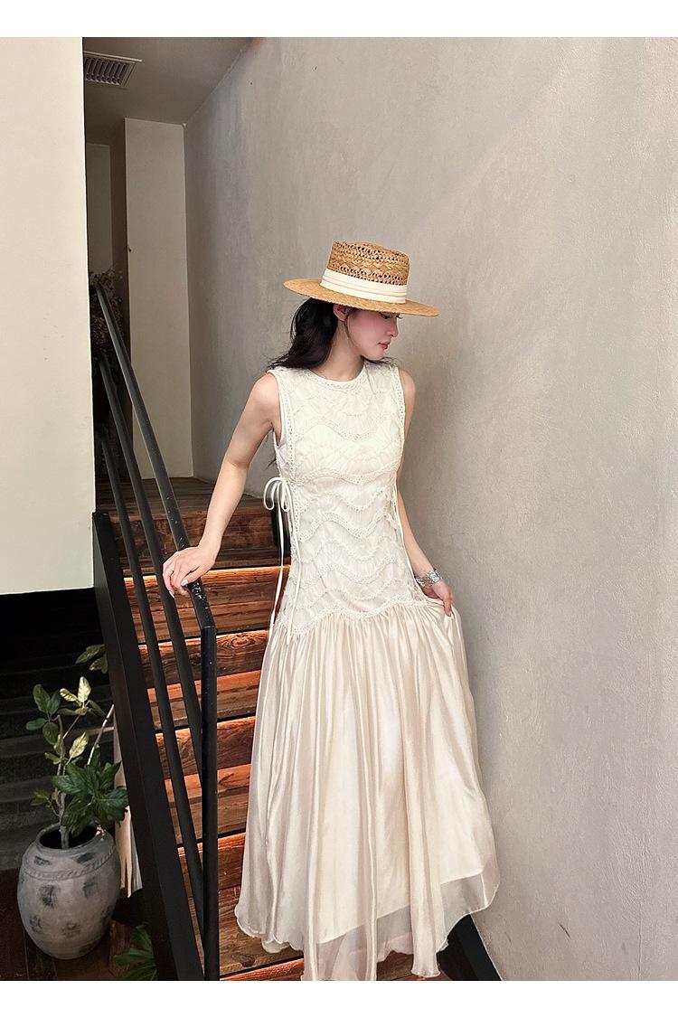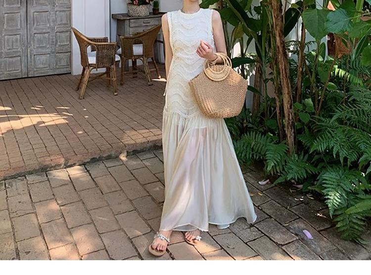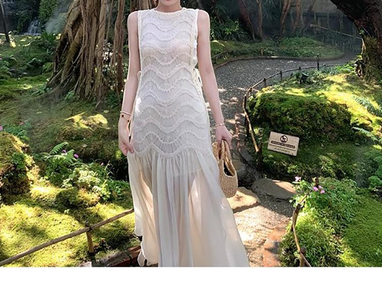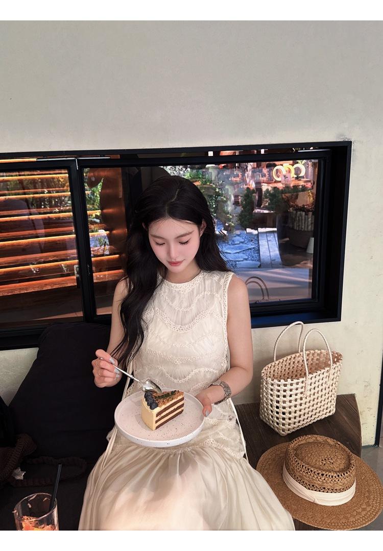 Vestido blanco, sin mangas, dos versiones, encaje, informal, ajustado, de alta gama, para vacaciones, elegante falda para mujer