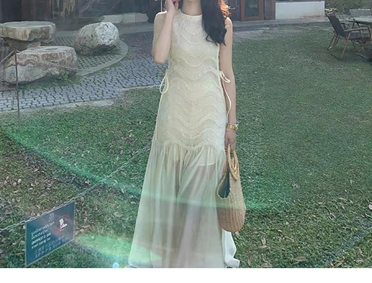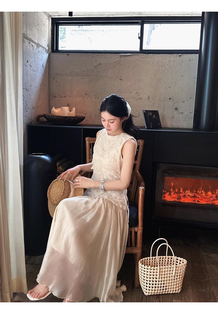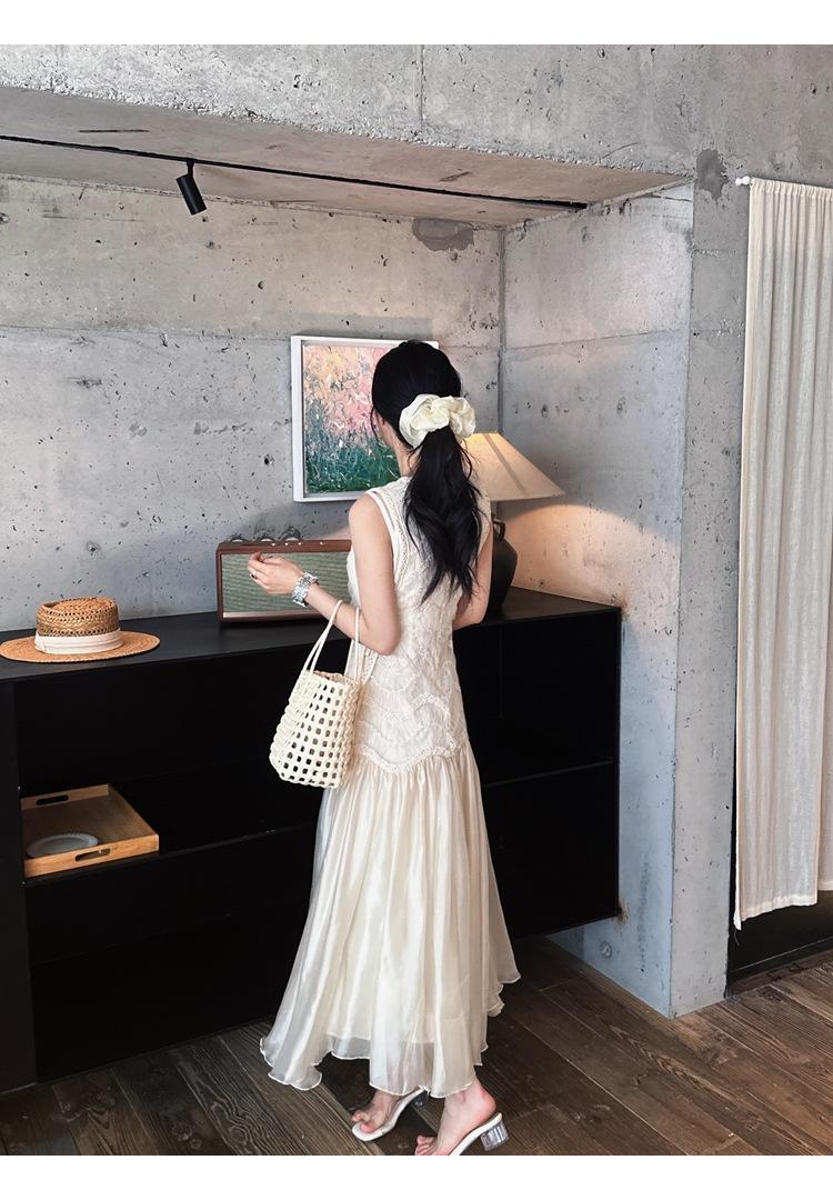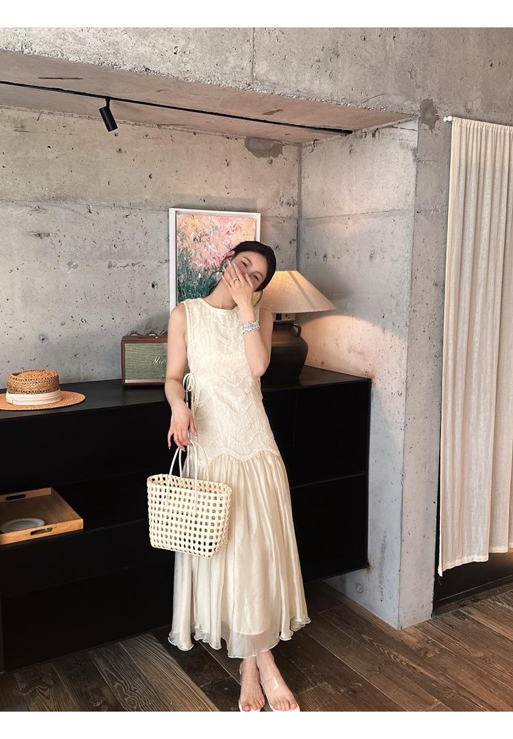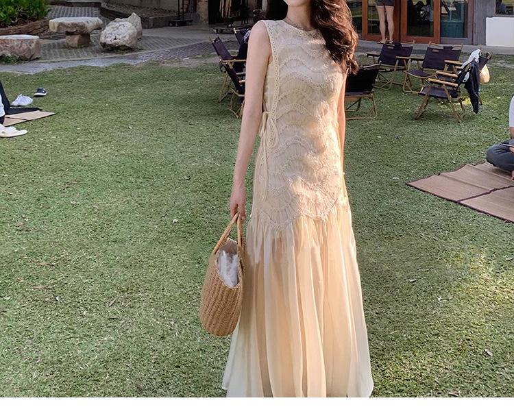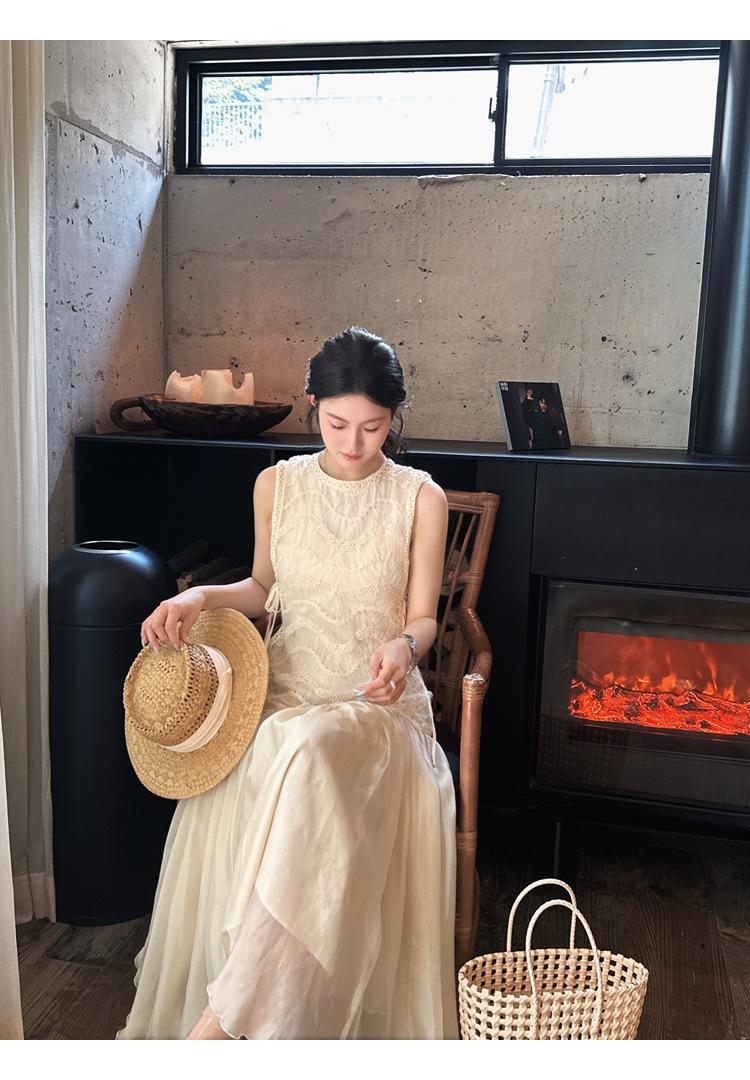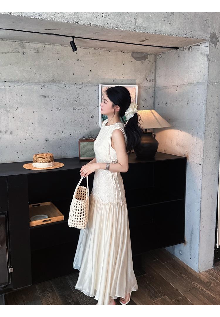 Vestido blanco, sin mangas, dos versiones, encaje, informal, ajustado, de alta gama, para vacaciones, elegante falda para mujer
