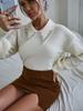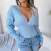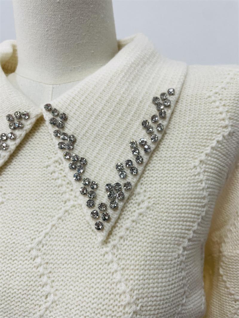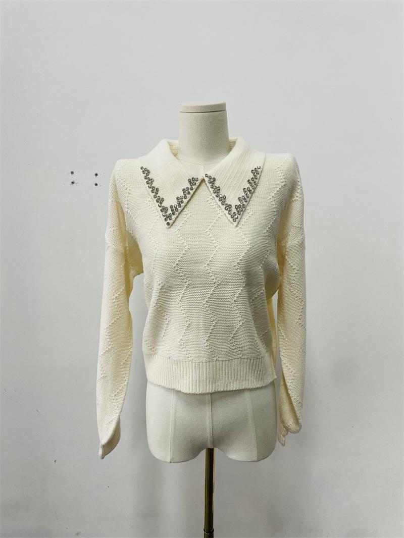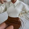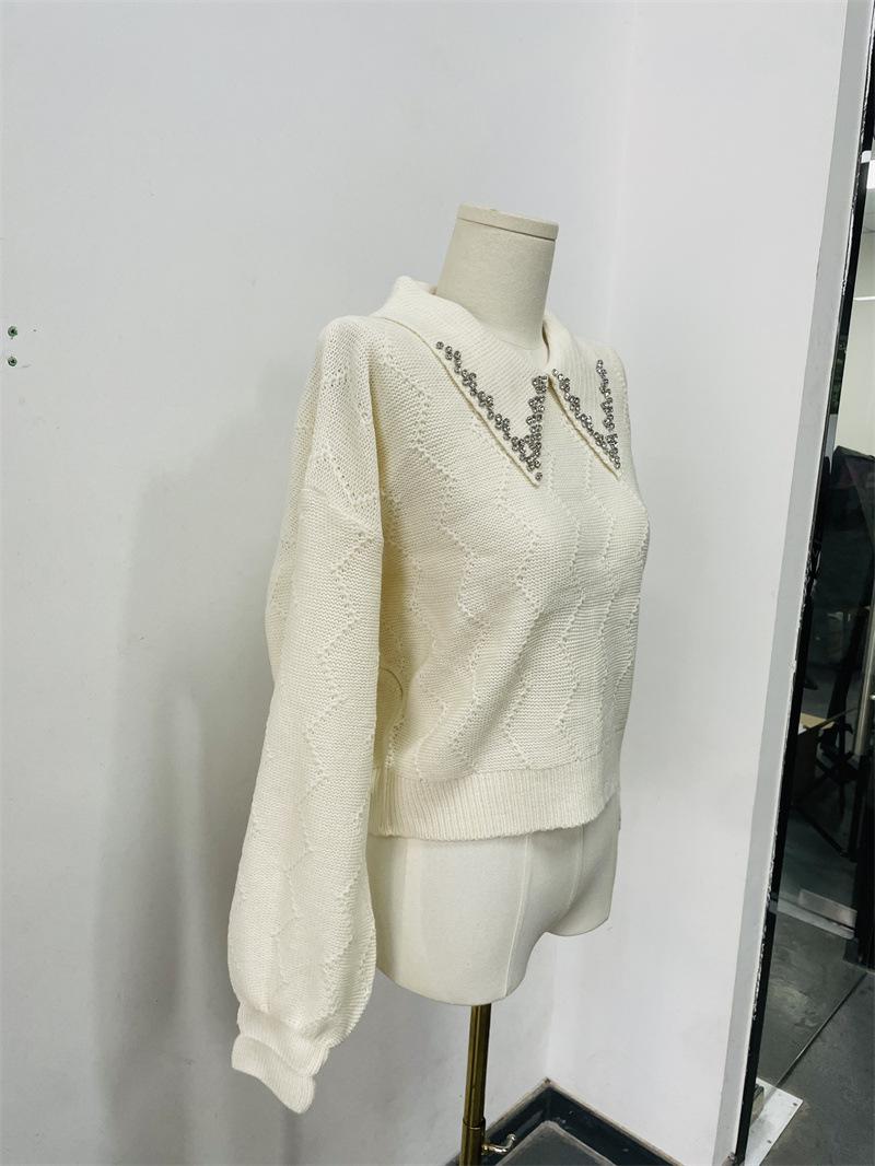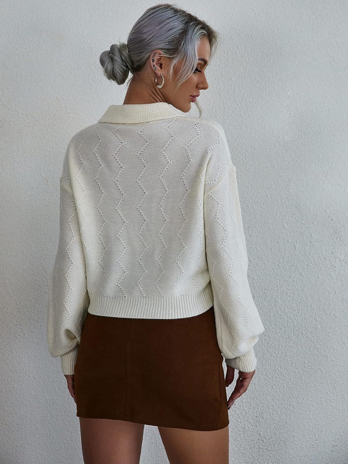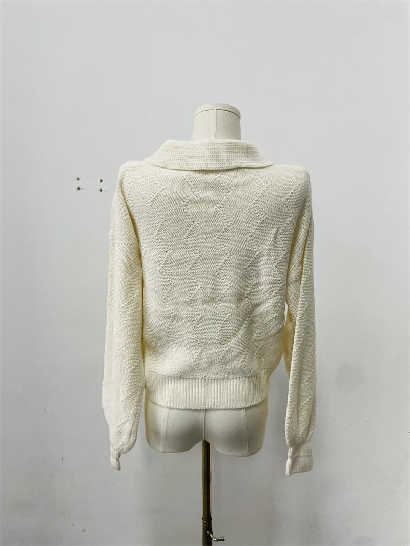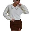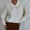 Suéter Pulóver Casual para Mujer Europeo y Americano Transfronterizo de Punto Trenzado Calado con Solapa Adelgazante Europeo y Americano Transfronterizo