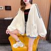 Talla grande para mujer 2024 Primavera y Otoño Nuevo Cárdigan Coreano Holgado Cierre de Cremallera Color Sólido Cordón con Capucha Suéter Chaqueta Moda Mujer