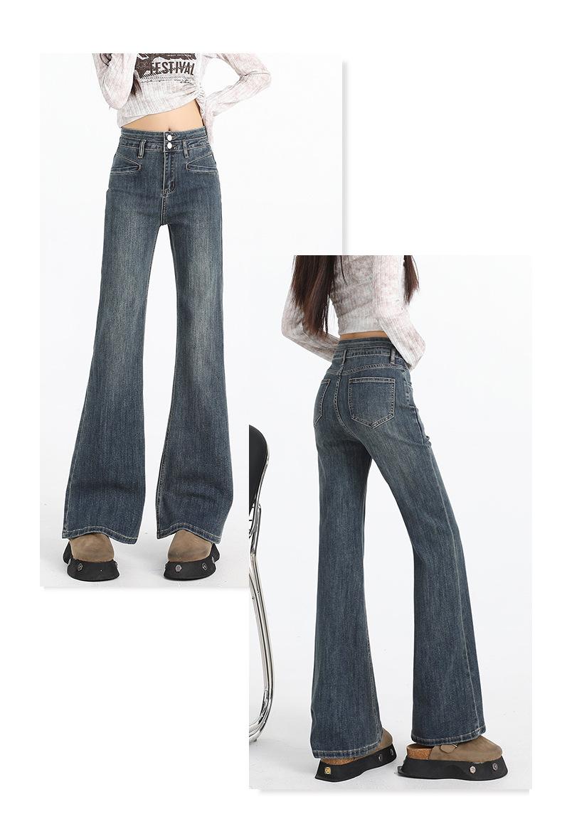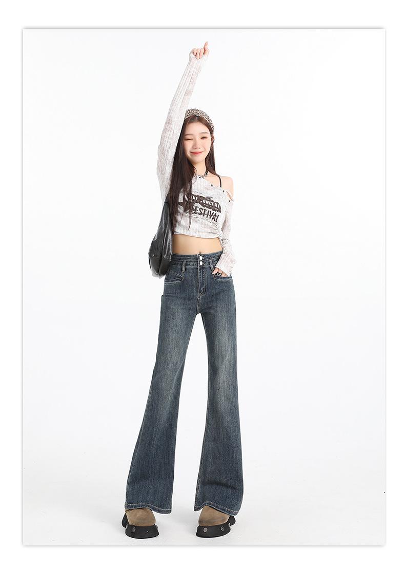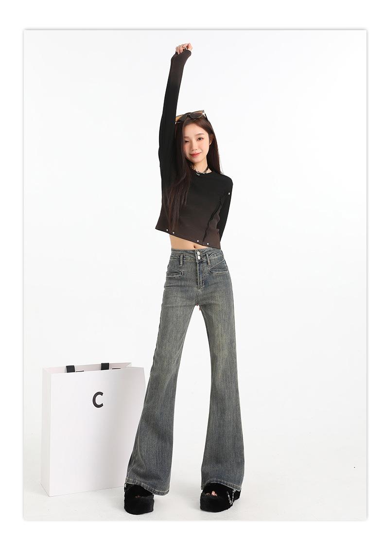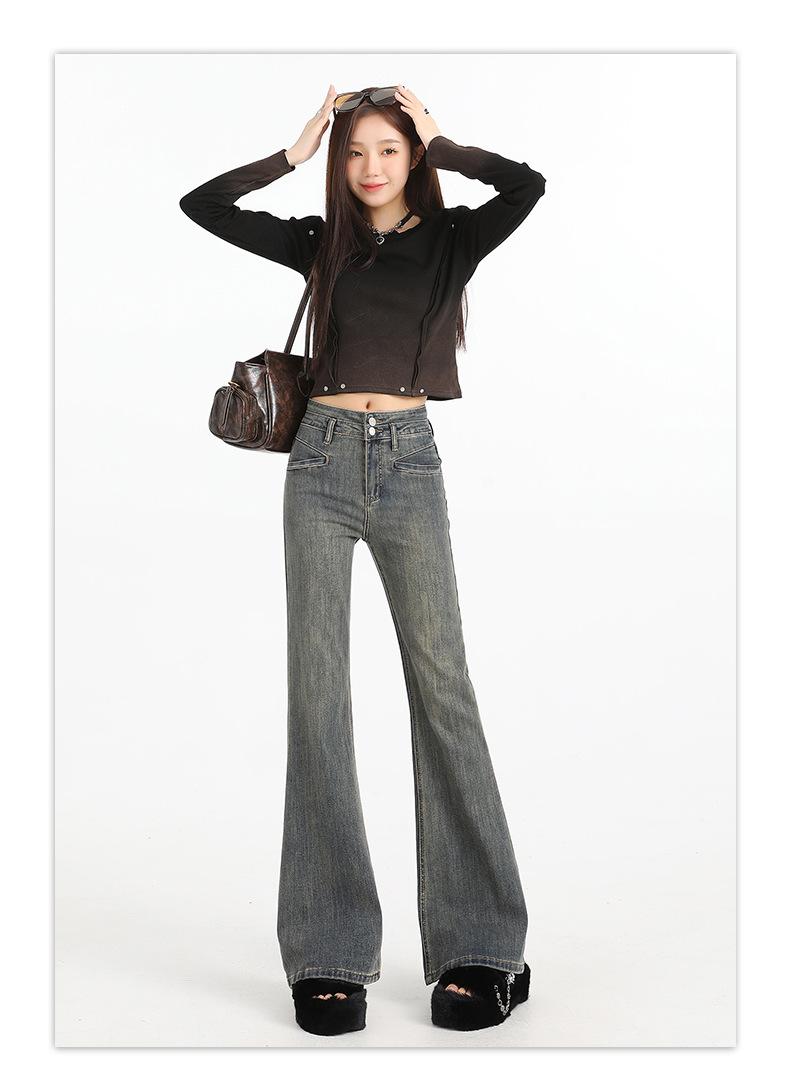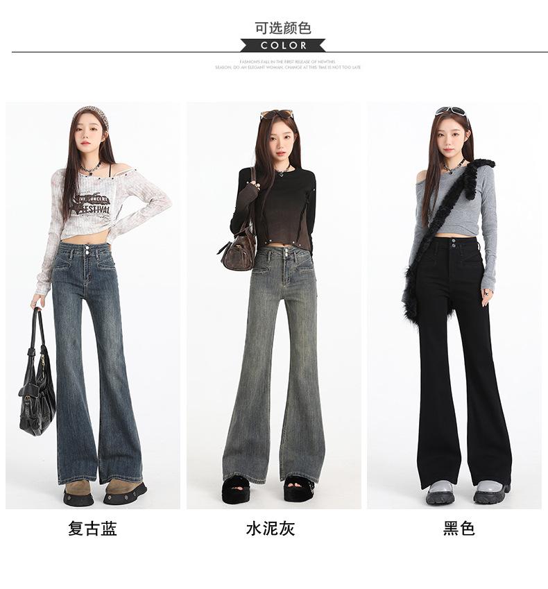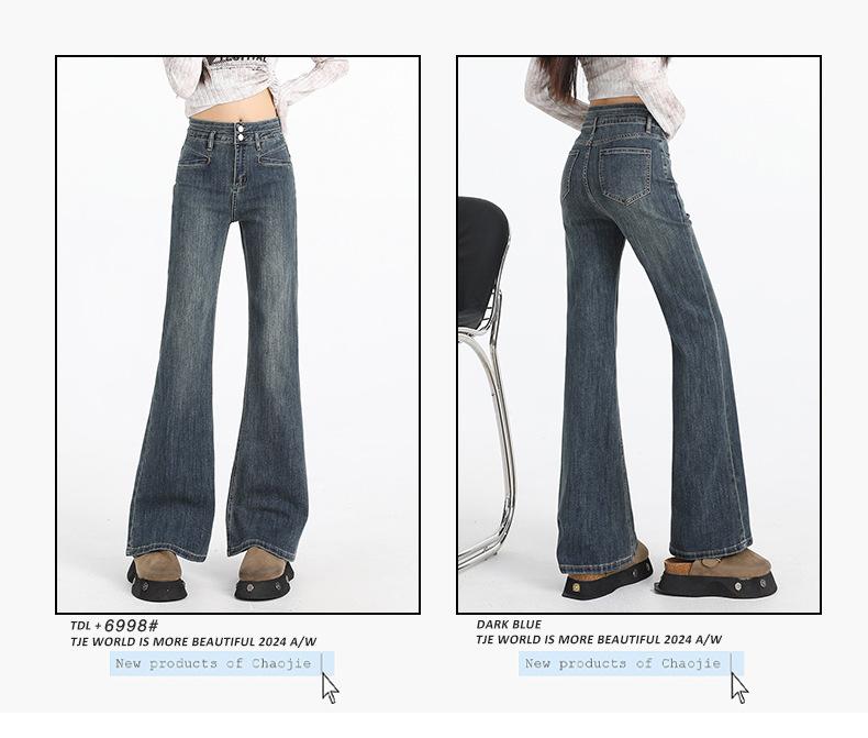 Pantalones vaqueros de cintura alta retro de seda naranja para mujer, con microcampana, elásticos, ajustados y adelgazantes, estilo americano.