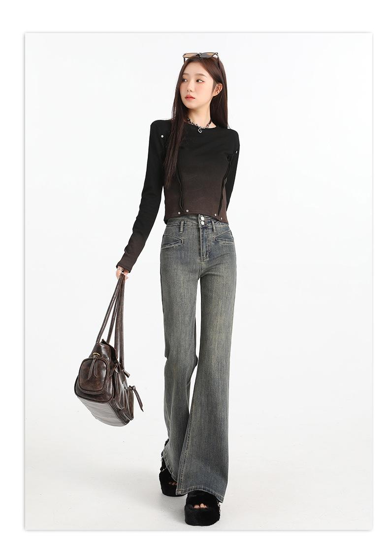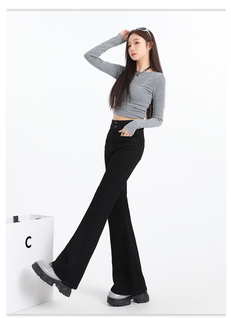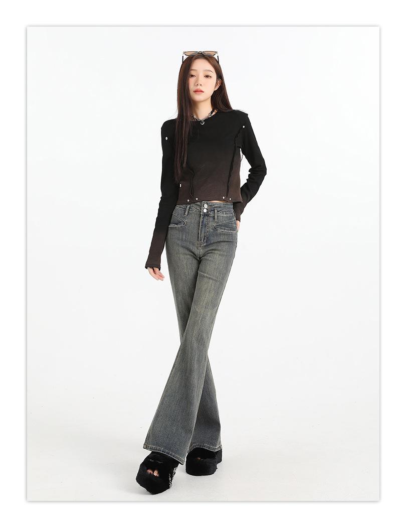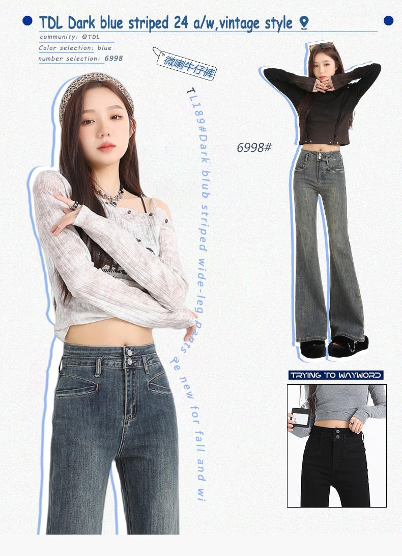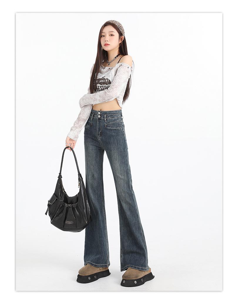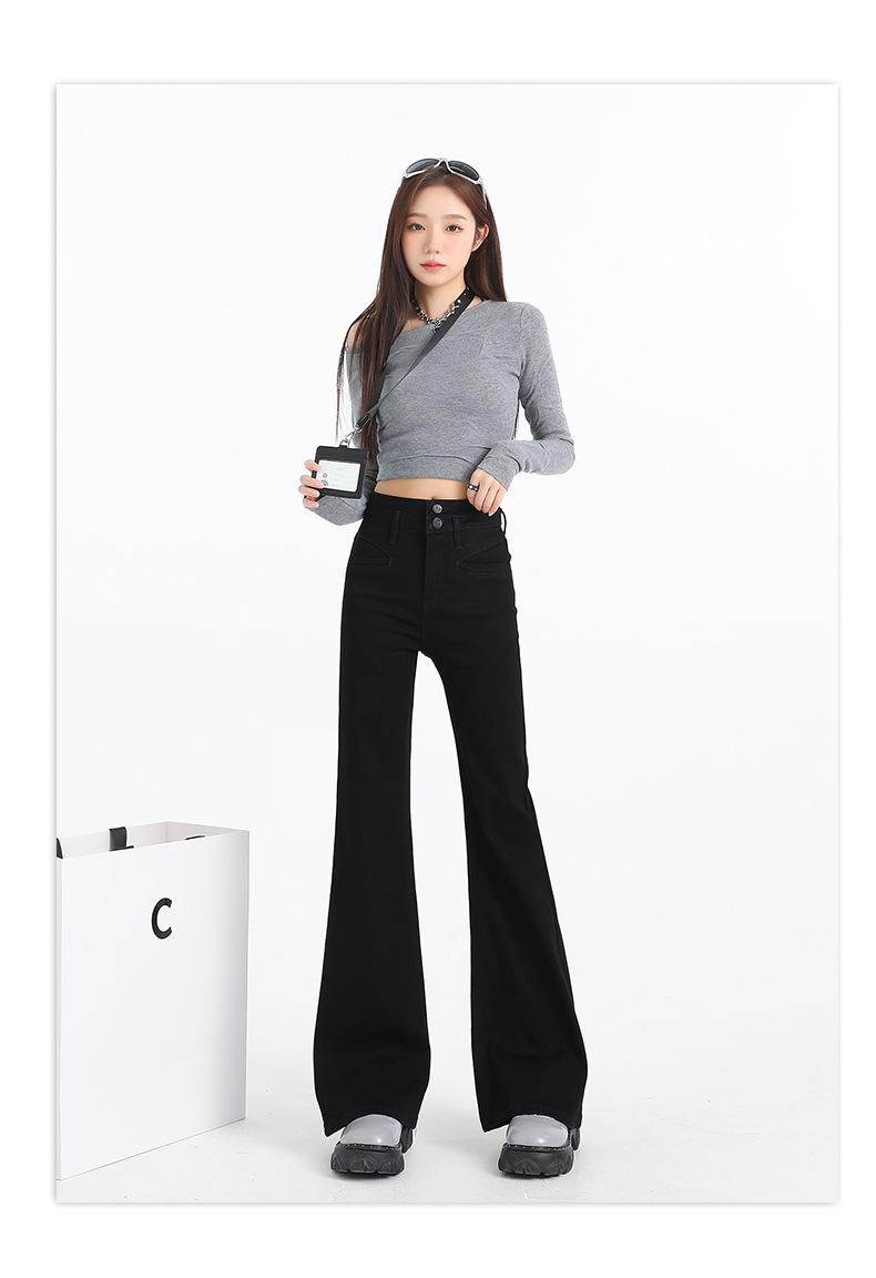 Pantalones vaqueros de cintura alta retro de seda naranja para mujer, con microcampana, elásticos, ajustados y adelgazantes, estilo americano.