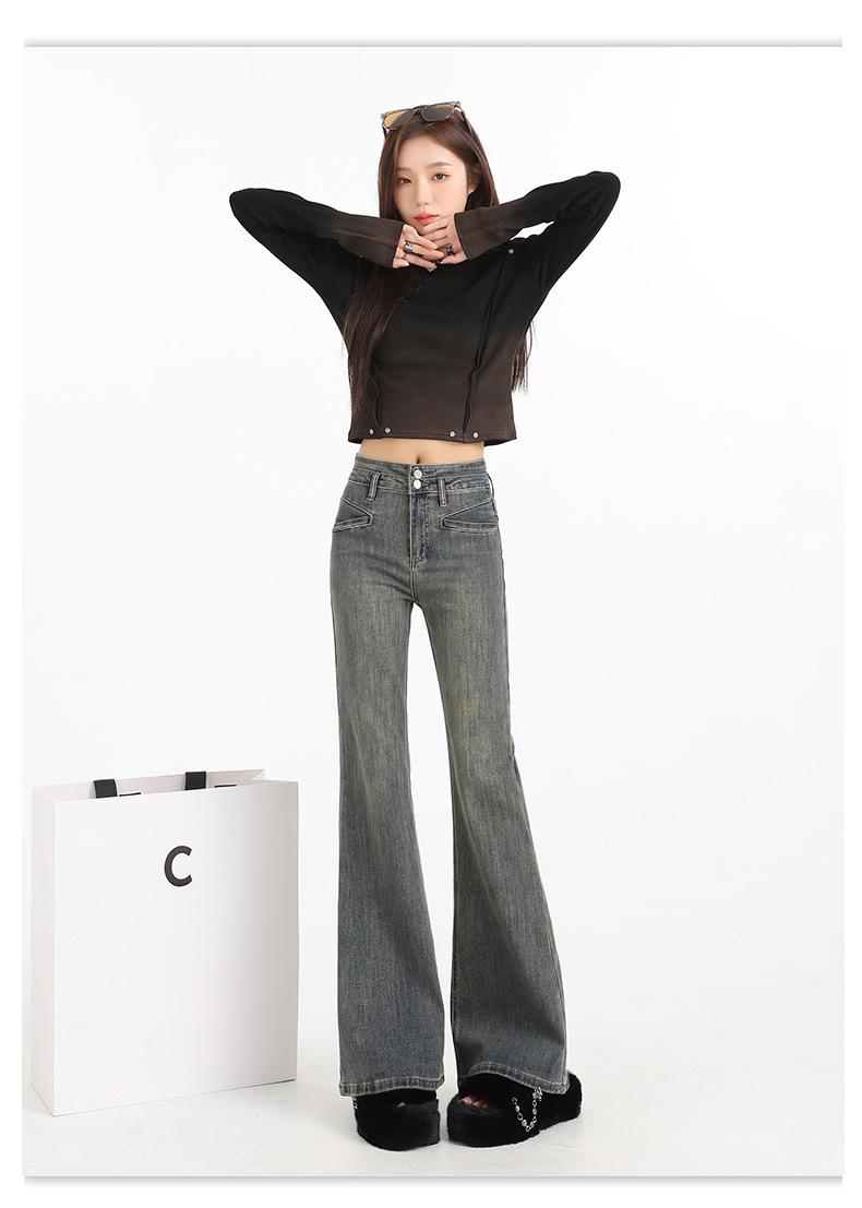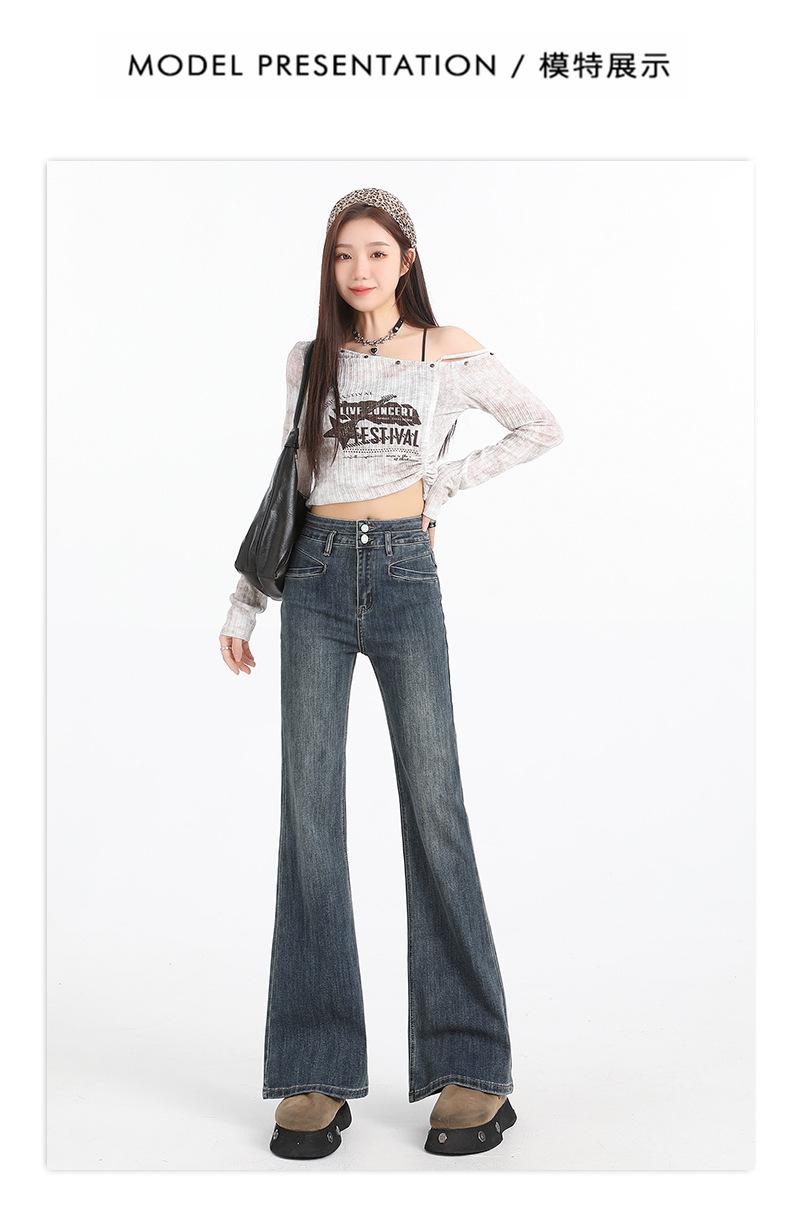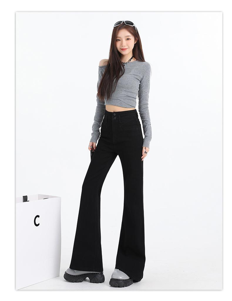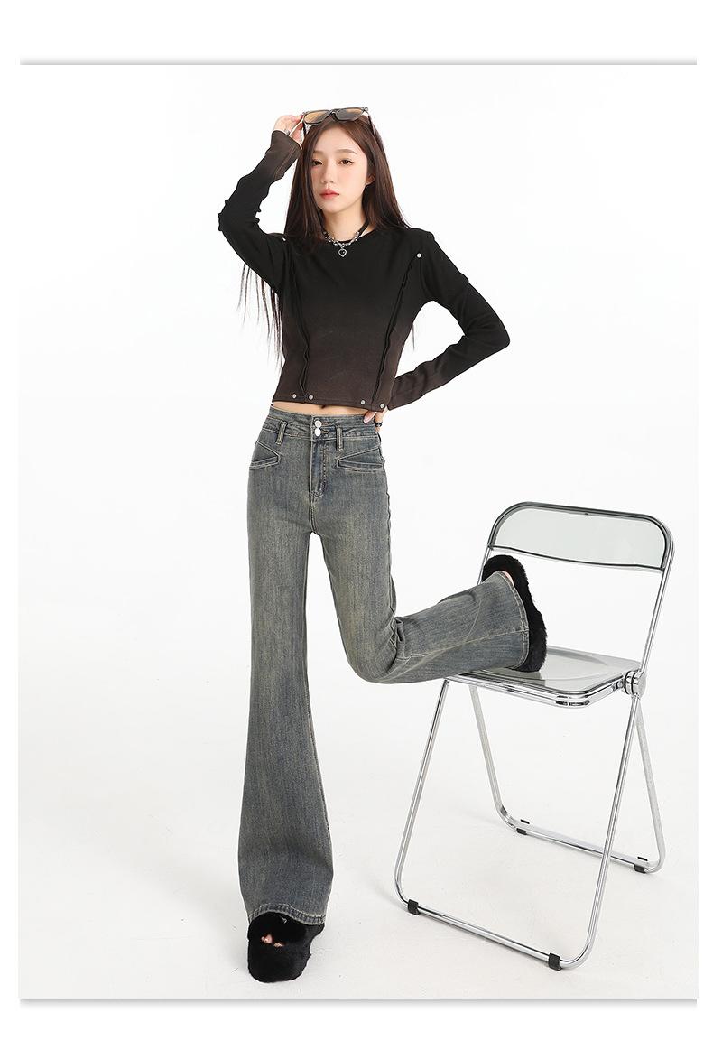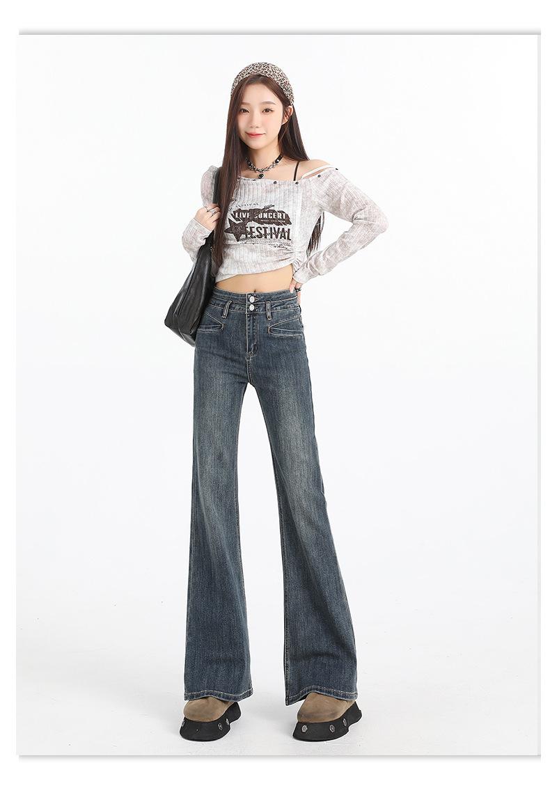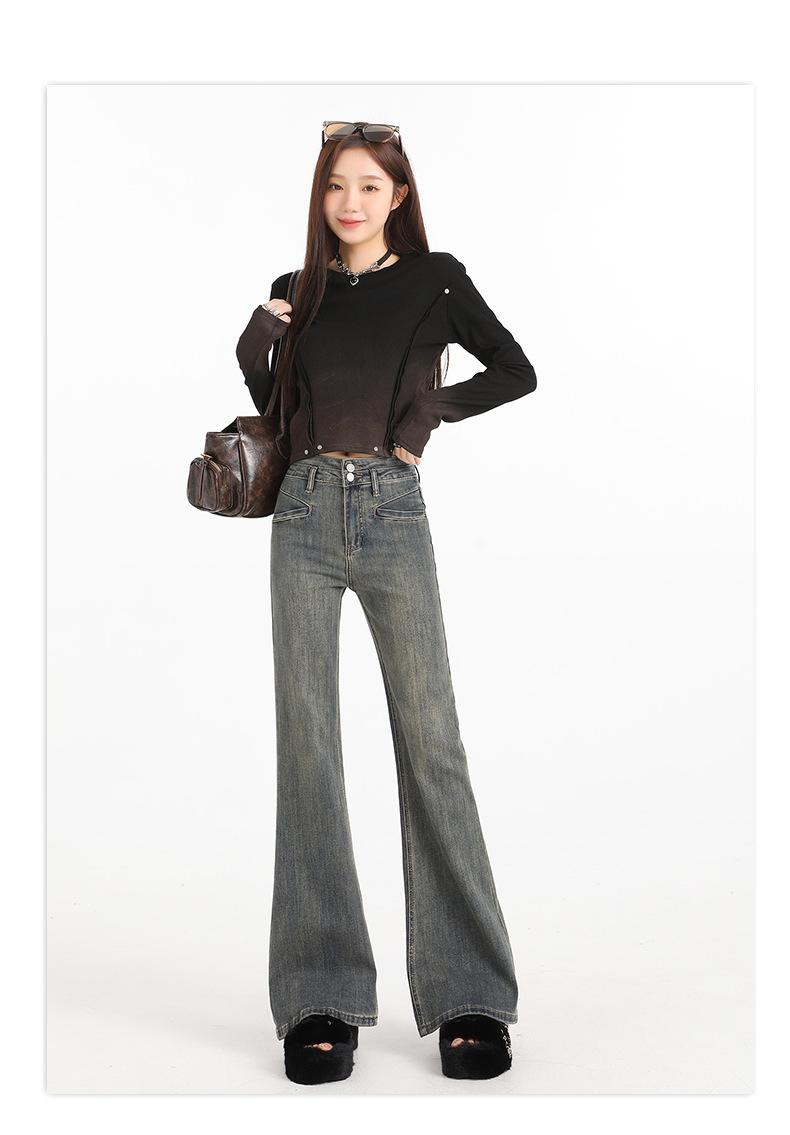 Pantalones vaqueros de cintura alta retro de seda naranja para mujer, con microcampana, elásticos, ajustados y adelgazantes, estilo americano.