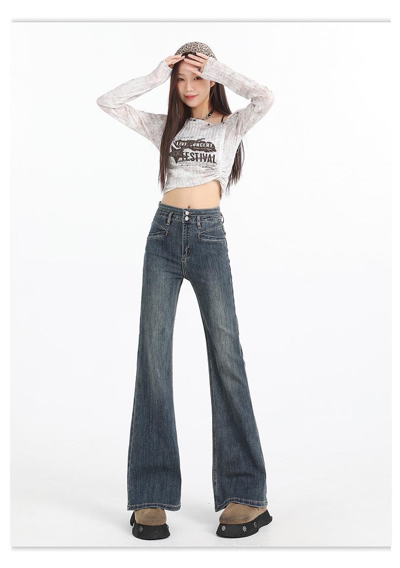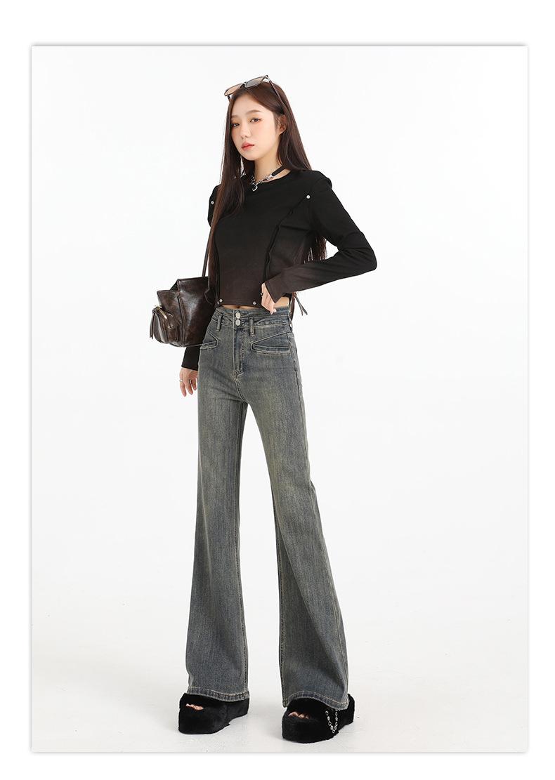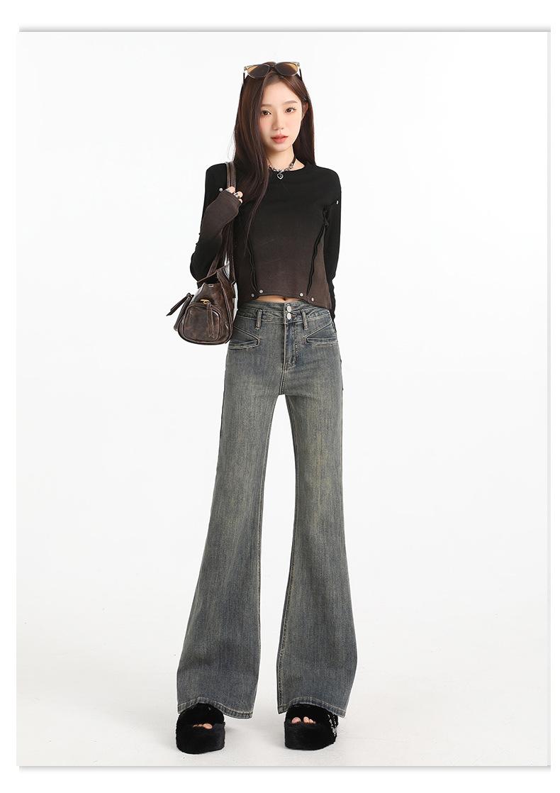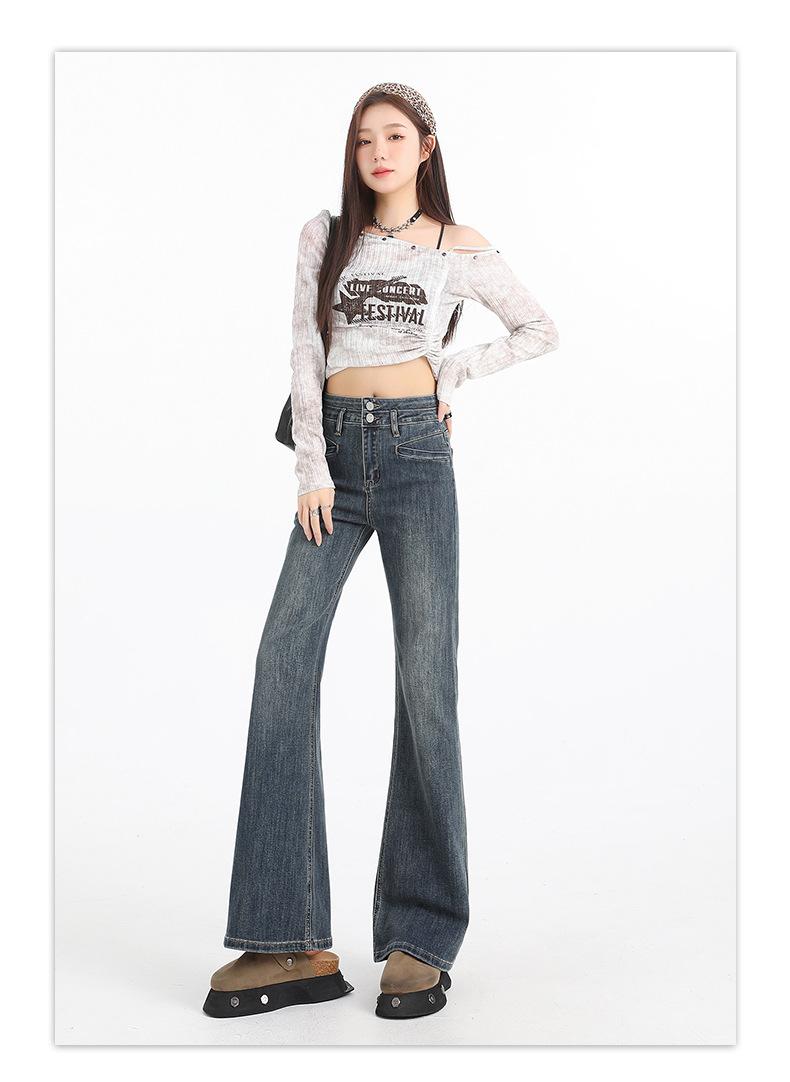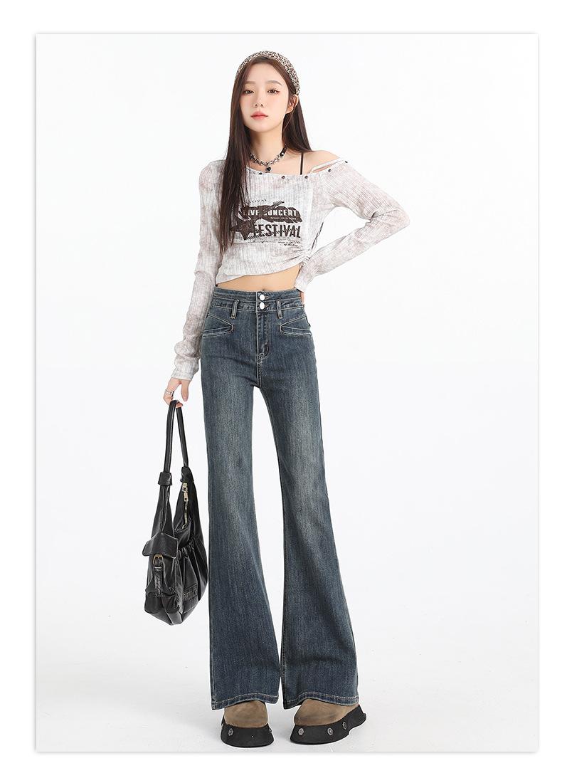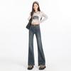 Pantalones vaqueros de cintura alta retro de seda naranja para mujer, con microcampana, elásticos, ajustados y adelgazantes, estilo americano.