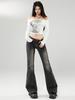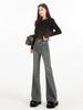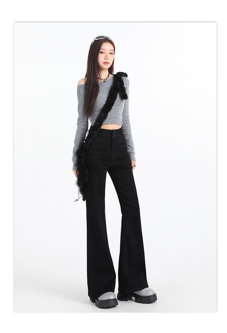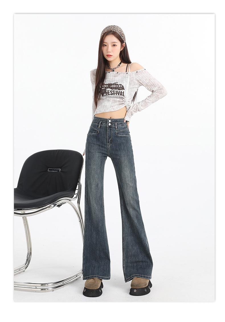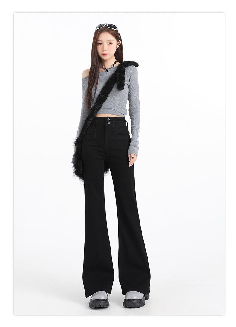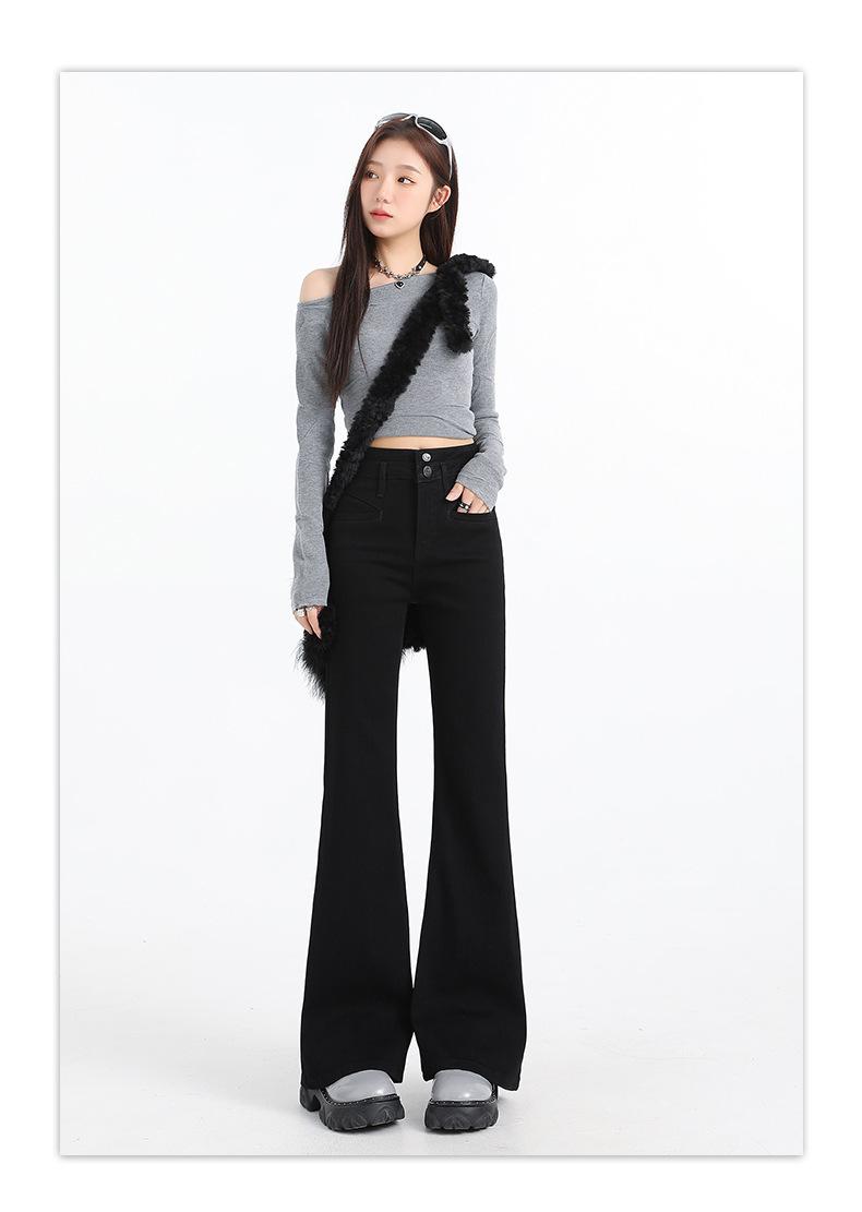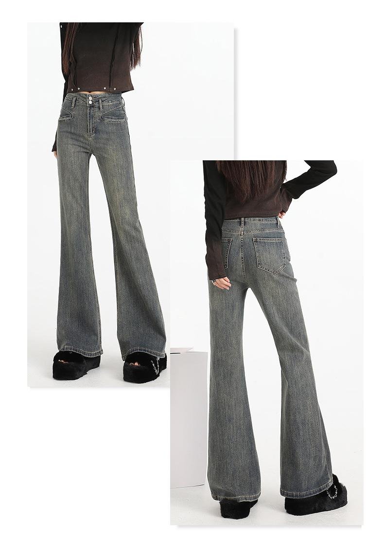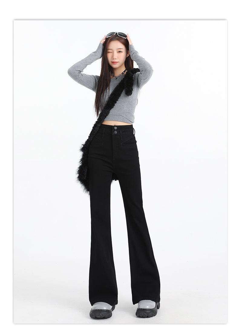 Pantalones vaqueros de cintura alta retro de seda naranja para mujer, con microcampana, elásticos, ajustados y adelgazantes, estilo americano.