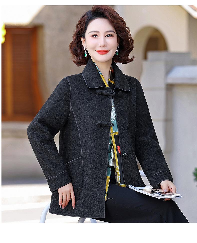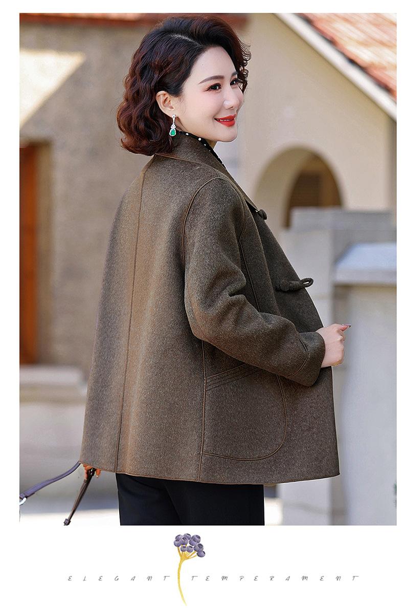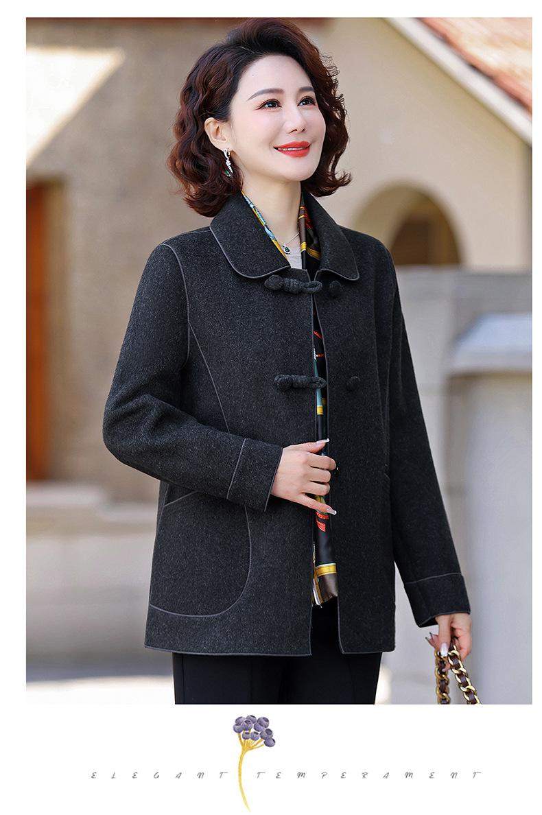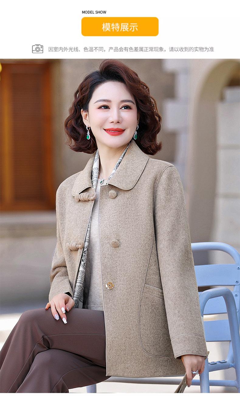 Abrigo de lana nuevo para primavera y otoño 2025 para madres de mediana edad y ancianas, abrigo de lana de color sólido para mujer, venta al por mayor