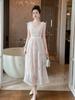 Vestido corto elegante de corte entallado, sin mangas, con volantes y estampado floral romántico de estilo francés 2025