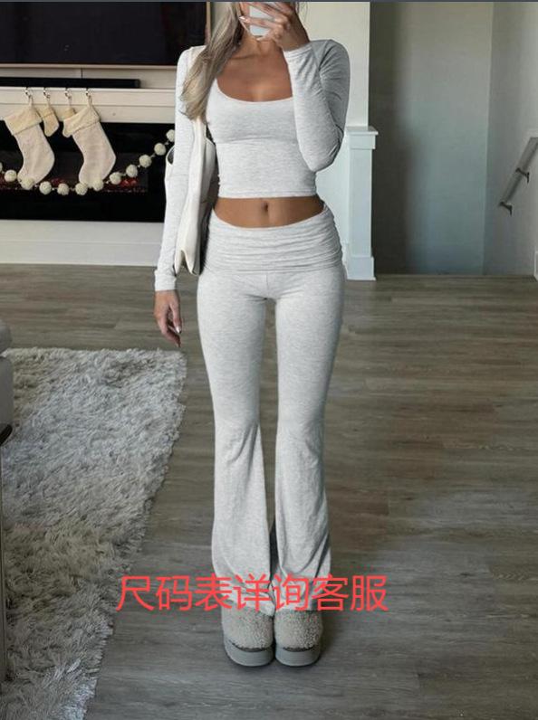 Ropa de Mujer Europea y Americana Transfronteriza 2025 Amazon Ocio Deportes Ajustado Tejido Modal Pantalones de Manga Larga Traje de Dos Piezas